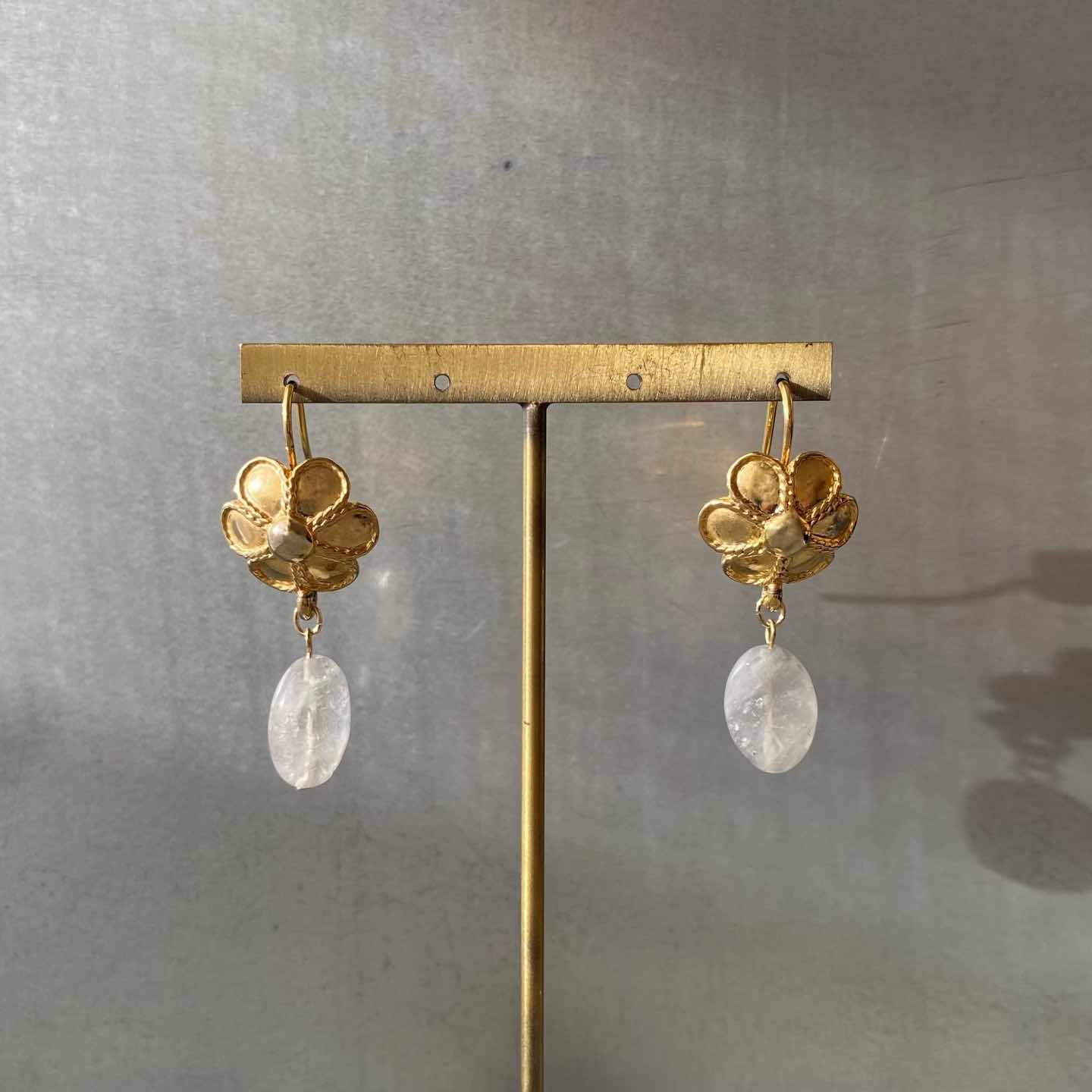 Vintage 90s-00s USA retro natural stone cloudy quartz botanical flower pierces