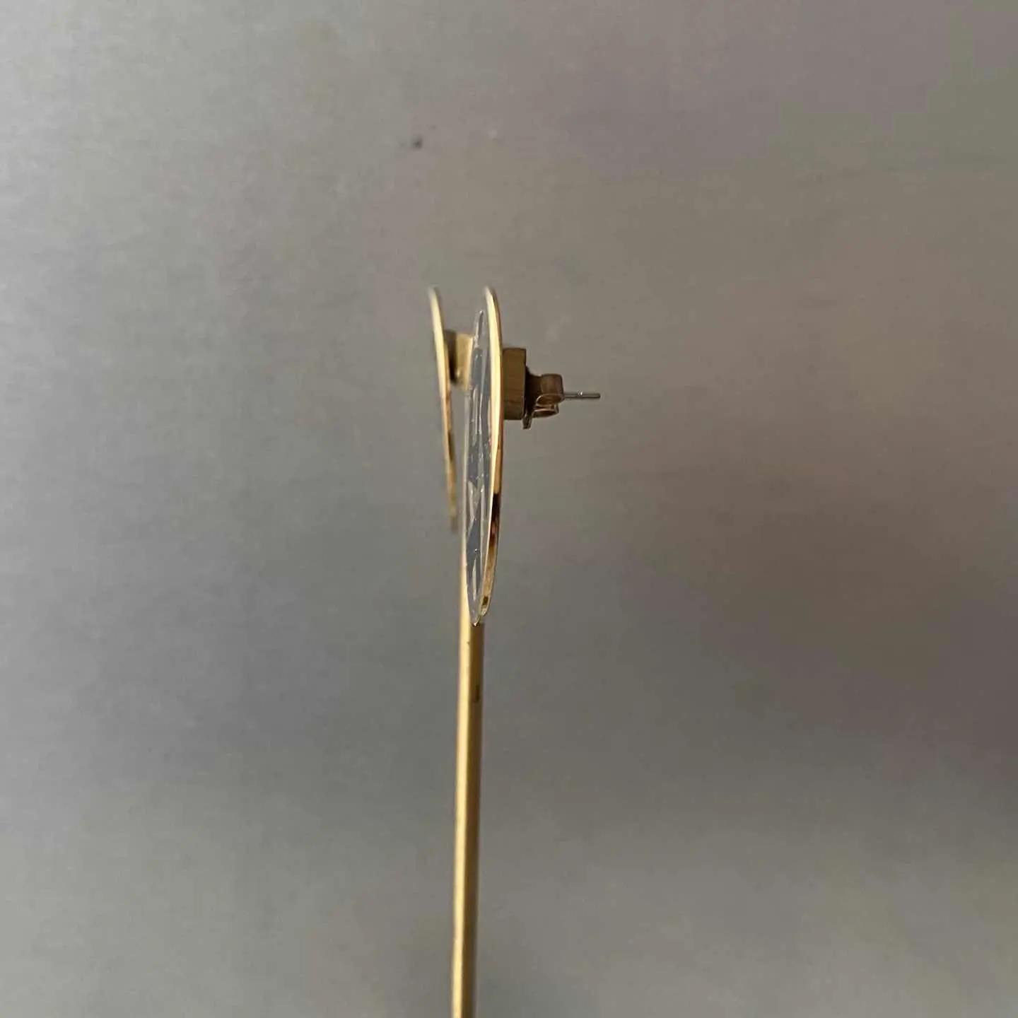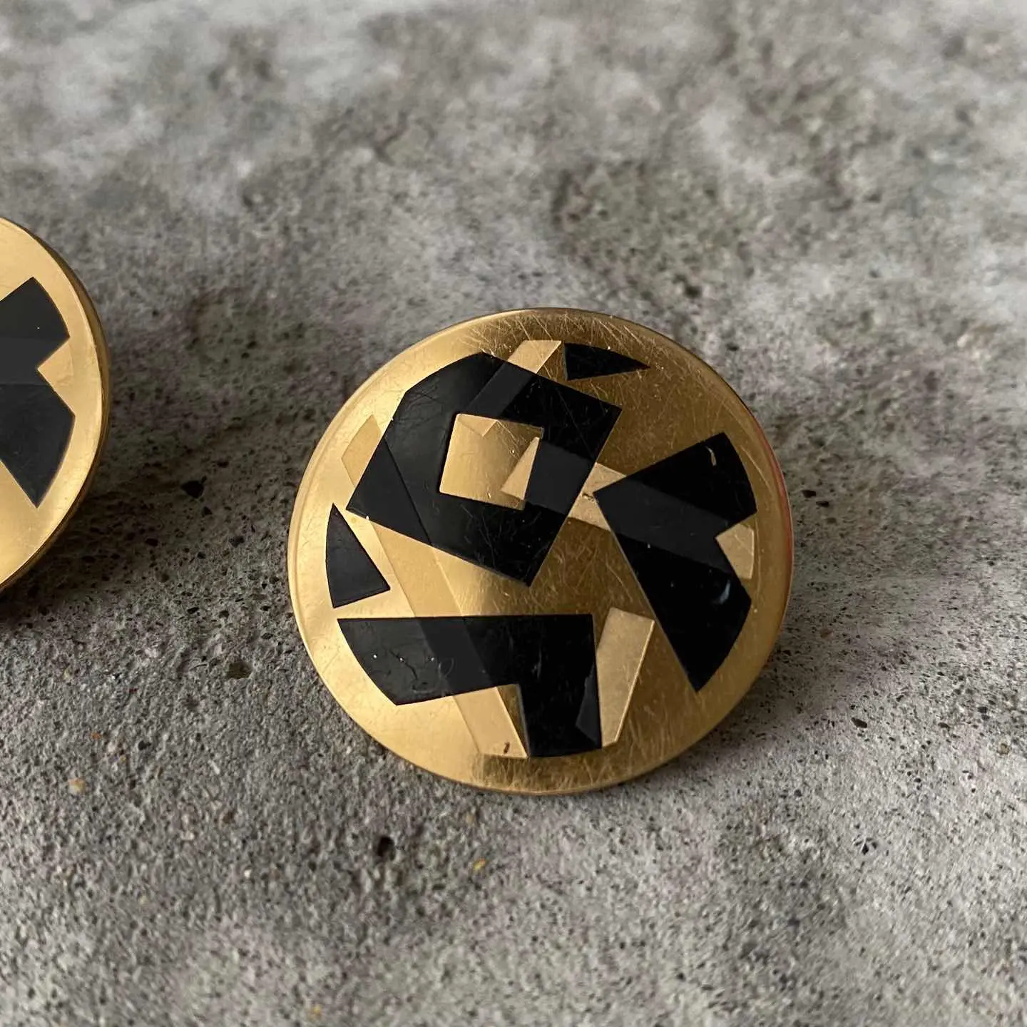 1886年にNYで香水会社として創業し、1971年よりコスチュームジュエリーの制作を始めたブランド『Avon』のUSAヴィンテージピアス。ジオメトリックな模様が描かれた個性的なデザイン。存在感がありスタイリングにお洒落な雰囲気をプラスしてくれます。 □Materials メタル(ゴールドメッキ)、塗装 □Size 直径 約2.9㎝ 11g □Brand Avon (キャッチに刻印入り) □Condition【C】 画像の通り細かなスレ傷や塗装の一部に剥がれがみられます。古びた雰囲気がお好きな方におすすめです。中古品であることをご理解のうえお買い求めください。ご購入前に必ずショッピングガイドのご確認をお願いいたします。 【S】未使用 【A】未使用に近い 【B】やや使用感あり 【C】使用感あり Item No.3447