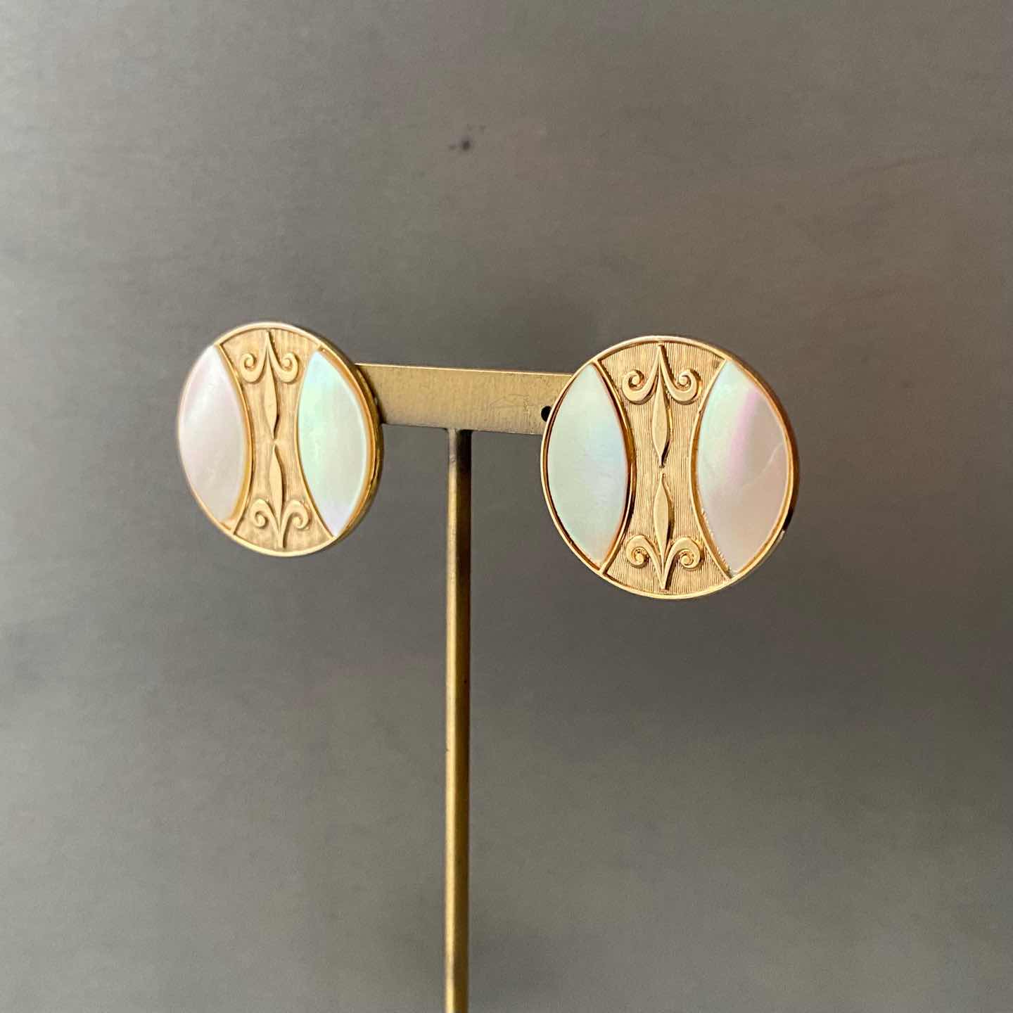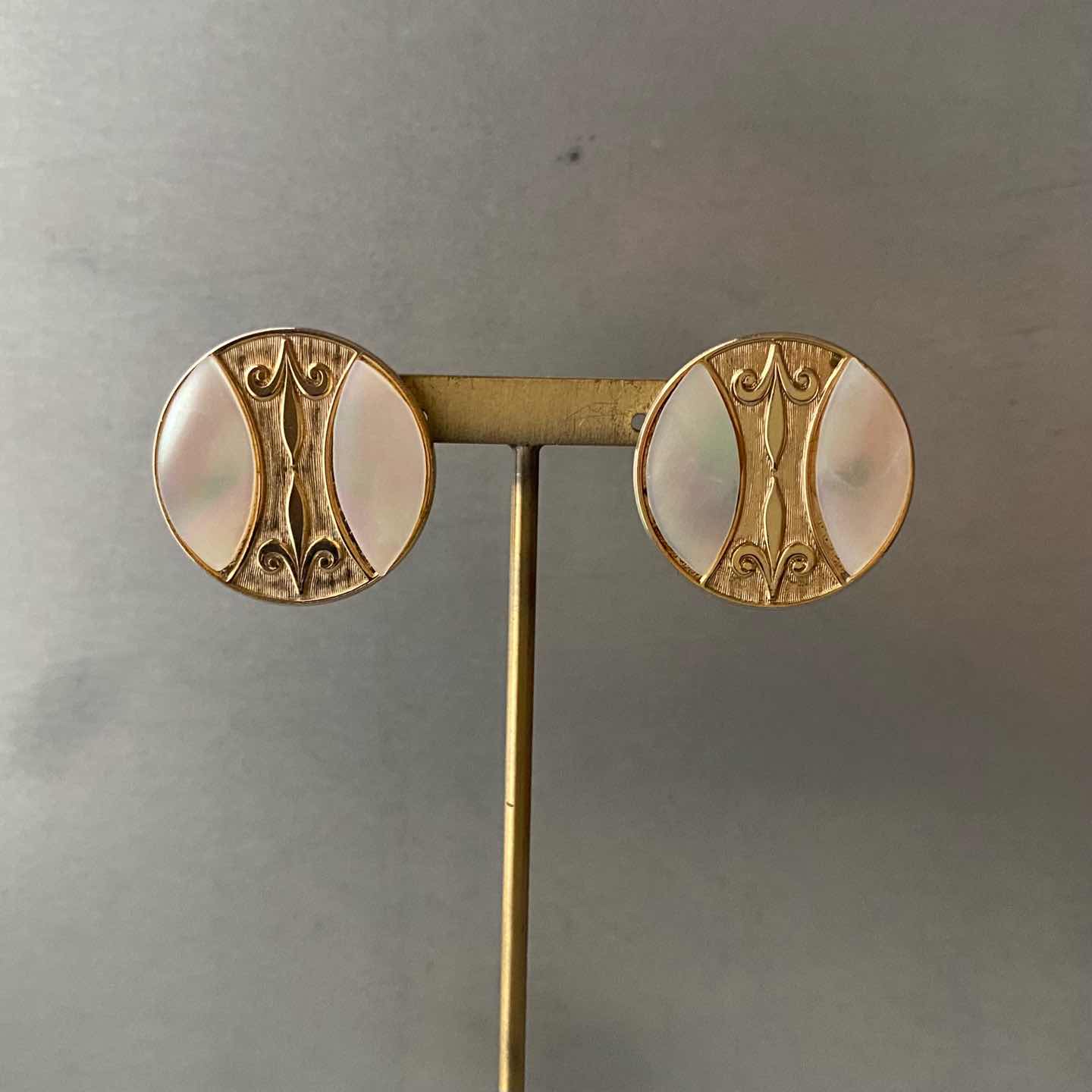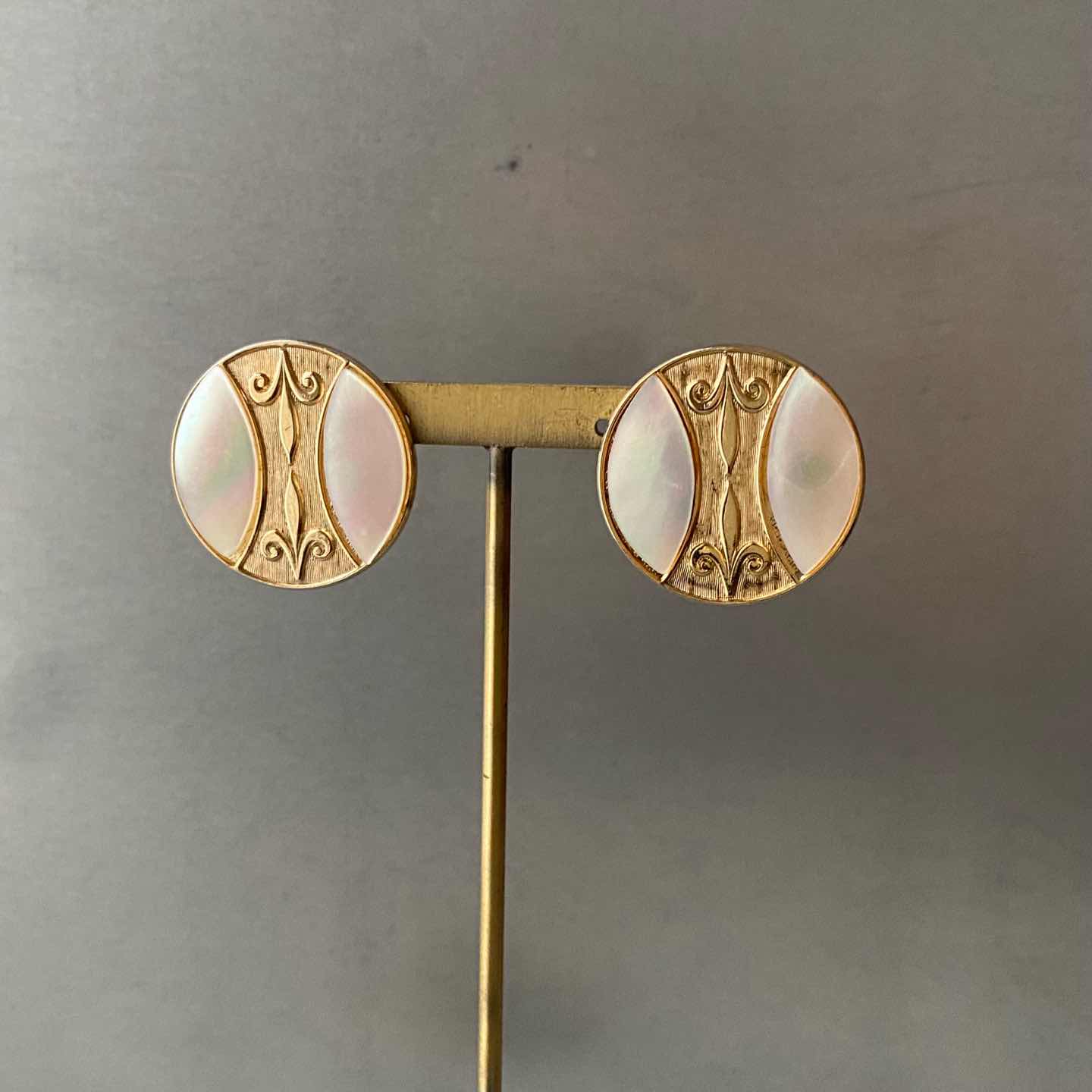 Vintage 70s-80s USA retro mother of pearl classical design earring