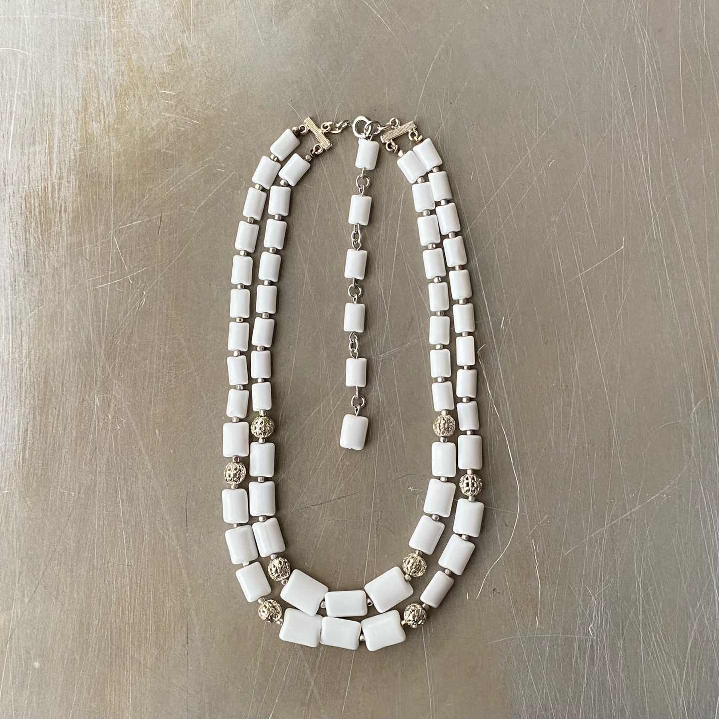 Vintage 50s-60s USA retro square milk glass beads necklace