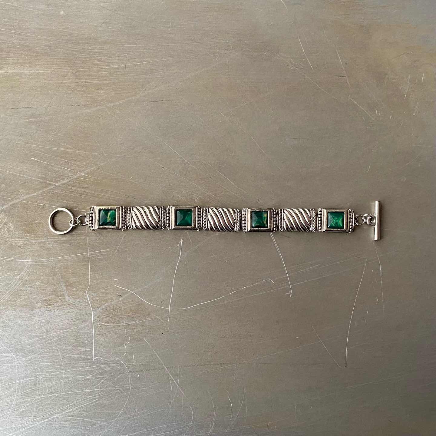 Vintage 80s-90s USA retro green bijou square chain bracelet
