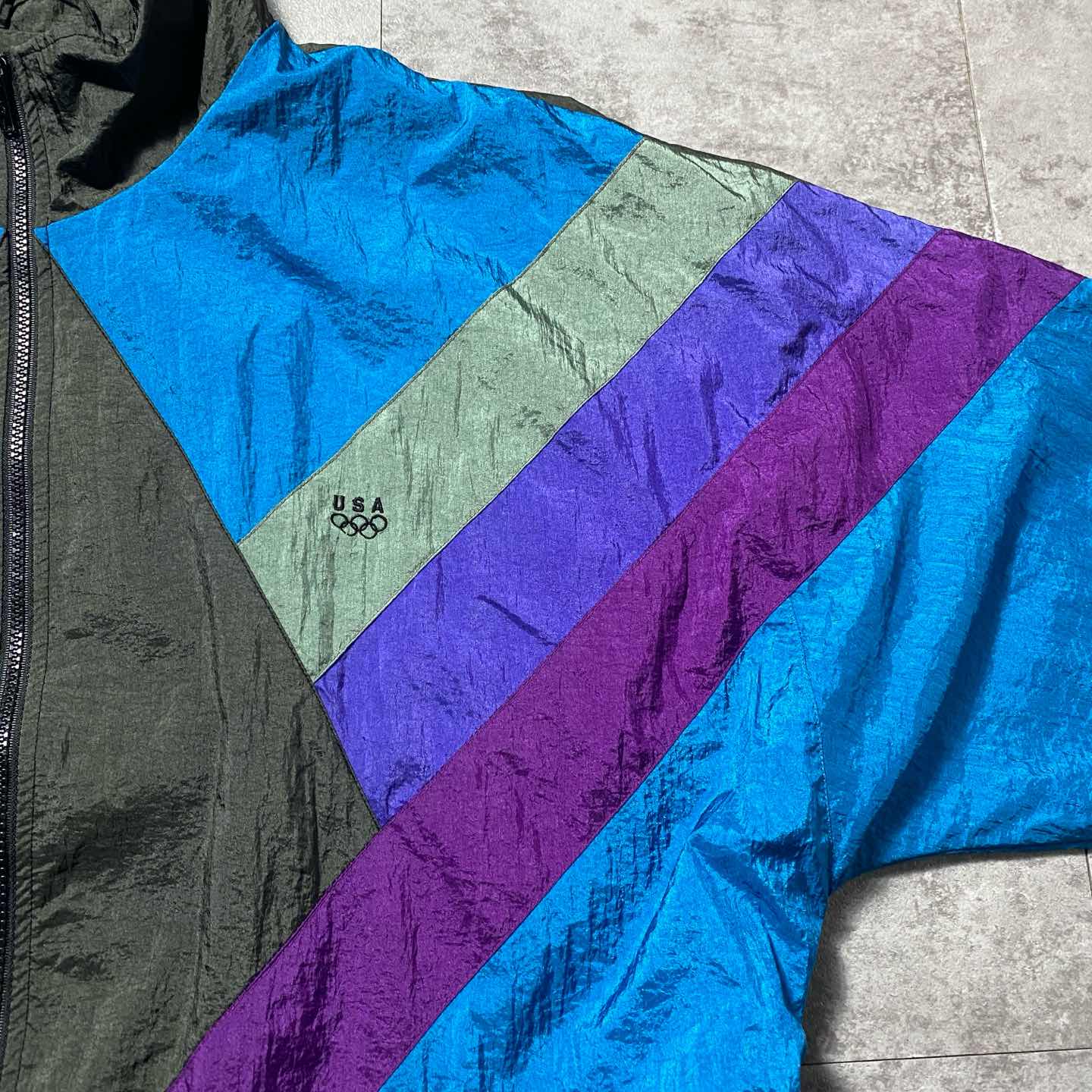 90's USA五輪 マイアミオリンピック 刺繍ロゴ クレイジーパターン ナイロンジャケット