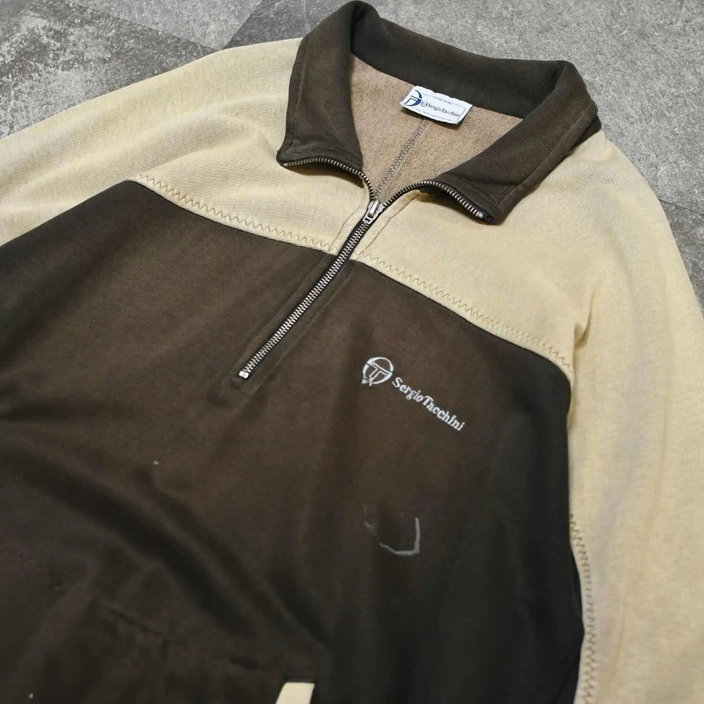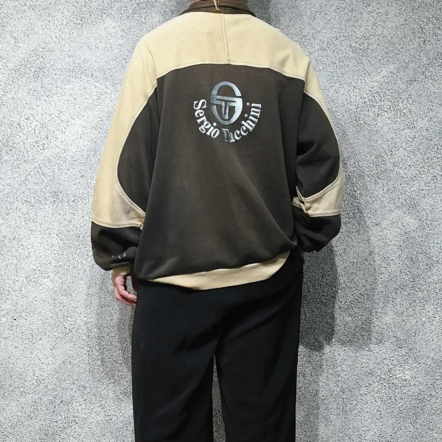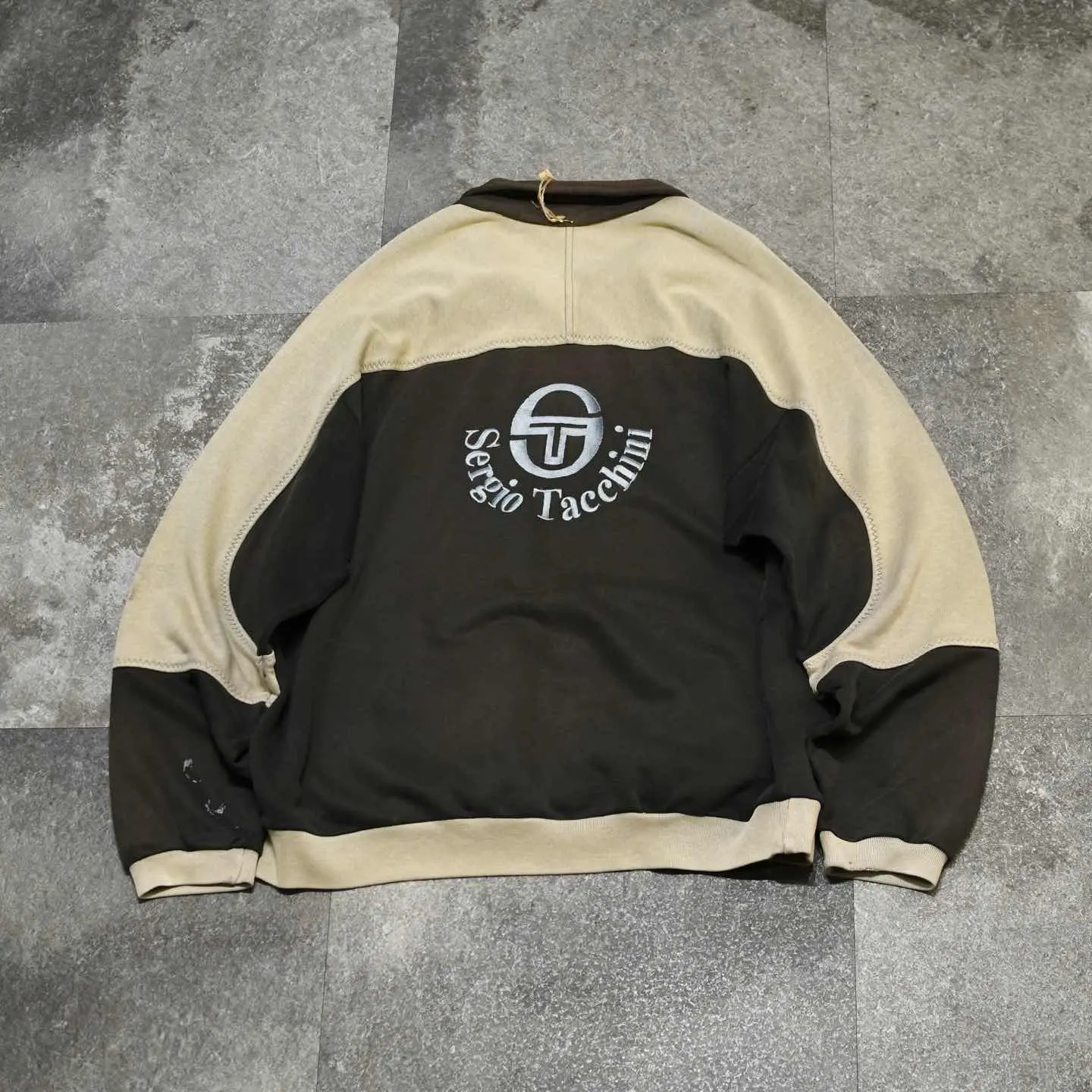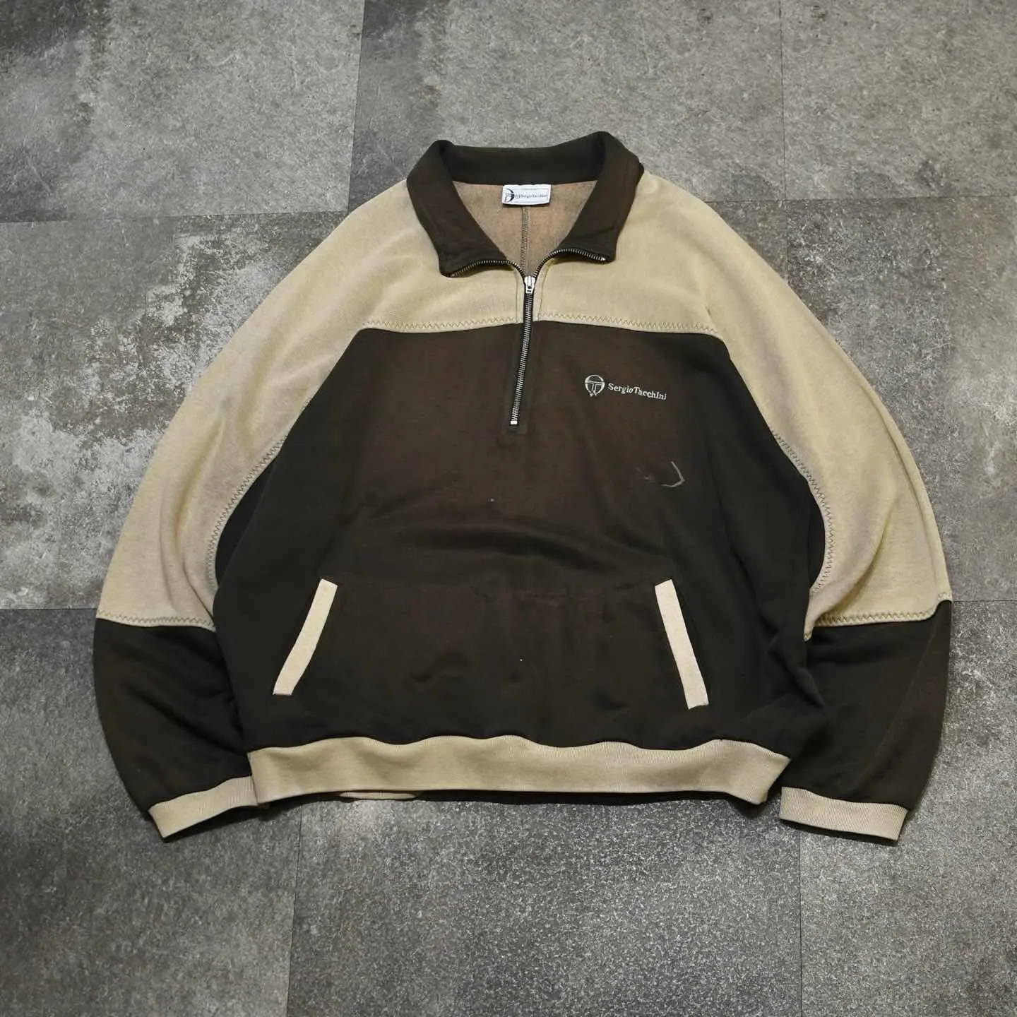 SIZE:XL 着丈73cm 身幅69cm 裄丈100cm fabric/質感よりcotton 着用画像 177cm/64kg 元々テニス選手だった人物が1966年、 イタリアで創業したブランド”Sergio Tacchini” テニスウェアを中心に、スポーツウェアから カジュアルウェアを手掛けていたようです。 好配色な生地の切り替えや、ジグザグステッチ、 さらにはフェードしたボディ。 そしてポケットはどうやら、前の持ち主が 直しを加えているようです。 デザイン性から雰囲気まで兼ね備えた1着で、 太めのアームも個人的に嬉しいポイント◎ トラックパンツなどと合わせてスポーティな コーデにも、デニムやチノなどでカジュアルにも 振ることが出来るアイテムです。 作られたフェードやボロには生み出せない、 抜群の佇まい。 おすすめです。 ※撮影状況により、実物と多少色が異なる場合が ございます。 ※古着を取り扱っているため、気づかない汚れや ほつれ等がある場合がございます。 予めご了承ください。 ※サイズは着用感で選んでおり、 表記サイズではございません。 表記サイズは説明欄の最初に記載しております。 古着 オーバーサイズ old vintage ヴィンテージ used 80's 90's アメリカ古着 ユーロ古着 POLO RALPH LAUREN Eddie Bauer OLD GAP LANDS' END ランズエンド LLBean エルエルビーン オールドギャップ エディーバウアー ラルフローレン ブルックスブラザーズ Brooks Brothers ブラウン 茶色 プルオーバー などがお好きな方 #vintage #オーバーサイズ #old #used #90s #80s #古着 #ヴィンテージ #アメリカ古着 #ユーロ古着 #LLBean #エルエルビーン #EddieBauer #エディーバウアー #oldgap #オールドギャップ #LANDSEND #ランズエンド #NAUTICA #ノーティカ #ラルフローレン #POLORALPHLAUREN #ブルックスブラザーズ #BrooksBrothers #SergioTacchini #スウェット #トレーナー #フェード #ボロ #ハーフジップスウェット #プルオーバー