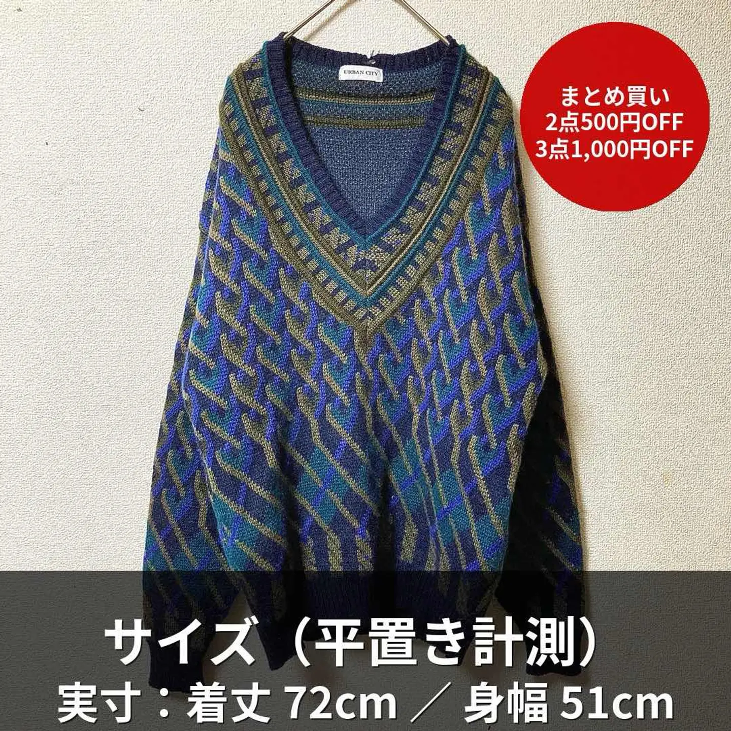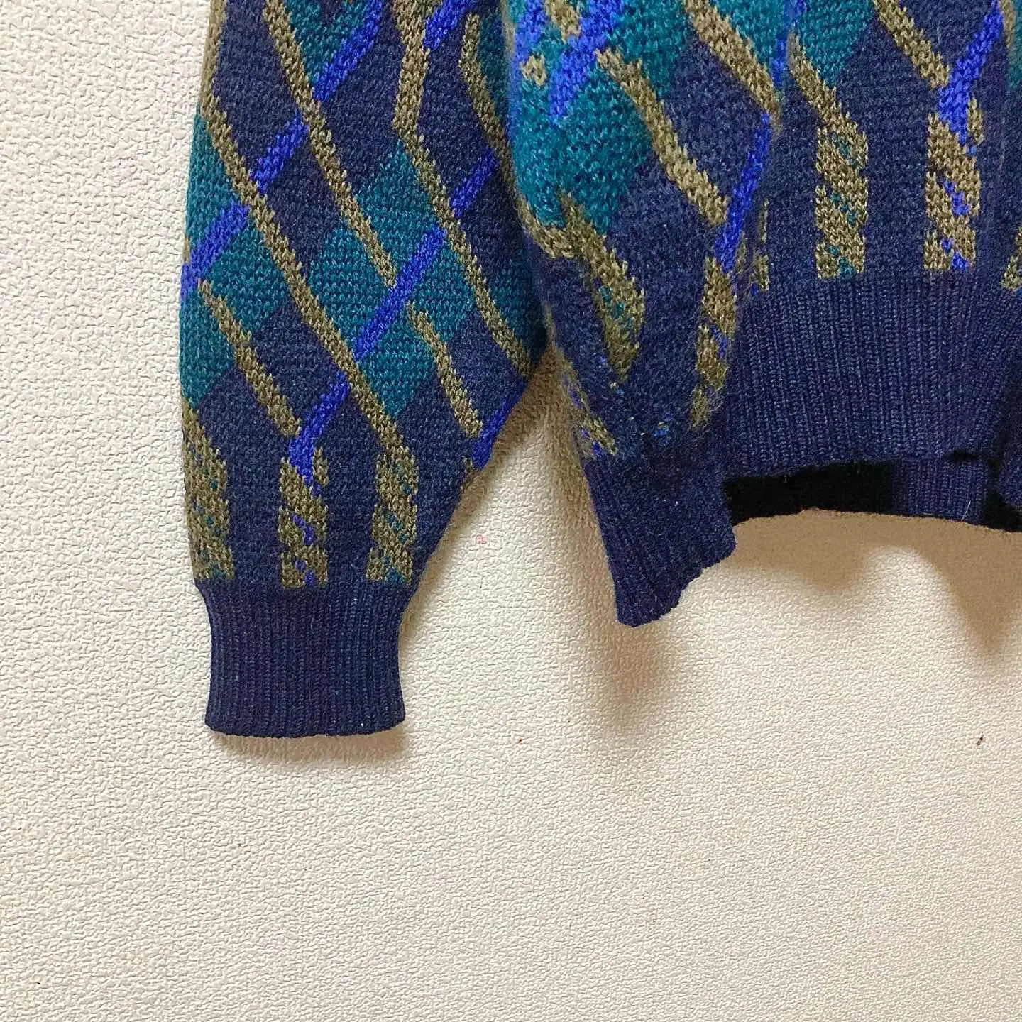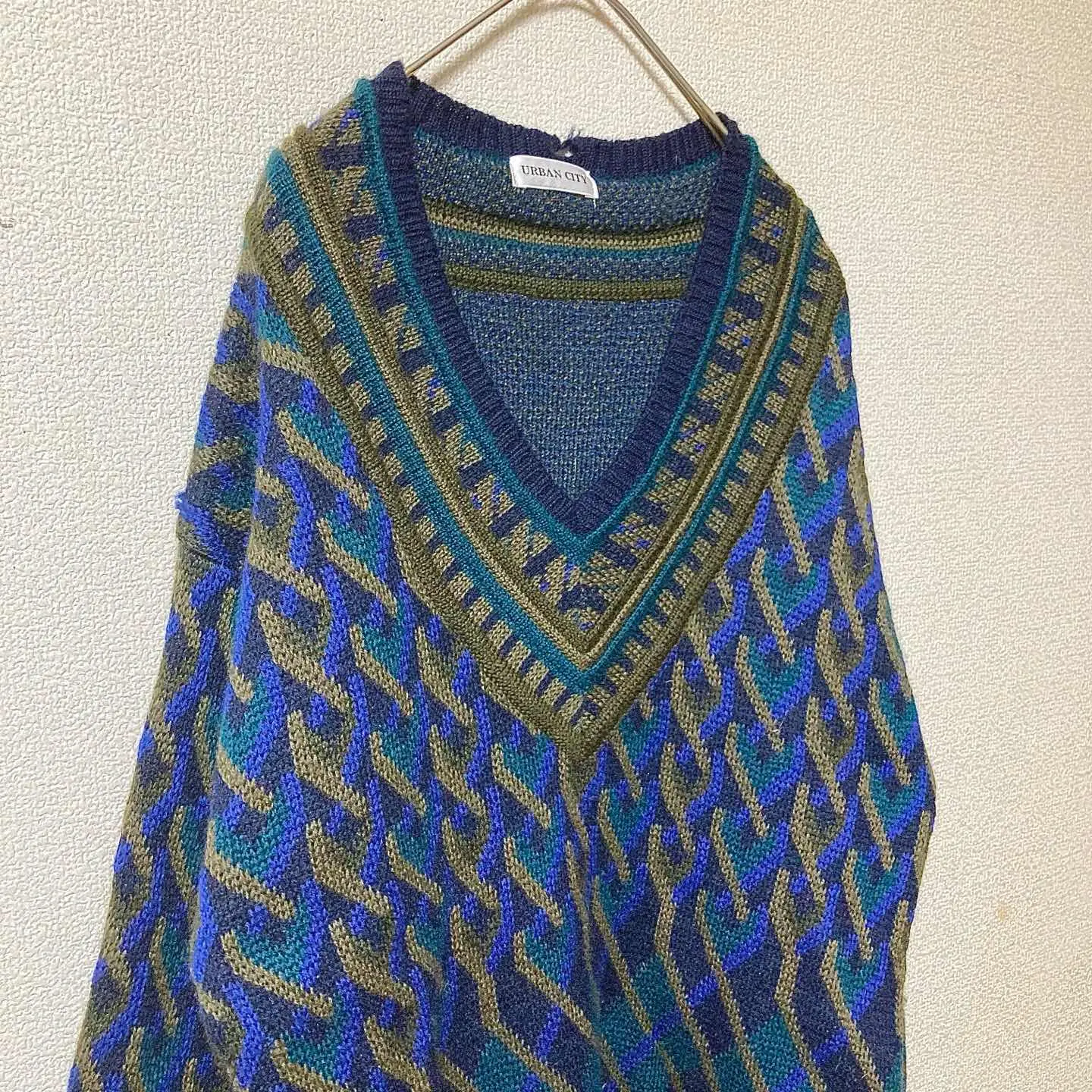 COOGI-inspired geometric texture with clean V-neck. Longer length with tidy width for a modern silhouette. • Fabric: 100% Wool • Size (flat): Length 72cm / Pit-to-pit 51cm ≈ JP L • Condition: Good vintage (light wear, no major flaws) • Shipping: Protected packing, dispatch in 1–2 days • Bundle deal: 2 items = ¥500 OFF / 3 items = ¥1,000 OFF #vintage #90s #coogiinspired #geometricknit #wool #vneck #navy #streetstyle #menswear