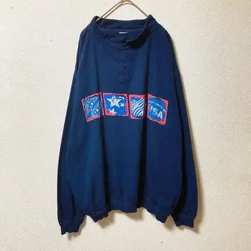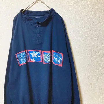 90s-inspired / vintage style (not 90s original). USA-stamp 4-panel graphic with a Henley neckline. Relaxed, oversized fit. • Size (flat): Length 68cm / Pit-to-pit 66cm ≈ JP XL • Fabric: Cotton jersey (T-shirt weight; not fleece) • Condition: Good vintage (light wear, no major flaws) • Shipping: Protected packing, dispatch in 1–2 days • Bundle deal: 2 items = ¥500 OFF / 3 items = ¥1,000 OFF #CrazyShirts #vintage #90sInspired #VintageStyle #Henley #longsleeve #USAGraphic #navy #oversized #unisex #streetwear #JPXL #JapanVintage