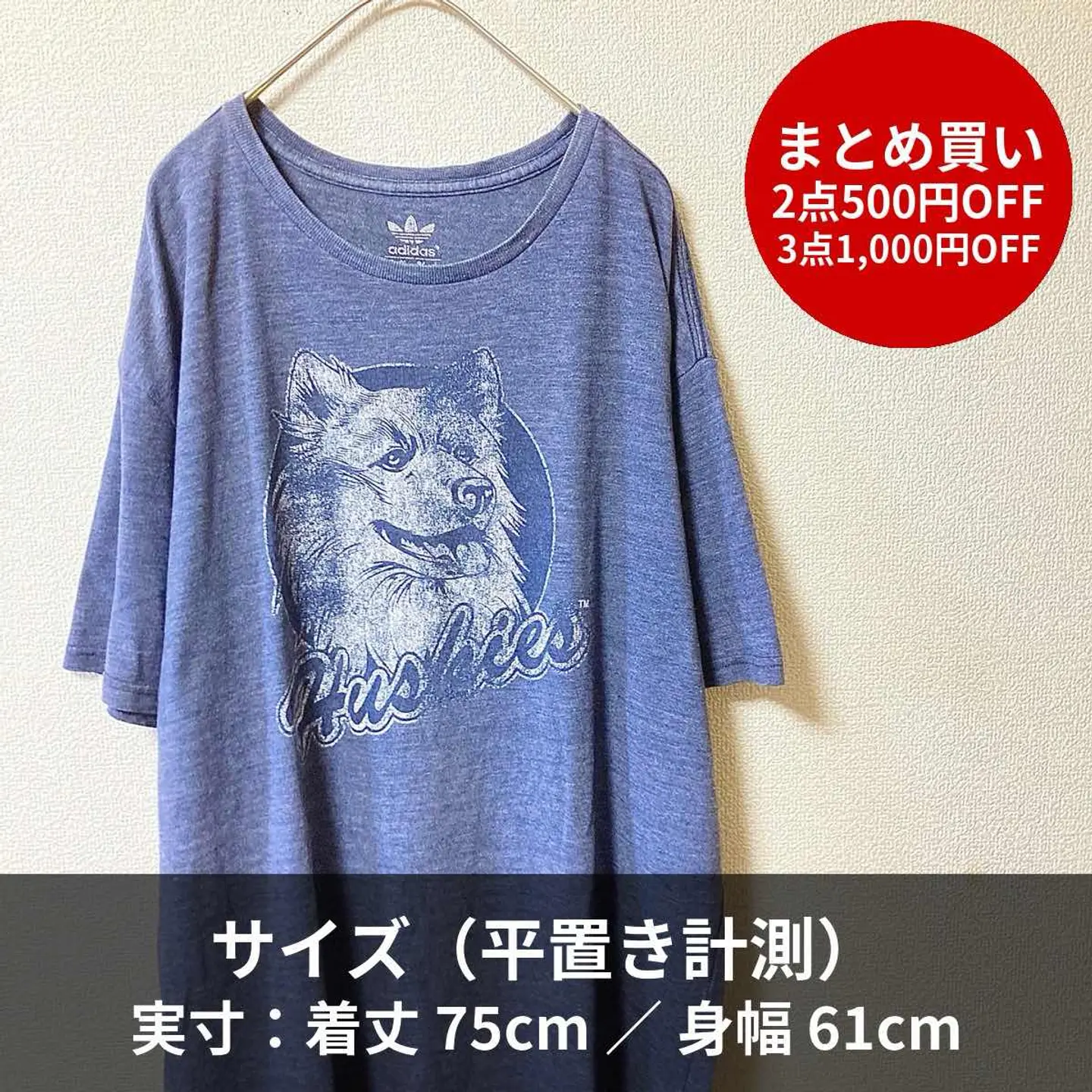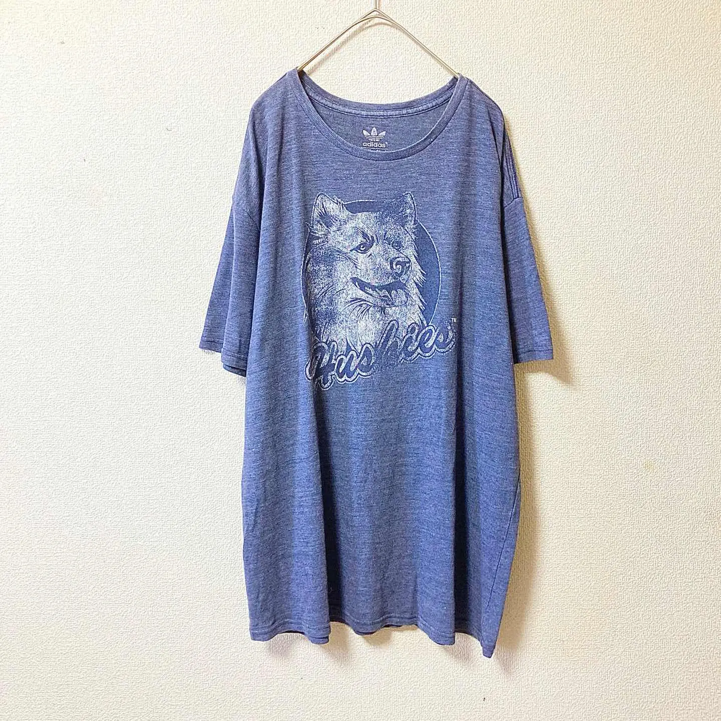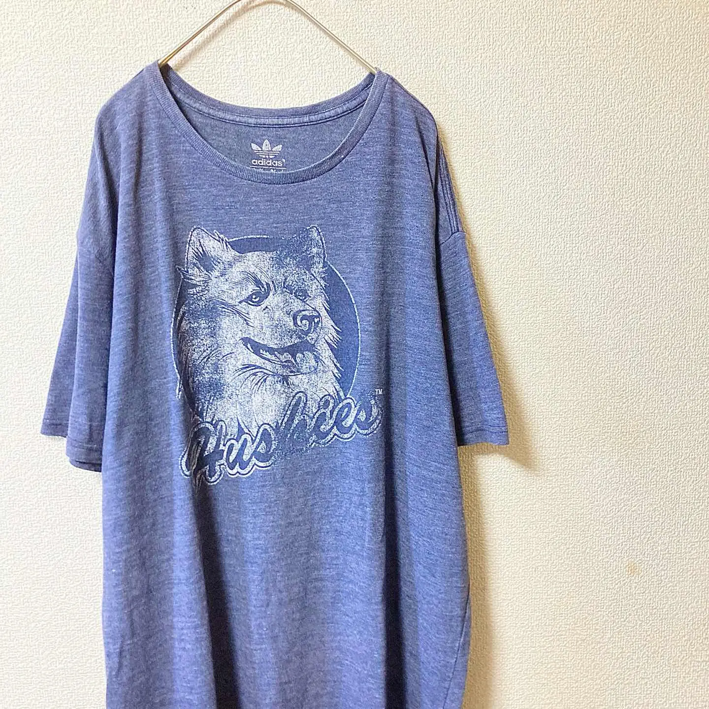 90s-inspired / vintage style (not 90s original). Large Huskies dog graphic on soft heather blue jersey. Relaxed, oversized silhouette. • Size (flat): Length 75cm / Pit-to-pit 61cm ≈ JP XL • Fabric: Cotton jersey (heather blue; not fleece) • Condition: Good vintage (light wear, no major flaws) • Shipping: Protected packing, dispatch in 1–2 days • Bundle: 2 items = ¥500 OFF / 3 items = ¥1,000 OFF #vintage #90sInspired #VintageStyle #adidas #Originals #Huskies #dogprint #graphictee #heatherblue #XL #streetwear #unisex