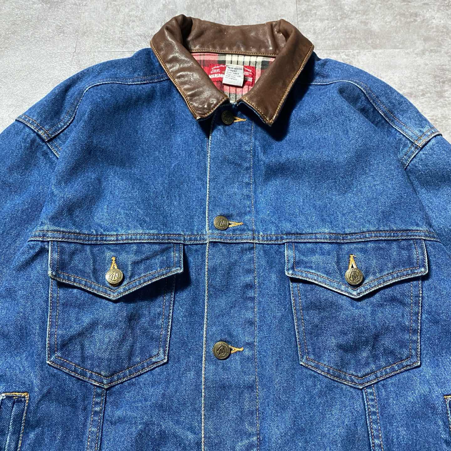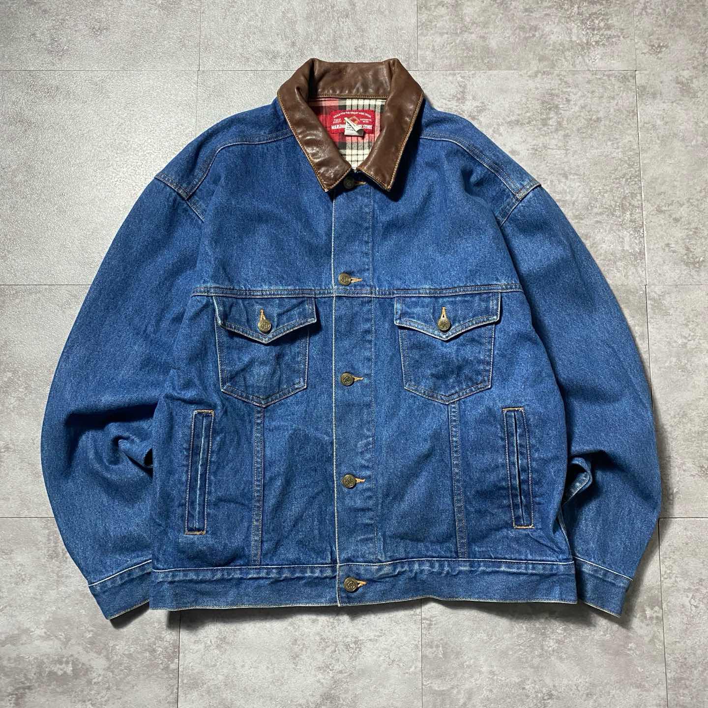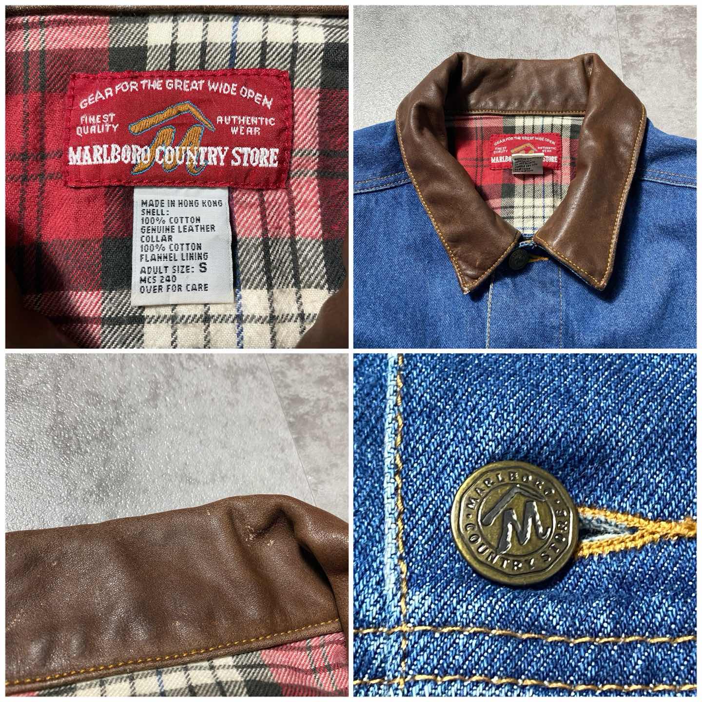 90's マルボロ レザー襟 ダブルポケット デニムジャケット ジージャン