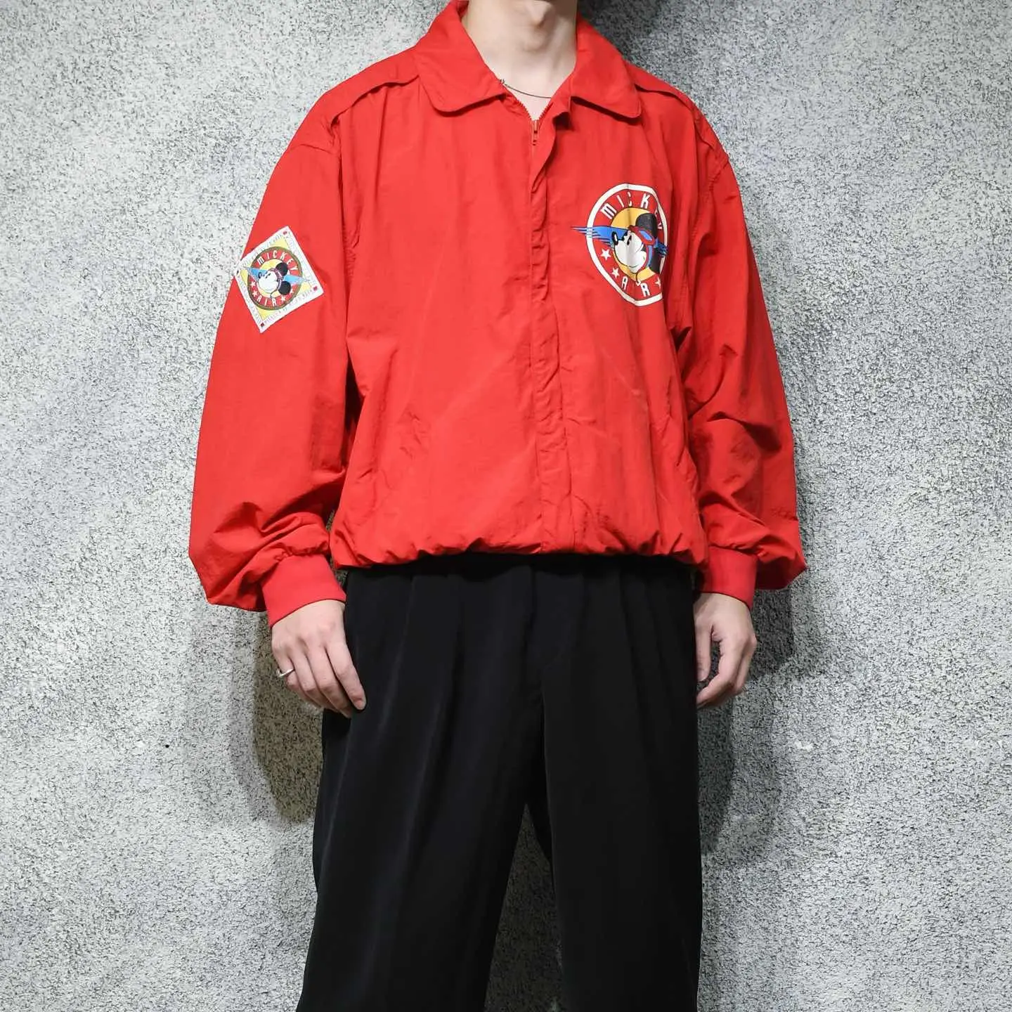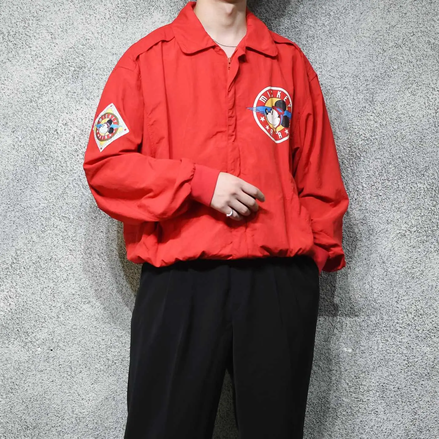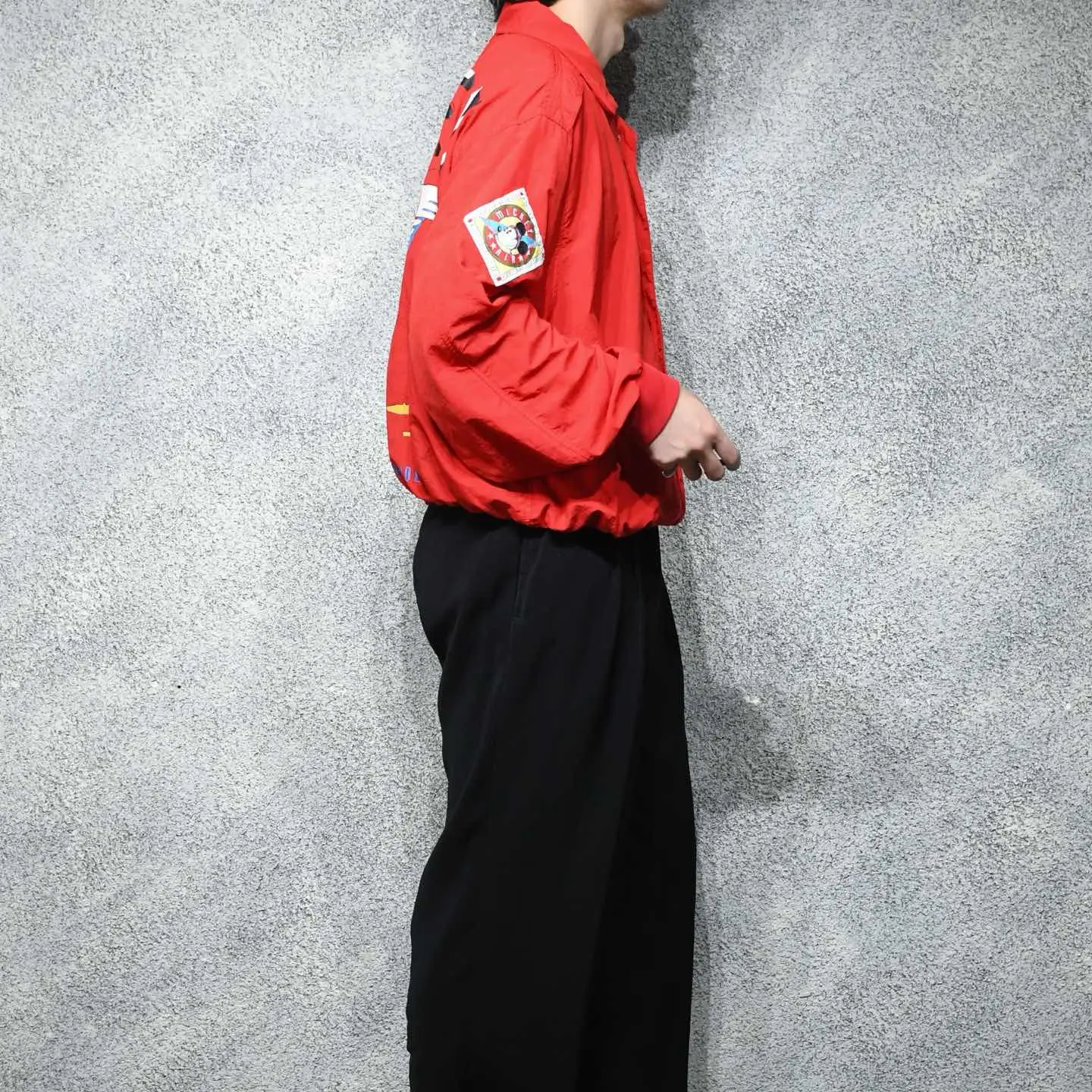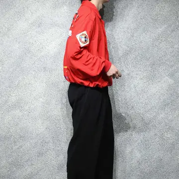 SIZE:XL 着丈69cm 肩幅59cm 身幅73cm 袖丈64cm fabric/nylon 着用画像 177cm/64kg Tシャツでもなく、スウェットでもなくアウターで。 カテゴリーが変わるだけでめっきり見掛けなくなる、 当キャラクター。 個人的に、歳を重ねるごとに疎遠になる キャラクター物ですが、このミッキーと フライトジャケットを軸とした作りには 惹かれました。 良い意味で可愛さをアイテムのディテールが 中和してくれる様な、そんな1着ではないでしょうか。 格好良さの中に、可愛さ。 気分の上がる古着として手元にどうでしょう。 ※背面裾リブに汚れあり。 ※撮影状況により、実物と多少色が異なる場合が ございます。 ※古着を取り扱っているため、気づかない汚れや ほつれ等がある場合がございます。 予めご了承ください。 ※サイズは着用感で選んでおり、 表記サイズではございません。 表記サイズは説明欄の最初に記載しております。 古着 オーバーサイズ old vintage ヴィンテージ used 80's 90's アメリカ古着 ユーロ古着 POLO RALPH LAUREN Eddie Bauer OLD GAP LANDS' END ランズエンド LLBean エルエルビーン オールドギャップ エディーバウアー ラルフローレン ブルックスブラザーズ Brooks Brothers 赤 レッド ジャケット ブルゾン mickey ディズニー などがお好きな方 #vintage #オーバーサイズ #old #used #90s #80s #古着 #ヴィンテージ #アメリカ古着 #ユーロ古着 #LLBean #エルエルビーン #EddieBauer #エディーバウアー #oldgap #オールドギャップ #LANDSEND #ランズエンド #NAUTICA #ノーティカ #ラルフローレン #POLORALPHLAUREN #ブルックスブラザーズ #BrooksBrothers #ディズニー #Disney #ミッキー #mickey #フライトジャケット #ジャケット #ブルゾン