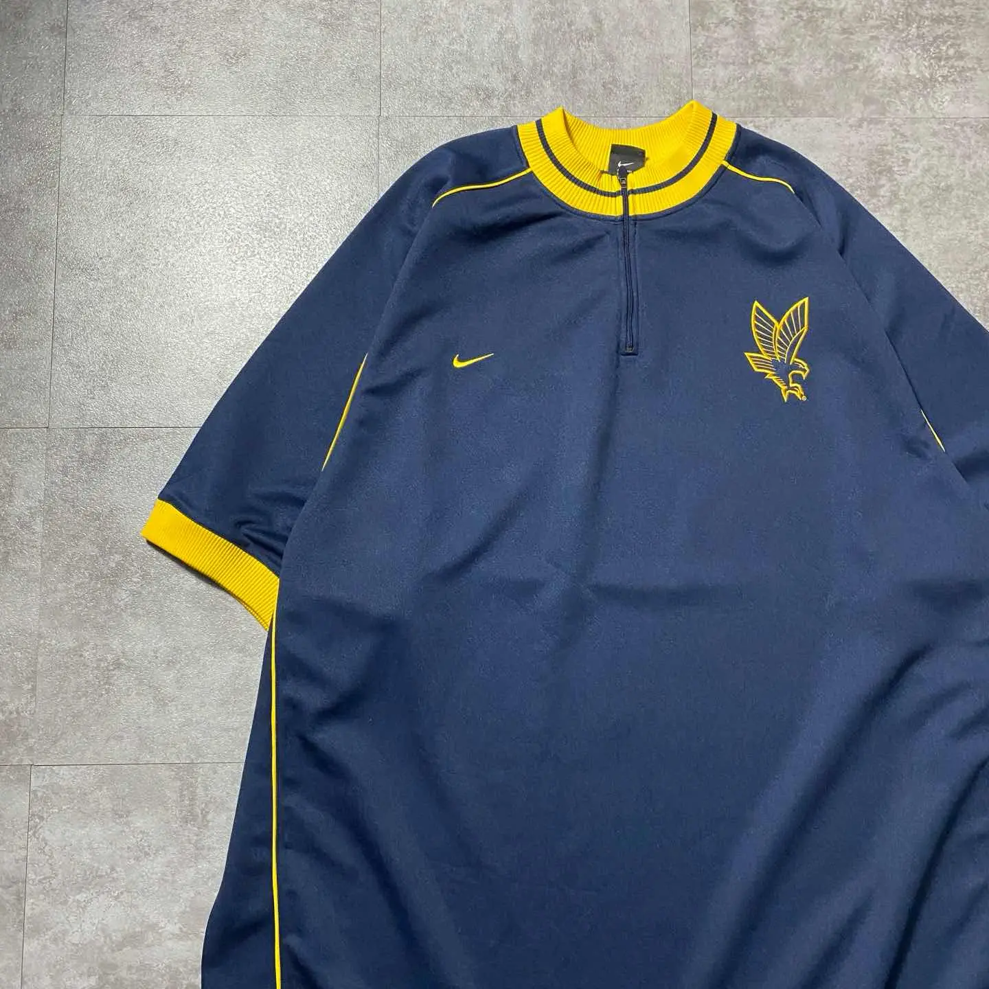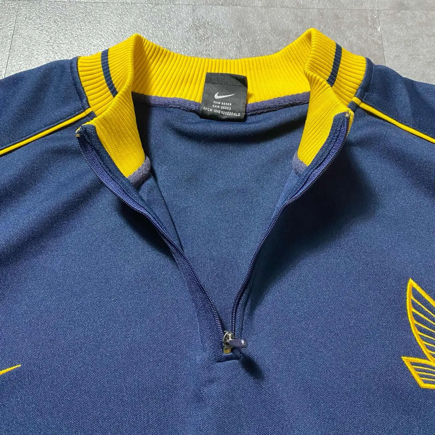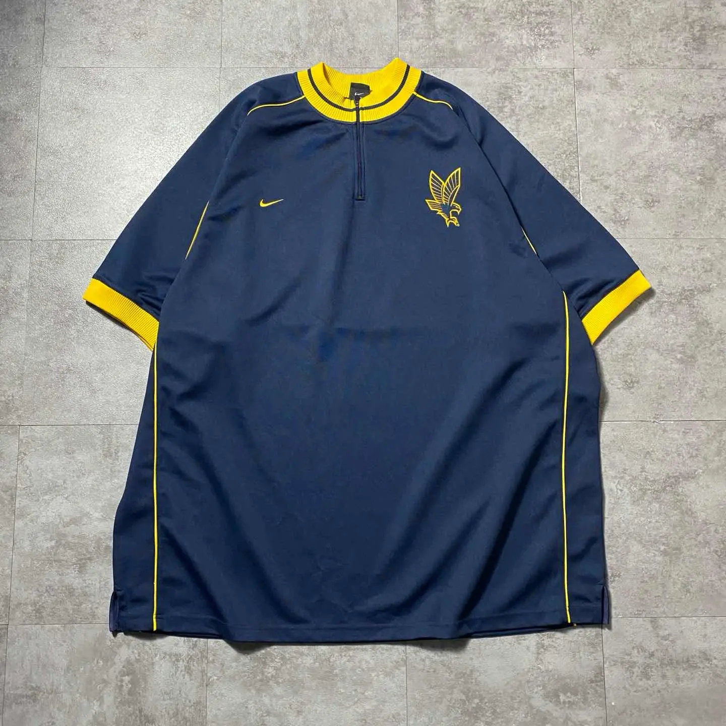 00's ナイキ スウォッシュ 刺繍ロゴ ハーフジップ グッドダメージ パーカー