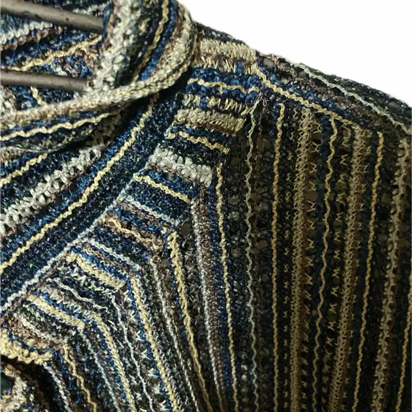 60s L.T.S チンスト ハ字襟 クロシェ織 サイケストライプシャツ F 暑いし寒いし、どうしたらいいの?って、服けちるからじゃん?笑、 シャツは夏だけでしょとかないでしょ。ビックサイズだとそれが可能です。コーディネート参考に下さい、 そんなの重ねればいいじゃん!です。これ他のコーディネートも使ってるんで探しながら参考にすると良いですよ おしゃれいつでもアップデートです。流行と自分のアイデンティティー、これをミックスするテクニックをつけていく、それだけです、 流行りだけ、自我だけだと、 だめなんですよね そんな事はどうでもいいとして半端ないシャツ紹介 L.T.S.と明記してます。 下手したら、オーダー系 先ず年代は、即わかり、 題名に明記してます、えり クロシェ織で、サイケデリックストライプこの時点で60年代から70年代が分かります。 後はチンスト、60確定です!! さらにこんな手間暇かかったの現在作るわけないじゃないですか。高額になるからです。 この時代の時代だったので、確実に現行物よりは質は何十倍もいいです。 コーディネート70年代のモダンなイタリアのボトムにコンバース。 もういっこ提供もグライダー芝ちゃん風コーデ ニードルズのトラックボトムにシャツを合わせる、芝ちゃんは、さらに、これに、ジャケットとか合わせますよね、カッコいいっすよね、理由、簡単です。服にこだわっているからです。 以上のことを念頭にゲットください。確実にあなたのコーディネートの格は上がります。 ▷color◁ 写真チンストアップ参照!! ※ブラウザで異なる場合ありますがかなり実物には、近づけてます、 ▷size◁ 平置き片面採寸【㎝表記】 表記size 不明Fは、ある 着丈/77 身幅/64 肩幅/60DS 袖丈 /40↓ DSは袖はハンガー採寸 ※多少の誤差は理解下さい 170/Mジャスト体型の私が着て、✔️参考に ジャスト オーバーサイズ ビックサイズ✔︎ 【素材】 クロシェとか、さまざまな織の、洗えたんで。おそらくアンティーク化繊ニット、 現代廃盤 【状態】 新品に近い 検品、洗濯、検品で、3回チェックして発送しますので、ご安心して、お買い求め下さい!!