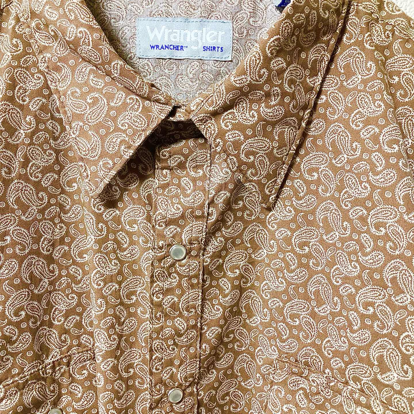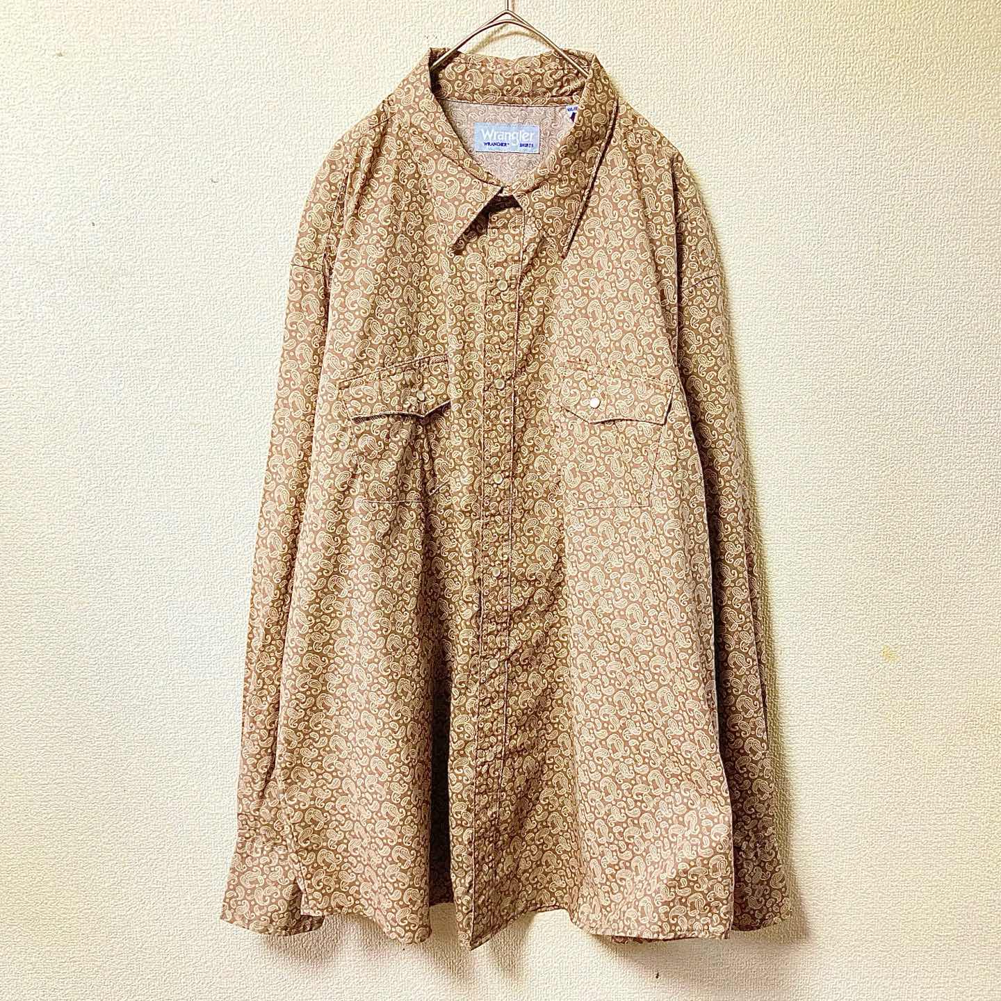 [Category] Long-sleeve shirt / Western [Brand] Wrangler (WRANCHER) [Fit] XXL (relaxed) [Measured flat] Length 82cm / Pit-to-pit 71cm [Notes] Allover paisley, snap pockets; easy statement piece. [Condition] Good used; no major flaws. [Shipping] Tracked; packed waterproof + cushioning. [Bundle] Follow/Bundle discount available. (JP補足:現行~近年の“ヴィンテージ風”。実寸優先でご検討ください。) #Wrangler #WRANCHER #paisley #western #shirts #XXL #streetwear #vintage #90sstyle #ヴィンテージ #ビンテージ