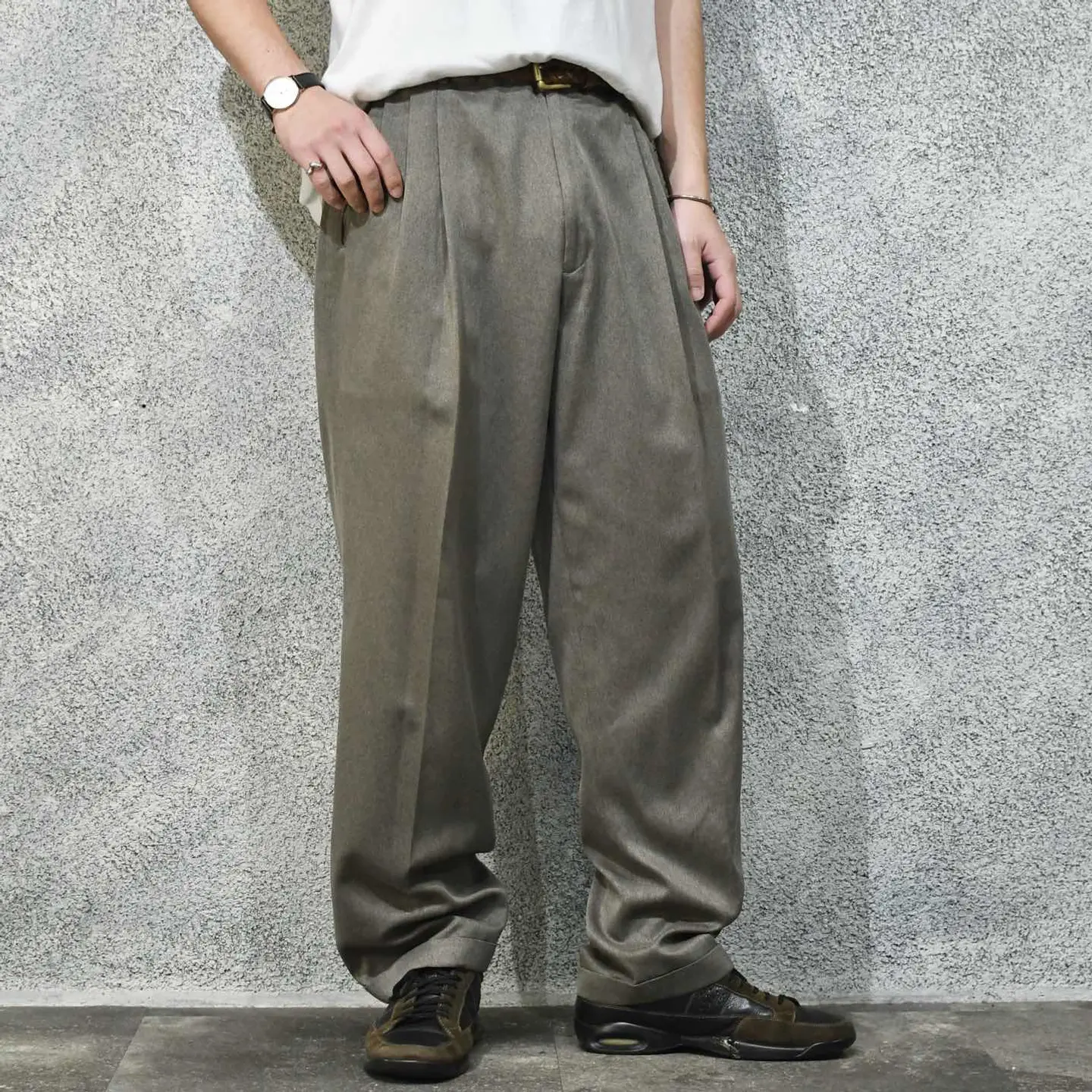 SIZE:- ウエスト88cm 総丈105cm 股下77cm わたり40cm 裾幅22.5cm fabric/質感よりpoly 着用画像 177cm/64kg LEVI'Sが80's~00'sにかけて展開していた ドレストラウザーレーベル”SLATES” 至近ふつふつと知名度が上がってきている ブランドの一つで、ほぼスラックスのみを 扱っていたからこそのクオリティは、 頭ひとつ秀でています。 SLATESの中でも比較的珍しい、3タックという 贅沢なウエスト周りのディテールから生まれる ワイドなシルエットと、滑らかで動きのある生地。 スラックスだけに限らず、パンツの良し悪しが 分かりにくく、パンツを探していたけれど 決め手に欠けていた方にも自信を持って推せる 逸品です。 ※裾上げ等のレングス直しにつきましては、 裾上げ方法によっては、別途料金が 発生する場合がございます。 購入前に、必ずご連絡お願い致します。 また、購入後の直しには対応出来かねます。 ※撮影状況により、実物と多少色が異なる 場合がございます。 ※古着を取り扱っているため、気づかない汚れや ほつれがある場合がございます。 予めご了承ください。 ※サイズは着用感で選んでおり、 表記サイズではございません。 表記サイズは説明欄の最初に記載しております。 古着 オーバーサイズ old vintage ヴィンテージ used 80's 90's アメリカ古着 ユーロ古着 POLO RALPH LAUREN Eddie Bauer OLD GAP LANDS' END ランズエンド LLBean エルエルビーン オールドギャップ エディーバウアー ラルフローレン ブルックスブラザーズ Brooks Brothers グレー 灰色 タックパンツ リーバイス などがお好きな方 #vintage #オーバーサイズ #old #used #90s #80s #古着 #ヴィンテージ #アメリカ古着 #ユーロ古着 #LLBean #エルエルビーン #EddieBauer #エディーバウアー #oldgap #オールドギャップ #LANDSEND #ランズエンド #NAUTICA #ノーティカ #ラルフローレン #POLORALPHLAUREN #ブルックスブラザーズ #BrooksBrothers #ワイドパンツ #タックパンツ #スラックス #リーバイス #LEVIS