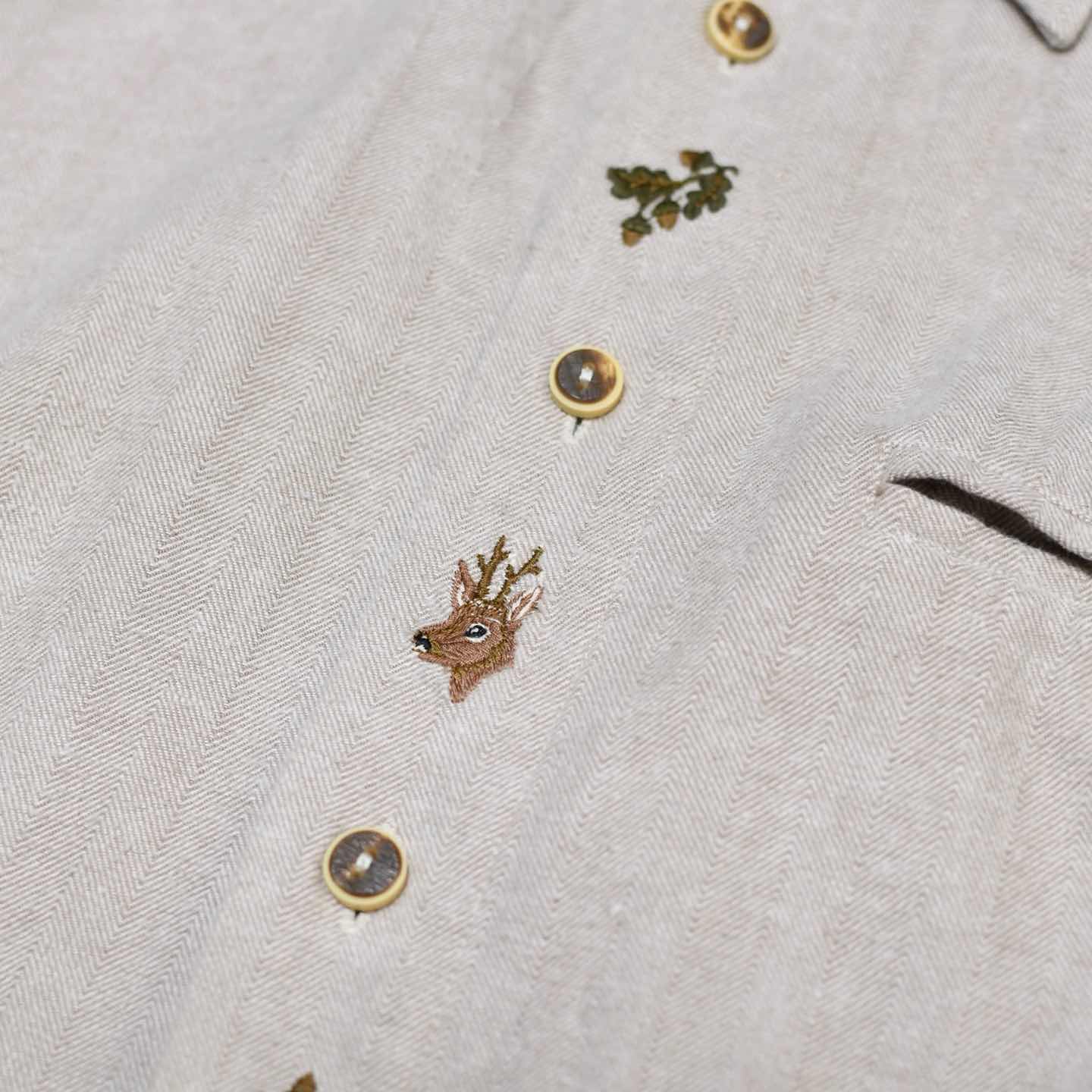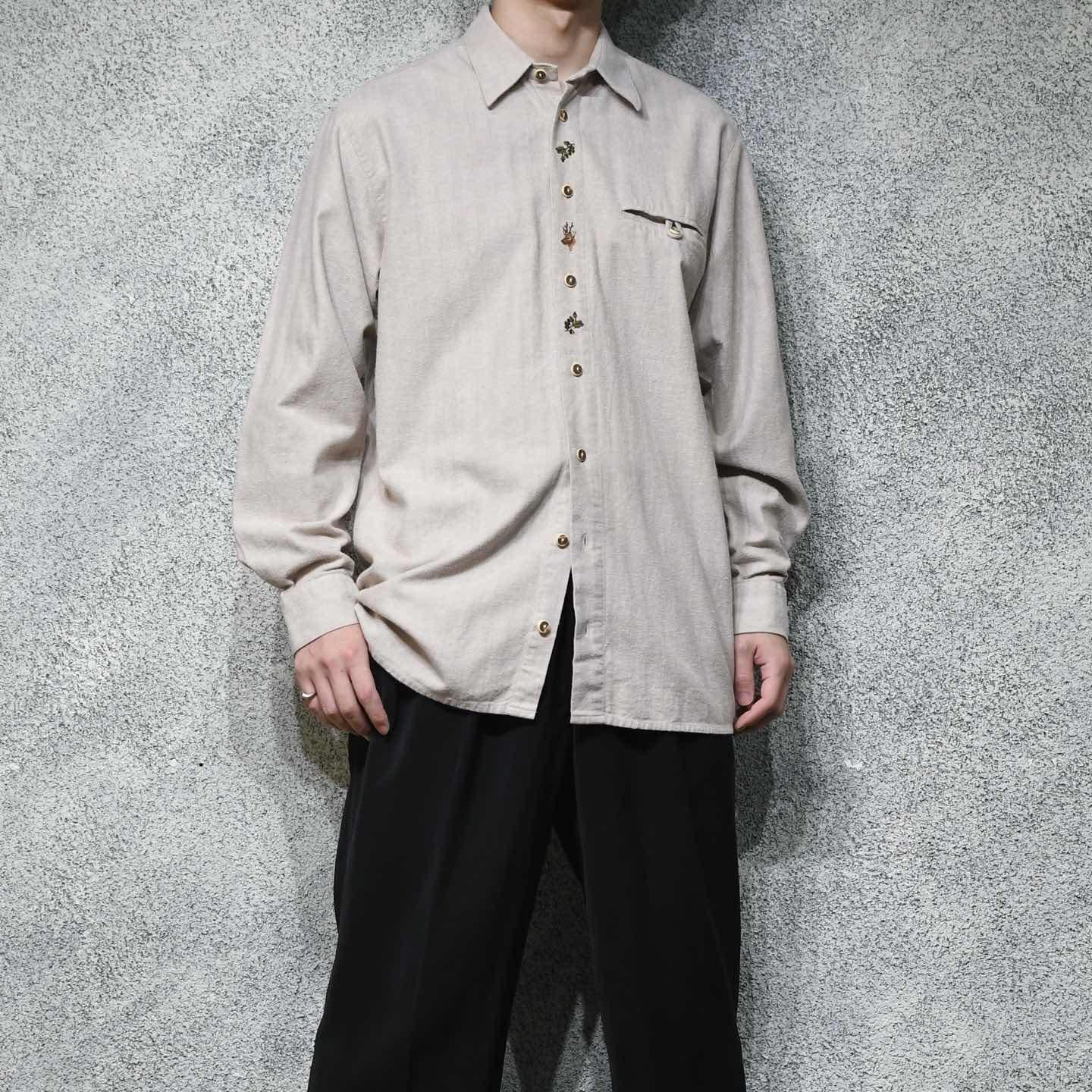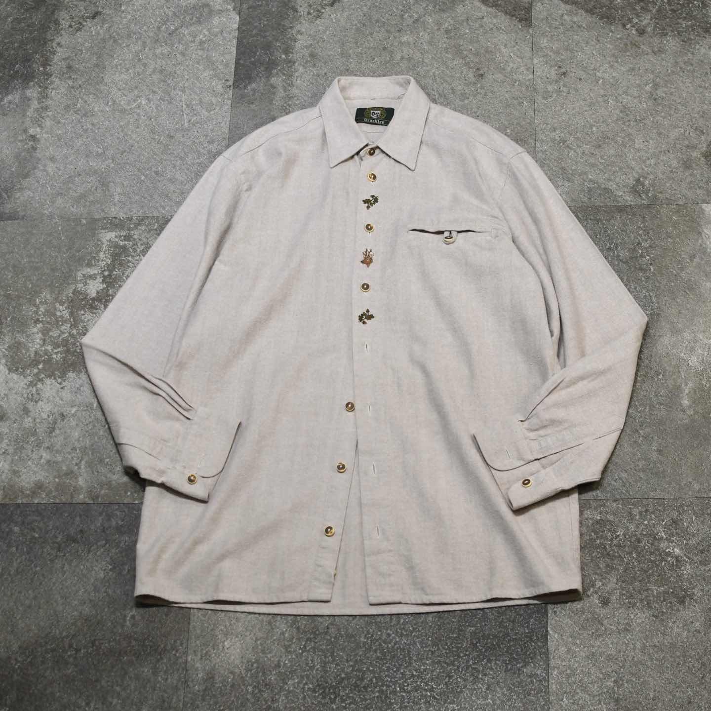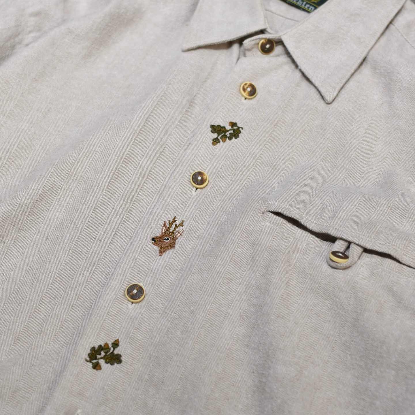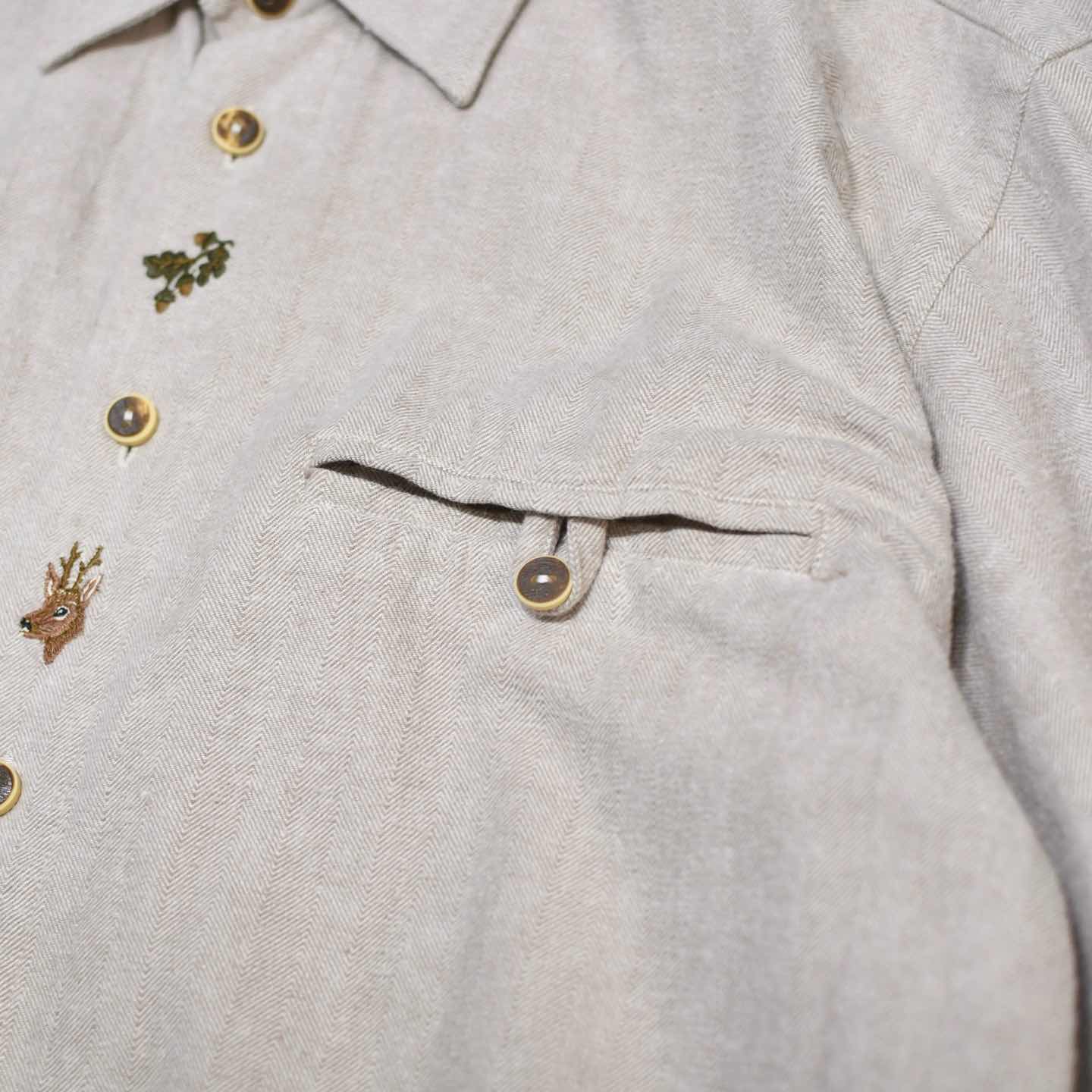 古着 ヘリンボーン織り チロリアンシャツ 刺繍 デザインシャツ 長袖シャツ シャツ