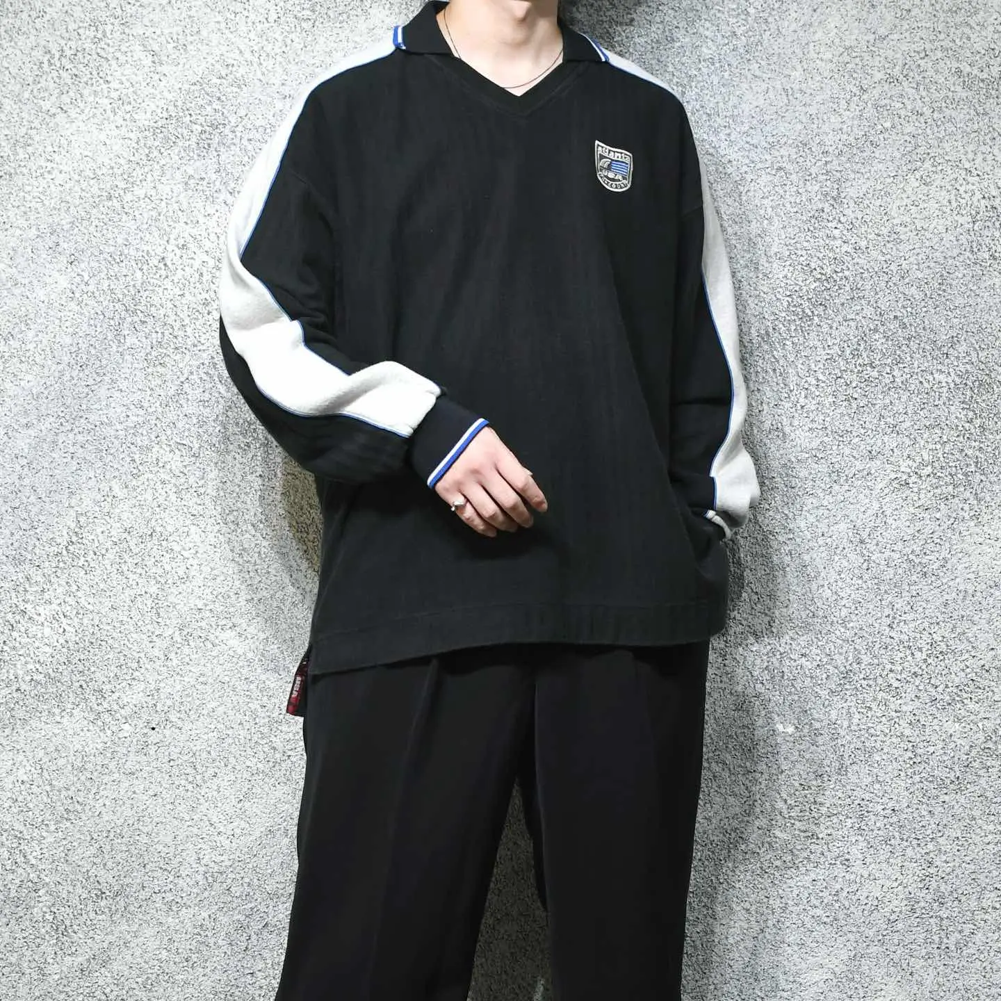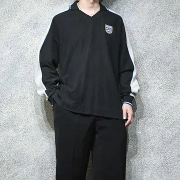 SIZE:XL 着丈67cm(前)77cm(後) 身幅71cm 裄丈98cm fabric/cotton 着用画像 177cm/64kg スポーツウェアでありながら、 正統派スポーツウェアとはどこか違う魅力を 持ち合わせた1着として惹かれました。 切り替えのデザインや胸元のロゴはスポーツウェア、 そこにスキッパータイプの胸元、ヘリンボーン織り というディテールが良いアクセントに。 既にスポーツウェアの古着がある方は、 幅を広げられますし、無い方は落とし込み易い。 そんな1着として活躍するのではないでしょうか。 ワークパンツやミリタリーでもありながちな、 ヘリンボーン織りのパンツと合わせるのも、 おすすめです。 ※撮影状況により、実物と多少色が異なる場合が ございます。 ※古着を取り扱っているため、気づかない汚れや ほつれ等がある場合がございます。 予めご了承ください。 ※サイズは着用感で選んでおり、 表記サイズではございません。 表記サイズは説明欄の最初に記載しております。 古着 オーバーサイズ old vintage ヴィンテージ used 80's 90's アメリカ古着 ユーロ古着 POLO RALPH LAUREN Eddie Bauer OLD GAP LANDS' END ランズエンド LLBean エルエルビーン オールドギャップ エディーバウアー ラルフローレン ブルックスブラザーズ Brooks Brothers ブラック 灰色 グレー 黒 トレーナー などがお好きな方 #vintage #オーバーサイズ #old #used #90s #80s #古着 #ヴィンテージ #アメリカ古着 #ユーロ古着 #LLBean #エルエルビーン #EddieBauer #エディーバウアー #oldgap #オールドギャップ #LANDSEND #ランズエンド #NAUTICA #ノーティカ #ラルフローレン #POLORALPHLAUREN #ブルックスブラザーズ #BrooksBrothers #スウェット #トレーナー #スキッパー #デザインスウェット