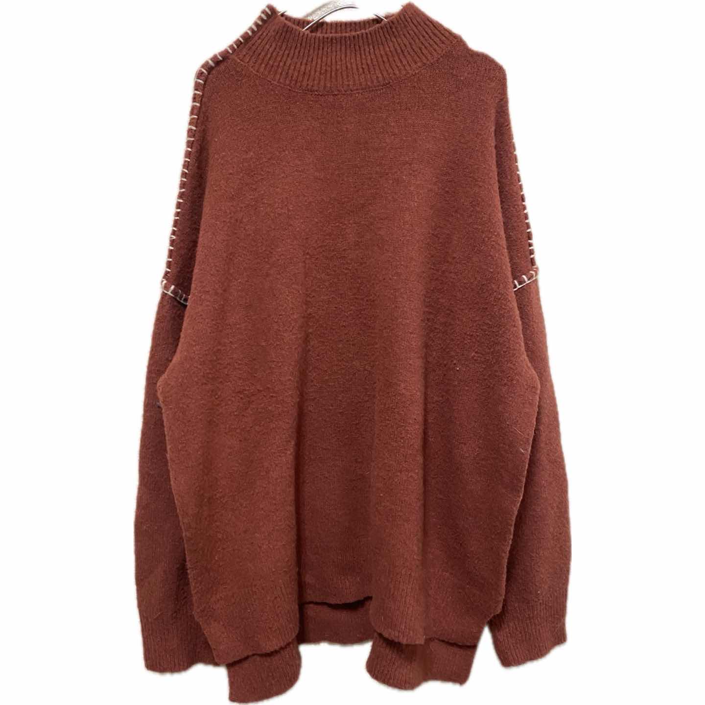 80s ハーフタートルネック 肉厚、セーターBOXDS ステッチアート