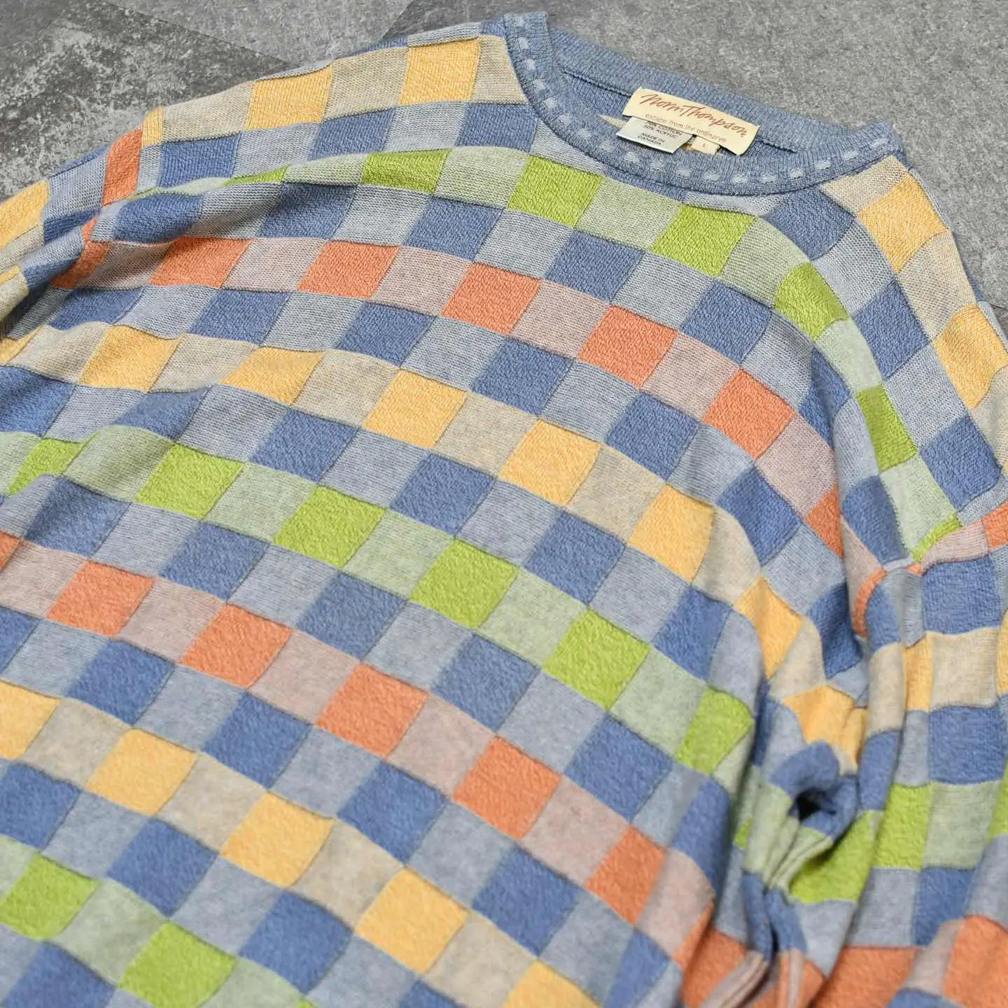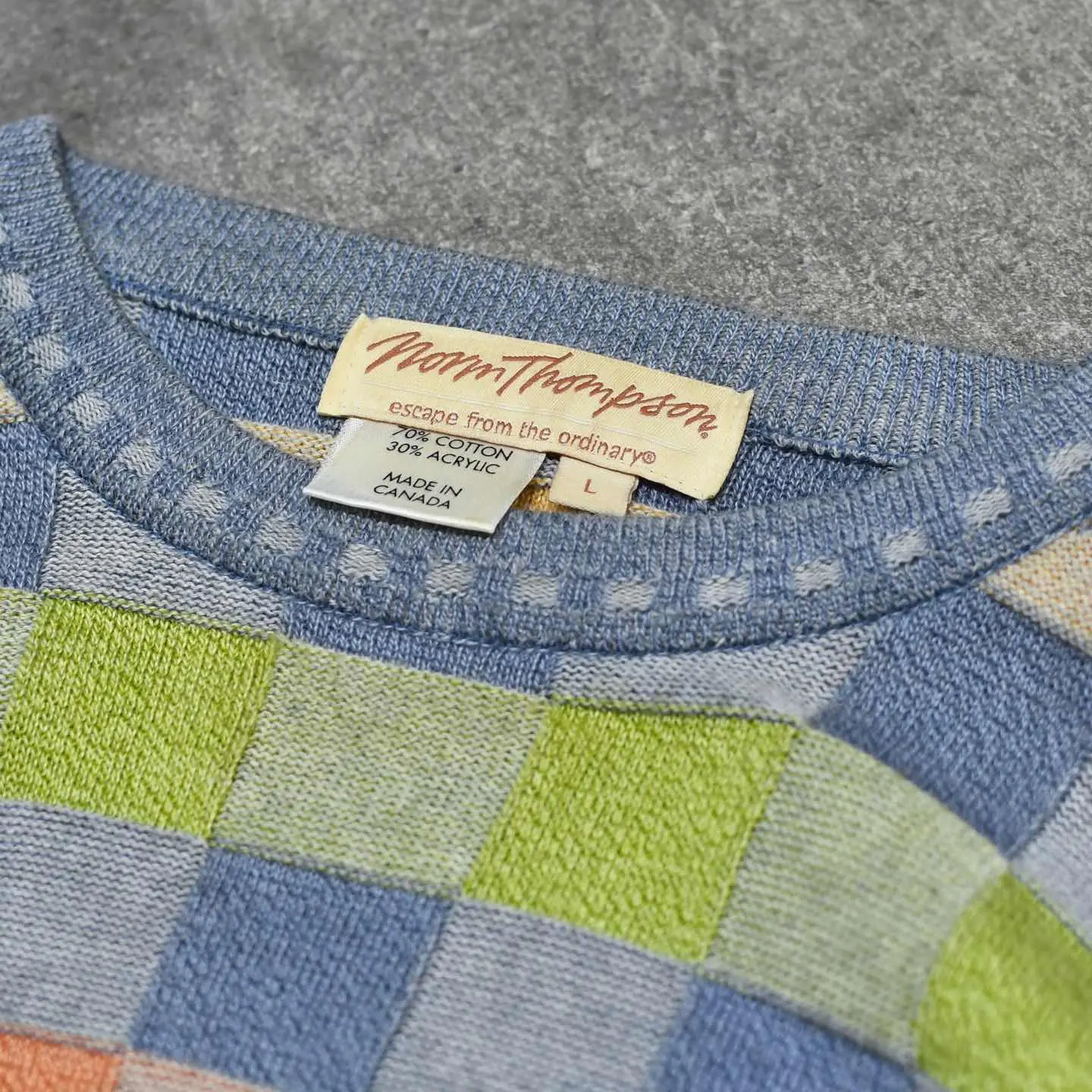 SIZE:L 着丈74cm 肩幅58cm 身幅70cm 袖丈74cm fabric/cotton・acrylic made in Canada 着用画像 177cm/64kg 1946年、アメリカオレゴン州発の 老舗カジュアルウェアブランド”Norm Thompson” 元々は創業者が旅をし、世界中の珍しい衣類や 食材などを販売していたようです。 パネルで切り替えられたカラフルな色使い、 しっとりと柔らかいニット生地、そんな見た目と 質感に惹かれた1着です。 そういえば90's頃のアイテムで、アメリカの ブランドでありながらカナダ製の個体があるのは、 関税が比較的安く、かつ国内生産と変わらない クオリティを維持できたからだそうです。 あとはカナダ製という響きが、 ブランドイメージにも合うブランドが多く、 カナダが選ばれていたようです。 ※撮影状況により、実物と多少色が異なる場合が ございます。 ※古着を取り扱っているため、気づかない汚れや ほつれ等がある場合がございます。 予めご了承ください。 ※サイズは着用感で選んでおり、 表記サイズではございません。 表記サイズは説明欄の最初に記載しております。 古着 オーバーサイズ old vintage ヴィンテージ used 80's 90's アメリカ古着 ユーロ古着 POLO RALPH LAUREN Eddie Bauer OLD GAP LANDS' END ランズエンド LLBean エルエルビーン オールドギャップ エディーバウアー ラルフローレン ブルックスブラザーズ Brooks Brothers 水色 ライトブルー ニット セーター などがお好きな方 #vintage #オーバーサイズ #old #used #90s #80s #古着 #ヴィンテージ #アメリカ古着 #ユーロ古着 #LLBean #エルエルビーン #EddieBauer #エディーバウアー #oldgap #オールドギャップ #LANDSEND #ランズエンド #NAUTICA #ノーティカ #ラルフローレン #POLORALPHLAUREN #ブルックスブラザーズ #BrooksBrothers #コットンニット #アクリルニット #デザインニット #ニット #セーター