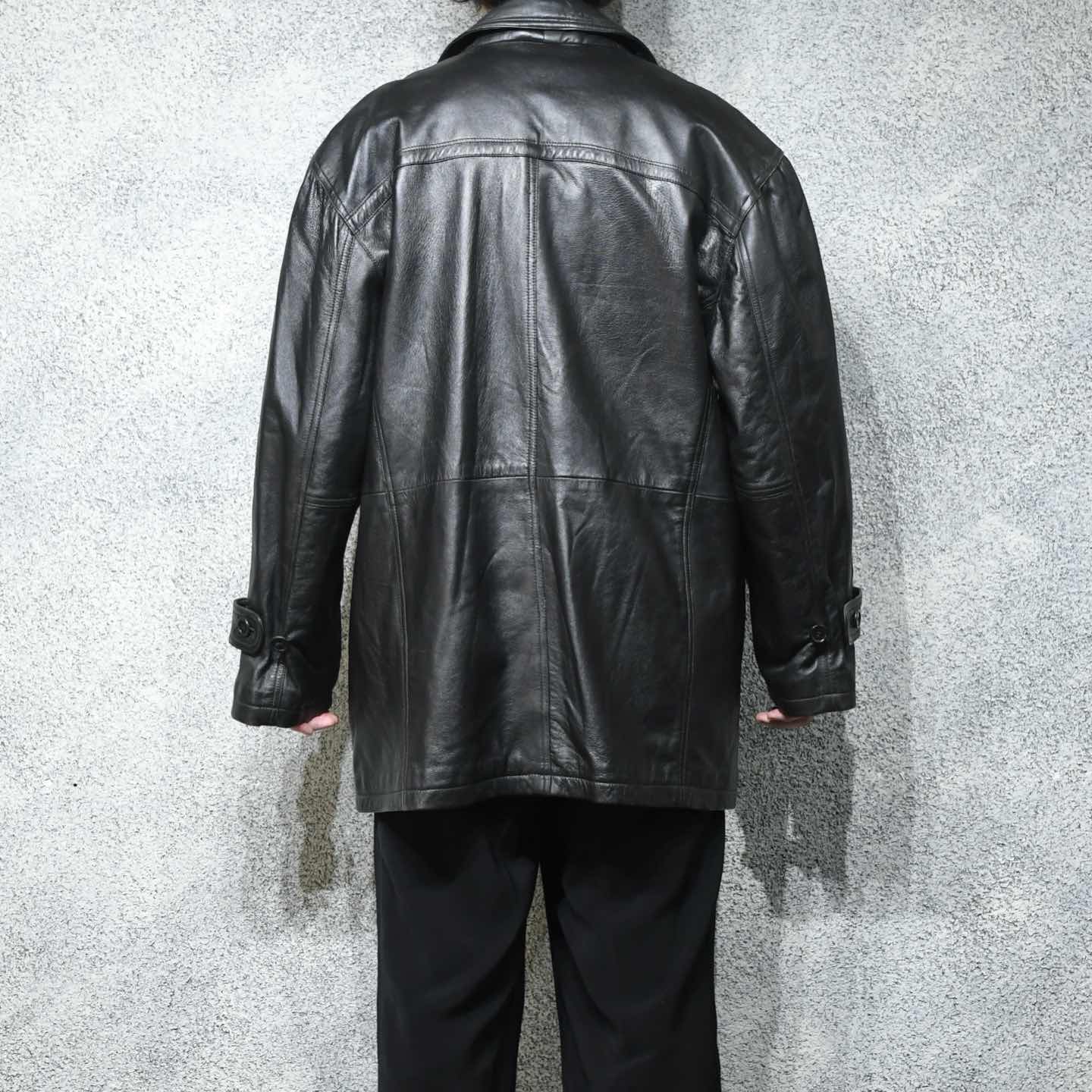 古着 レザーコート ハーフコート ダブル コート レザージャケット ブラック
