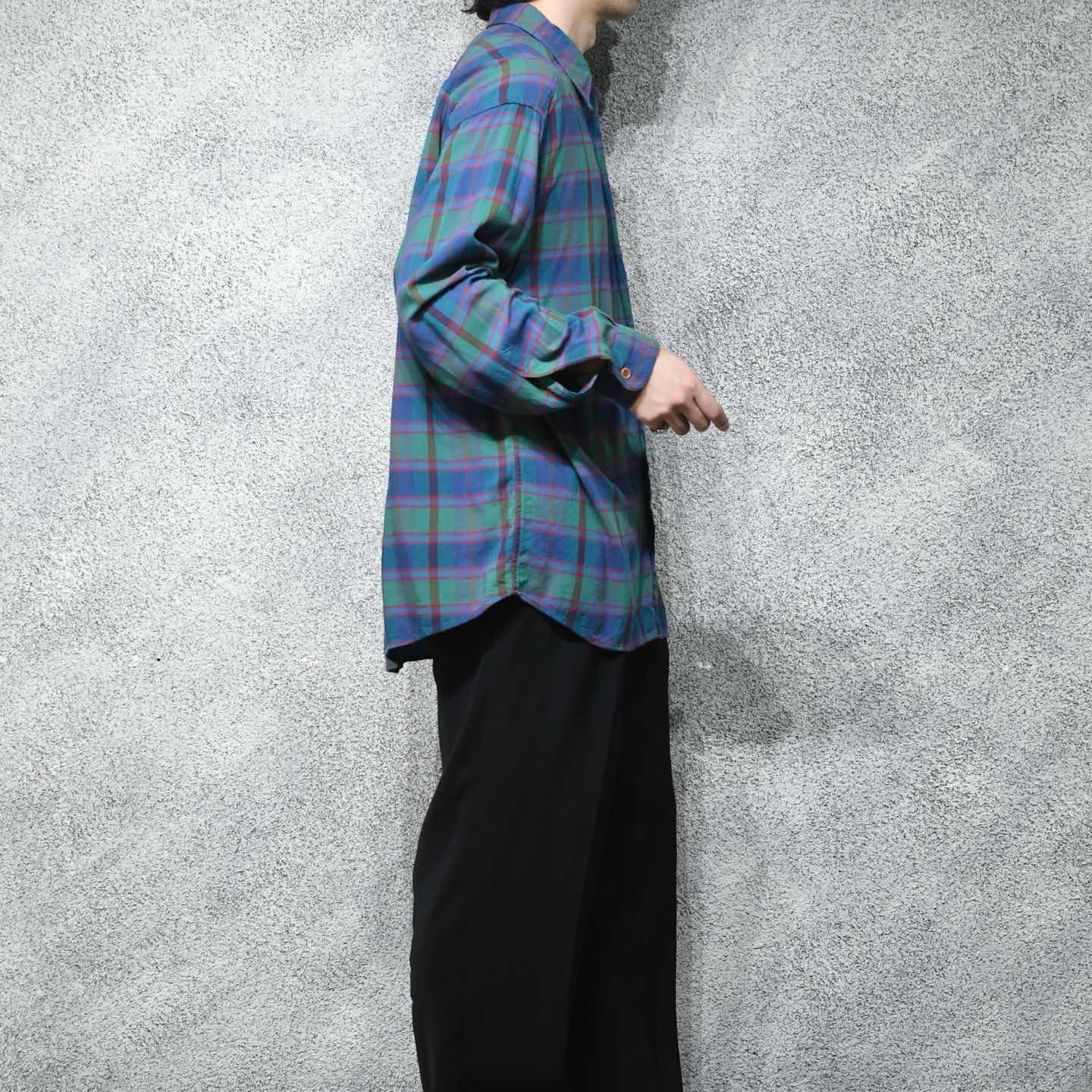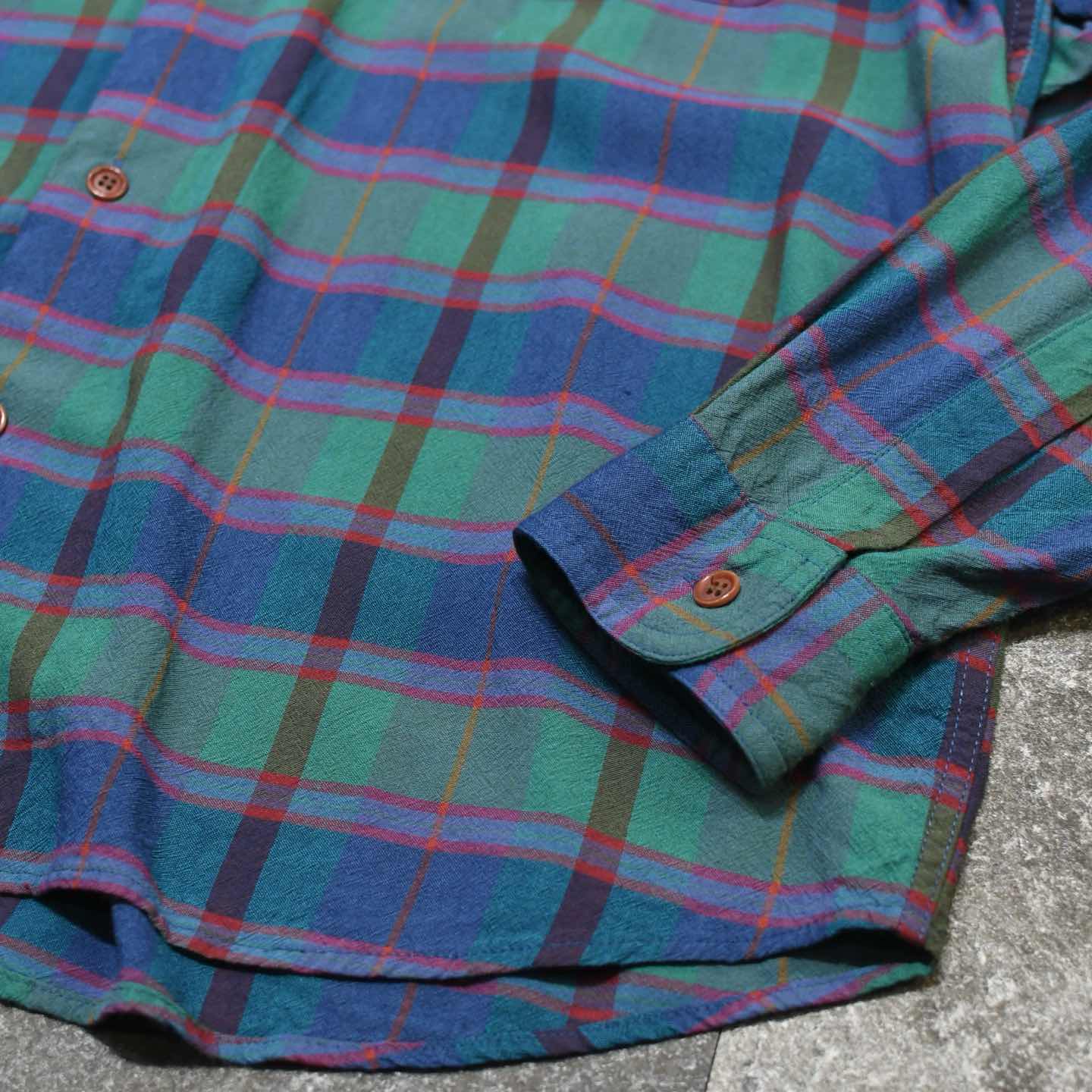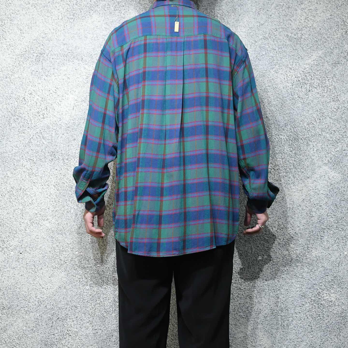 SIZE:L 着丈82cm 肩幅59cm 身幅66cm 袖丈62cm fabric/rayon 着用画像 177cm/64kg コットン素材でチェックシャツ。 "どうもカジュアル過ぎて、スタイリングに 落とし込みにくい" きれい目なスタイリングが好きな方にとっては、 そう感じることもあるのではないでしょうか。 どこか毒々しさも感じる独特な色使いに レーヨン生地、落ち感となびくシルエットを 兼ね備えたチェックシャツであればどうでしょう。 生地感やシルエットから生まれる上品さから、 スラックス合わせがしっくりくる個体で、 カジュアルになり過ぎず、キレイにチェック柄を 落とし込める逸品です。 Claiborneの中でも、少し癖のある好きな部類。 おすすめです。 ※撮影状況により、実物と多少色が異なる場合が ございます。 ※古着を取り扱っているため、気づかない汚れや ほつれ等がある場合がございます。 予めご了承ください。 ※サイズは着用感で選んでおり、 表記サイズではございません。 表記サイズは説明欄の最初に記載しております。 古着 オーバーサイズ old vintage ヴィンテージ used 80's 90's アメリカ古着 ユーロ古着 POLO RALPH LAUREN Eddie Bauer OLD GAP LANDS' END ランズエンド LLBean エルエルビーン オールドギャップ エディーバウアー ラルフローレン ブルックスブラザーズ Brooks Brothers 緑 グリーン パープル 紫 などがお好きな方 #vintage #オーバーサイズ #old #used #90s #80s #古着 #ヴィンテージ #アメリカ古着 #ユーロ古着 #LLBean #エルエルビーン #EddieBauer #エディーバウアー #oldgap #オールドギャップ #LANDSEND #ランズエンド #NAUTICA #ノーティカ #ラルフローレン #POLORALPHLAUREN #ブルックスブラザーズ #BrooksBrothers #チェックシャツ #Claiborne #レーヨンシャツ #長袖シャツ #シャツ
