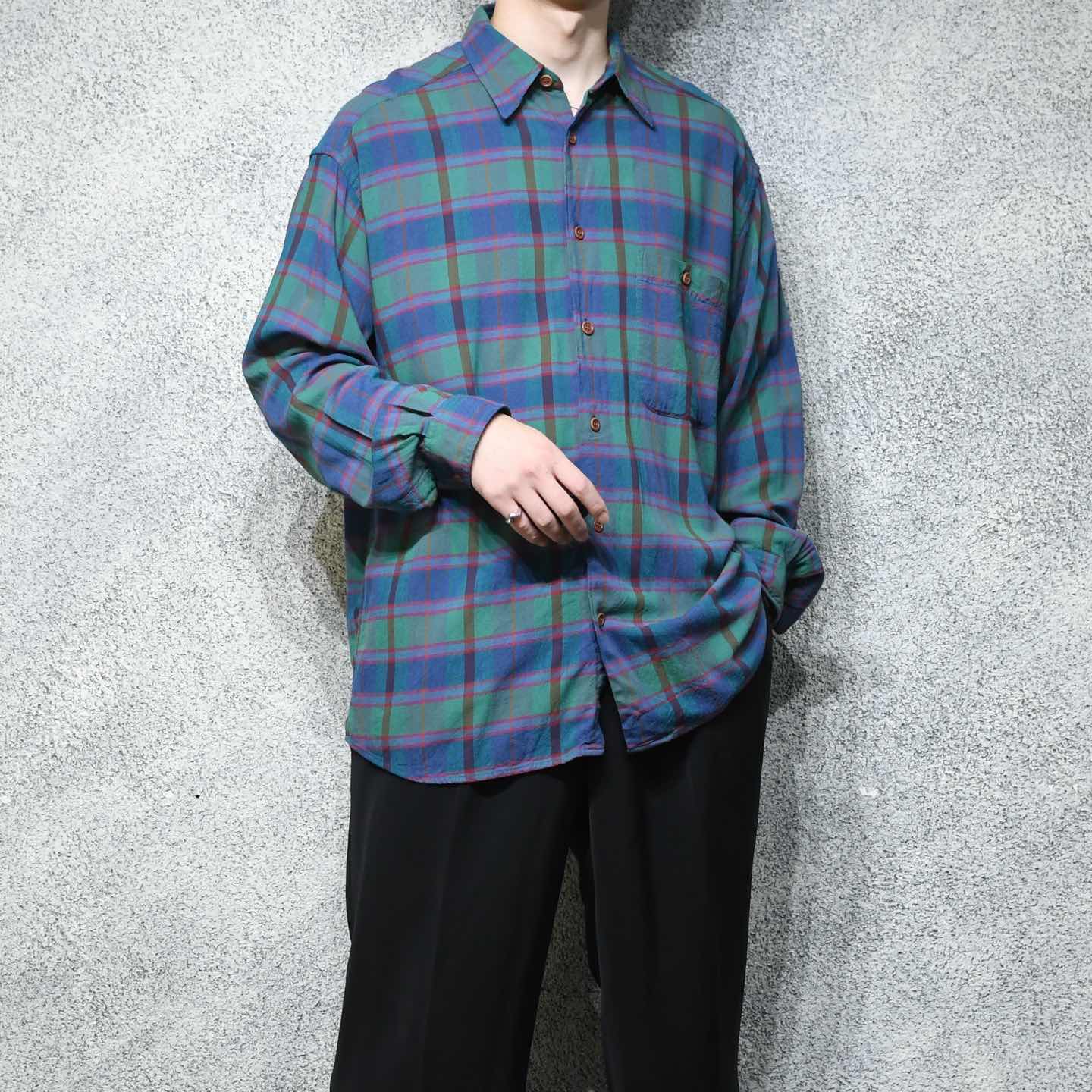 古着 Claiborne チェックシャツ レーヨンシャツ 長袖シャツ シャツ