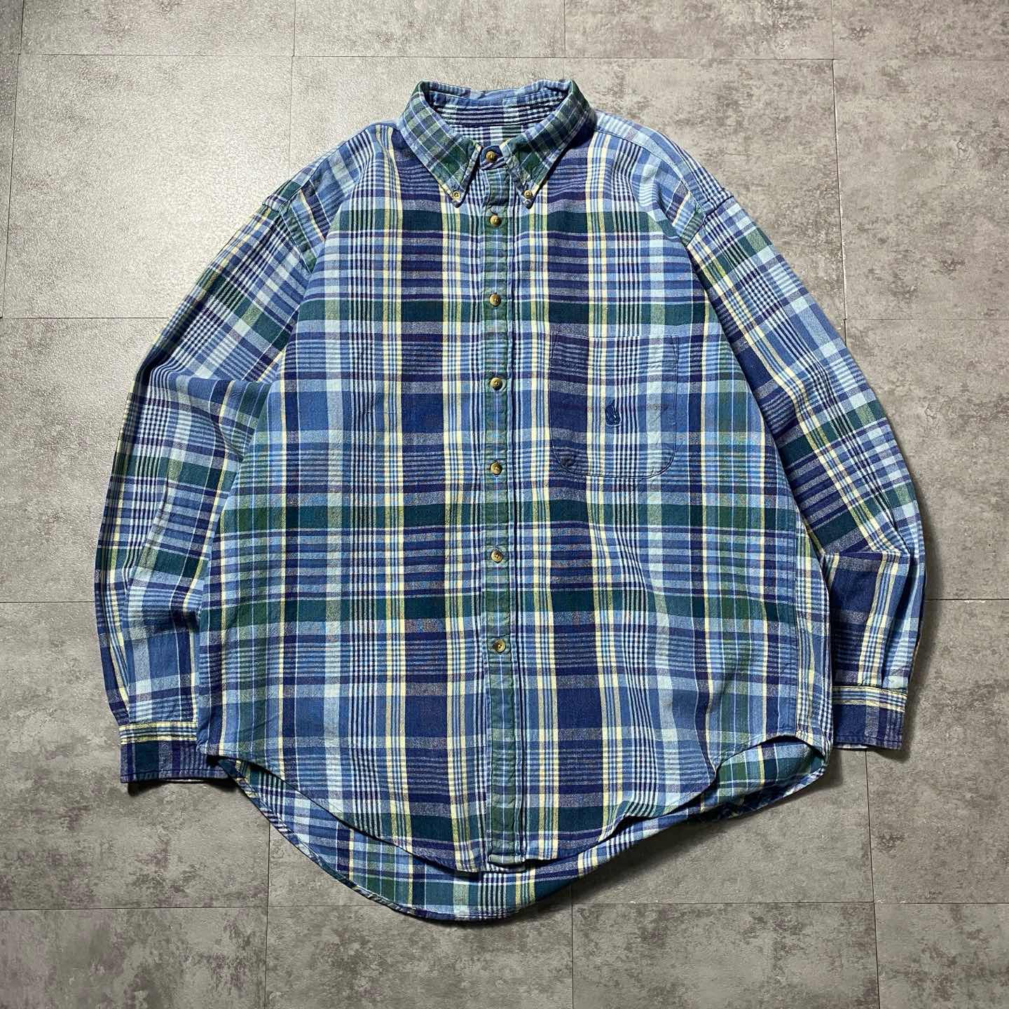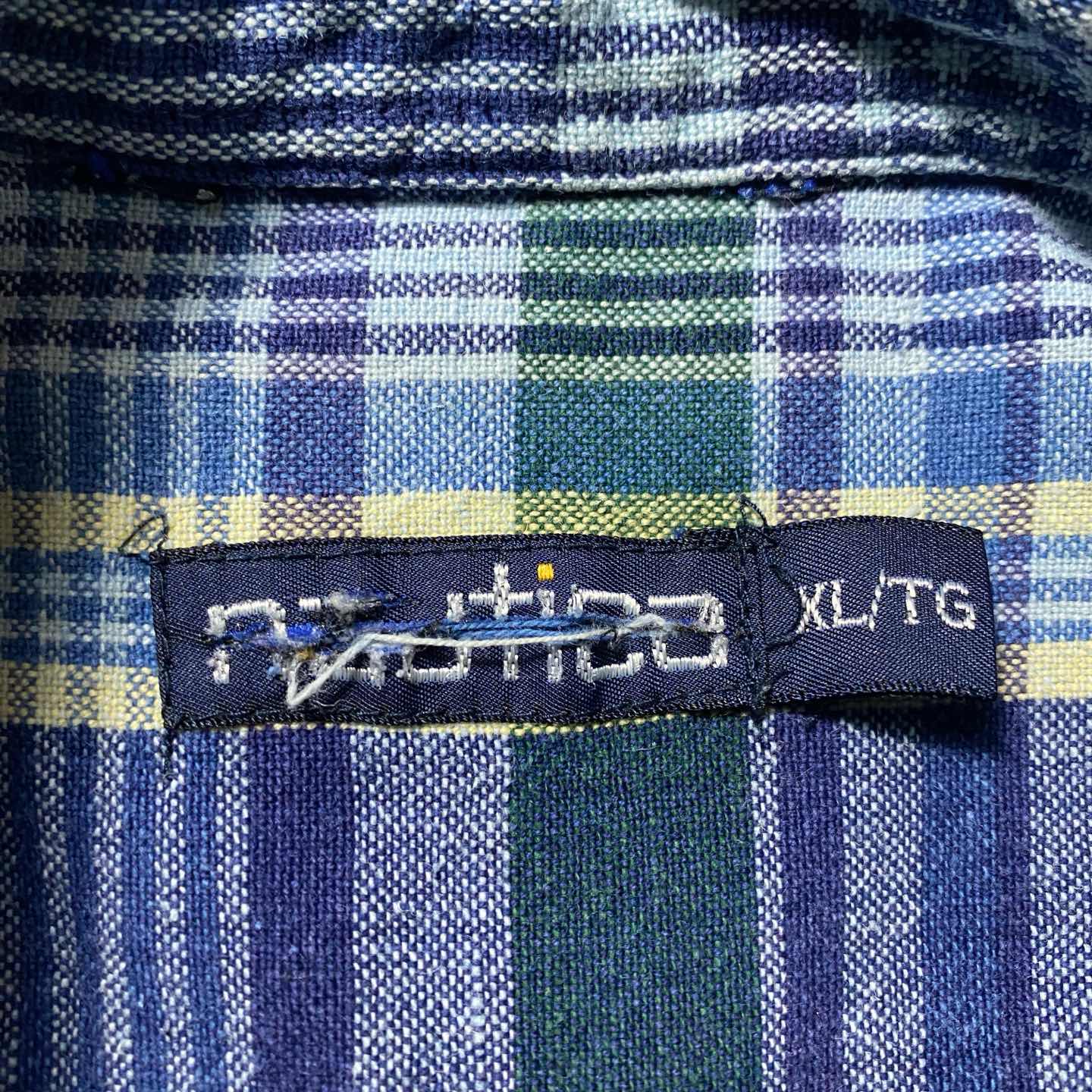 【XL】90's nautica ノーティカ 刺繍ロゴ チェック ヘビーネル フランネルシャツ