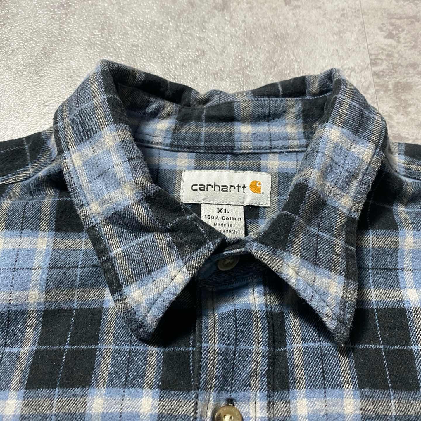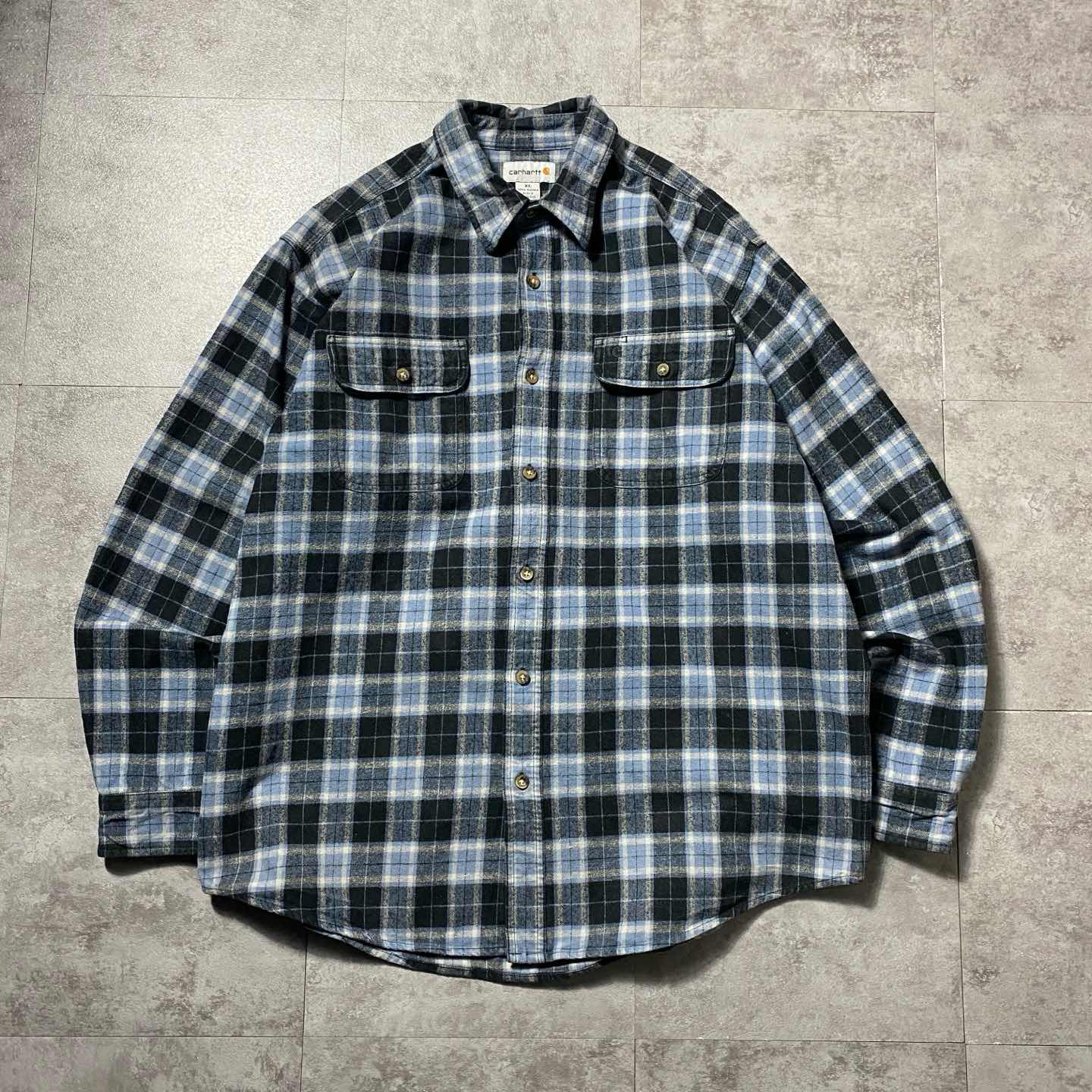 【XL】carharttカーハート ダブルポケット 刺繍ロゴ チェック ヘビーネル フランネルシャツ