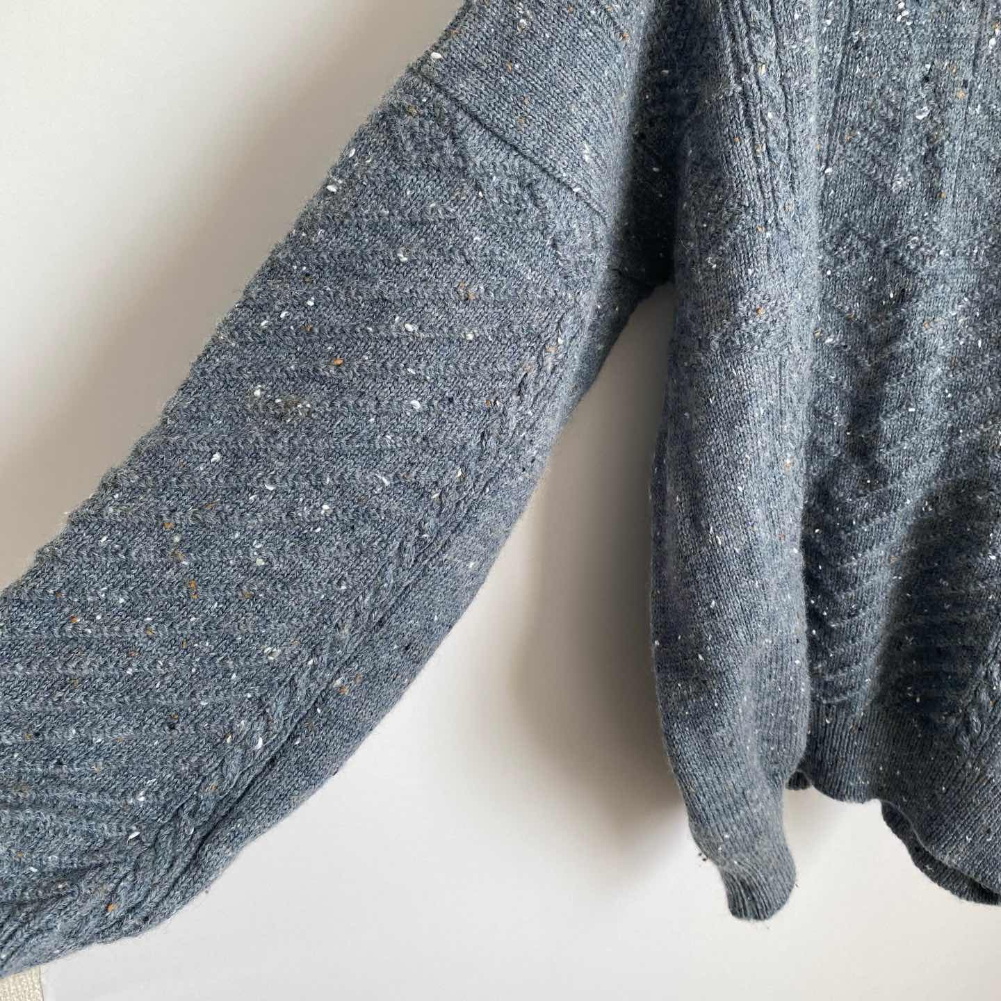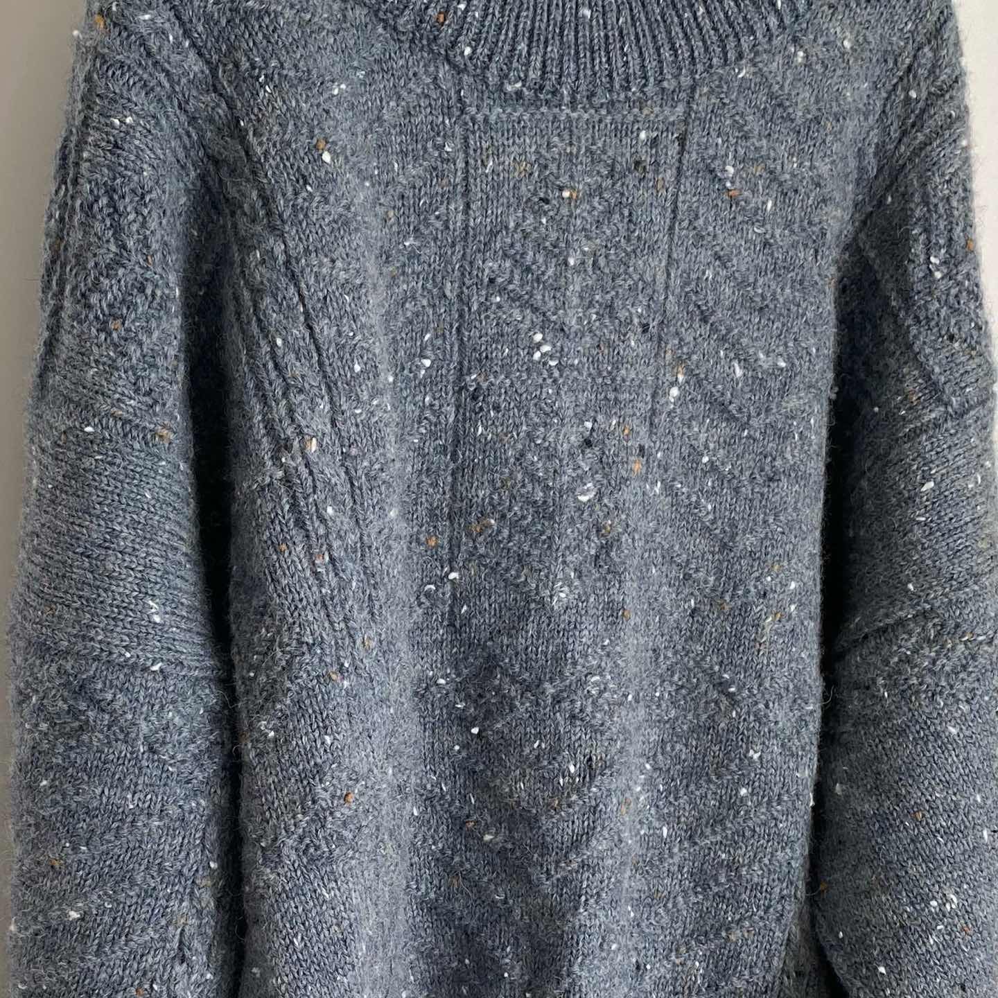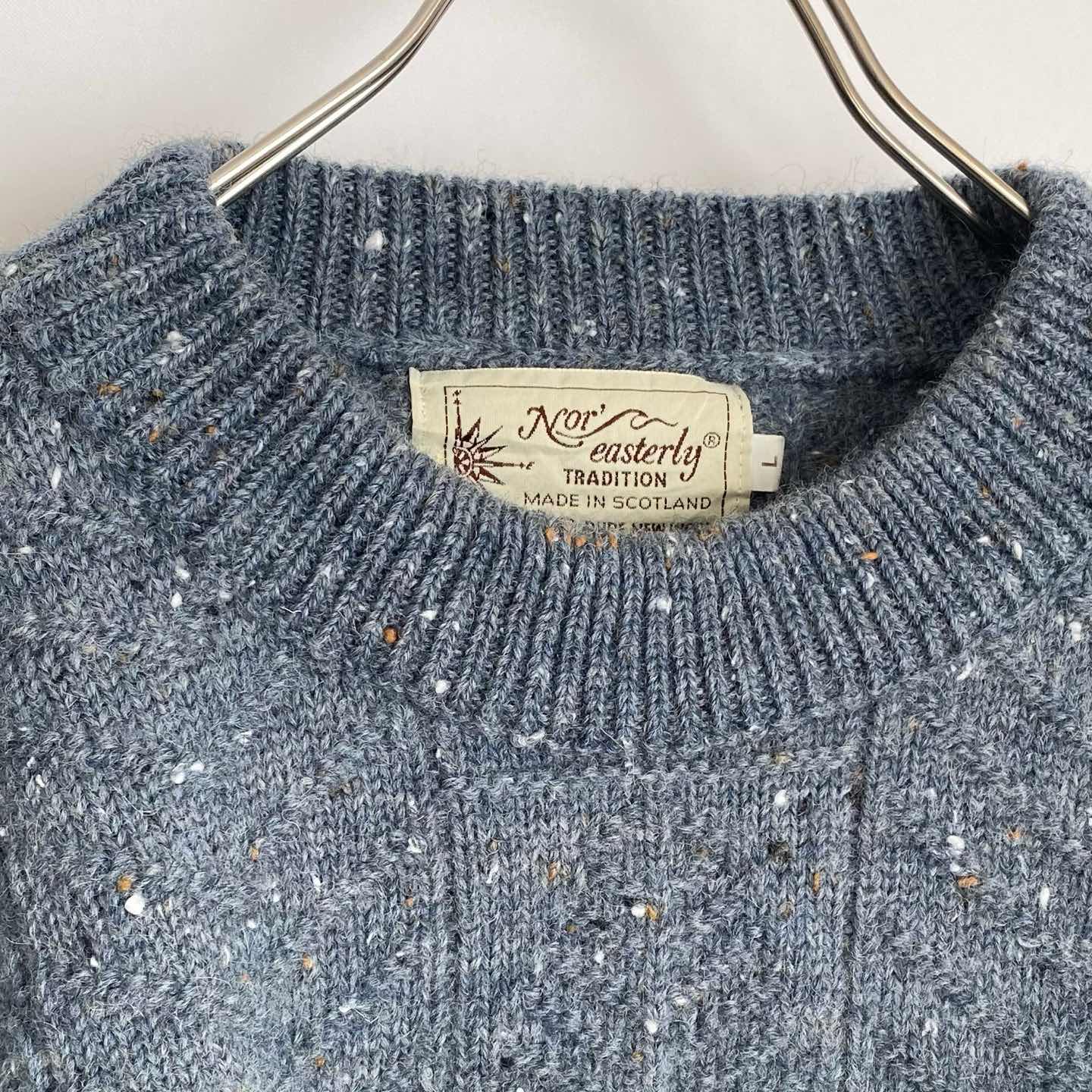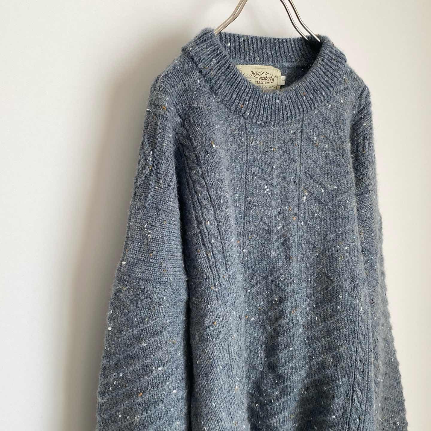 1929年にスコットランドで創業された「NOR'EASTERLY」の古着ニットセーターです。元々、漁師たちの伝統的なニットウェアを展開していたブランドです。ネップの入った綺麗なブルー系の色合いが魅力的。暖かみのある厚手のウール100%のニット素材でゆったりとしたシルエットです。カジュアルからシックなスタイルまで幅広く合わせていただけます。 □Size L(着用感レディースXL〜XXL程度) 着丈73㎝ 身幅60㎝ ゆき丈98㎝ (平置き) □ウール100% □Brand NOR'EASTERLY □Made in SCOTLAND □Condition【B】 使用感の少ない良好な古着コンディションです。中古品であることをご理解のうえお買い求めください。ご購入前に必ずショッピングガイドのご確認をお願いいたします。 【S】未使用 【A】未使用に近い 【B】やや使用感あり 【C】使用感あり Item No.3482