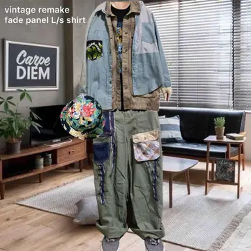 70s vintage remake fade panel L/s shirt ドッキング L