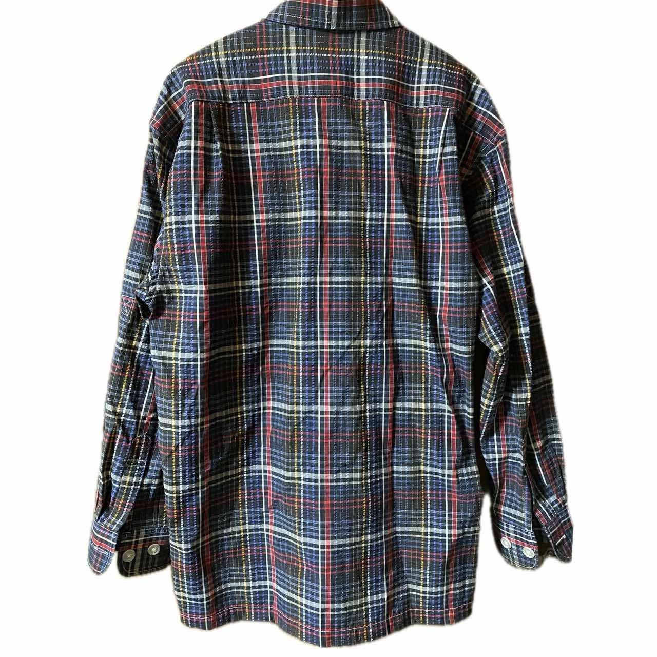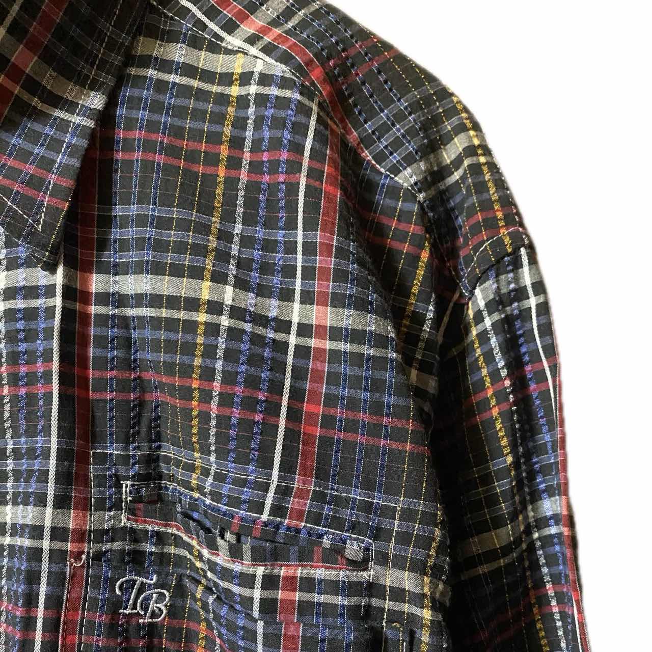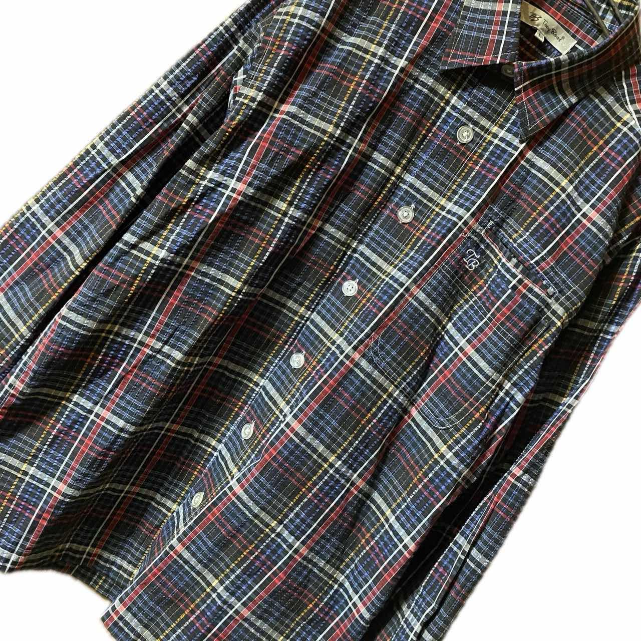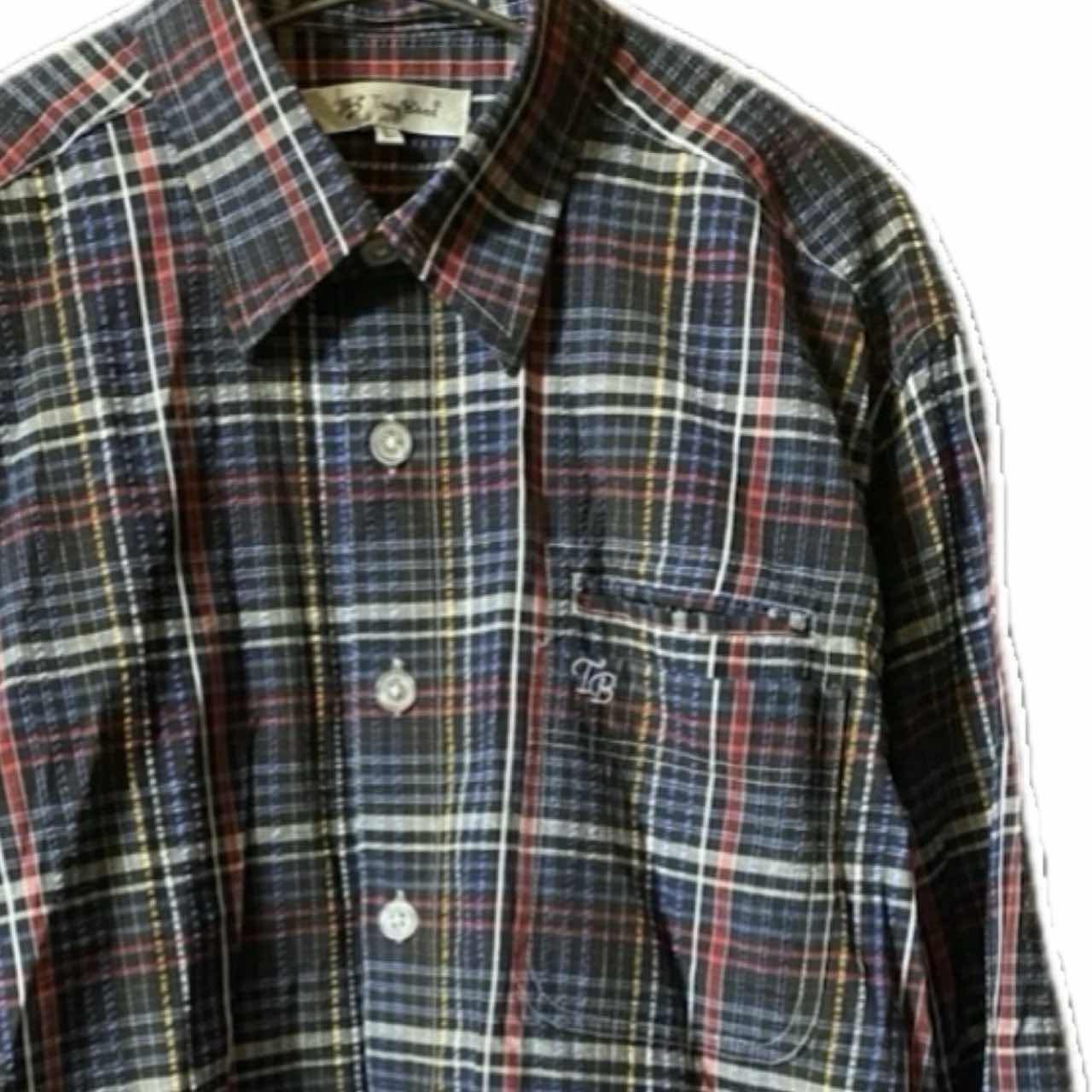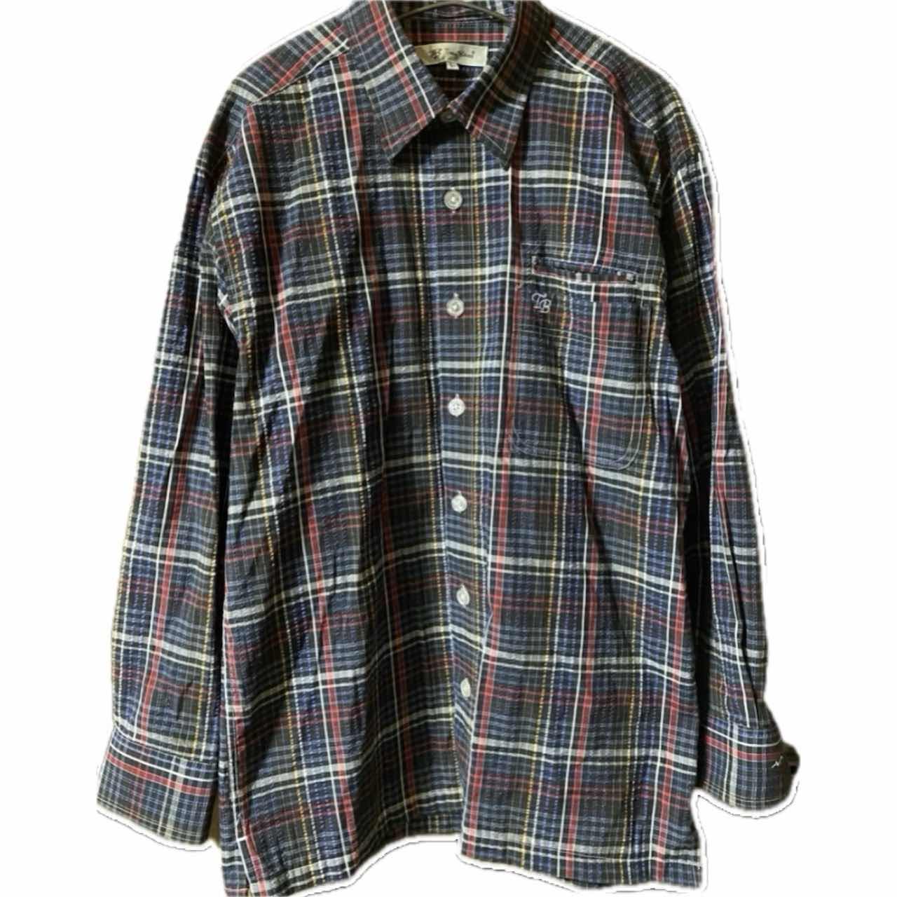 90s 新品同様 TB tnoybnos ®️特許 3Dストライプチェックシャツ 新品同様tnoybnos のアメカジ好きには、堪らない、チェックシャツです。 ®️アッパータグ90svintage ですね、 商標の事!! ちからある、メーカーじゃないととりません、 65/35って、どんだけすごいの?って1着なのと、70年代意識した、リバイバルシルエットがクール過ぎる!! さらにオルタネートとも言われますが、それを サイケストライプ3Dにして、耐久性あげ、 ストライプだと、つまんないと思ったのかな?? チェックに仕上げてます、 ある意味サイケデリックアートともいえます!! 個性的なのに、行き過ぎてないデザインと大人っぽいシルエットは確実にあなたをおしゃれにします。 コーディネートは参考程度でよろしいです ▷color◁ 写真通り ※ブラウザで異なる場合ありますがかなり実物には、近づけてます、 ▷size◁ 平置き片面採寸【㎝表記】 表記size L表記 着丈/75 身幅/55 肩幅/53DS 袖丈 /63↓ DSは袖はハンガー採寸 ※多少の誤差は理解下さい 170/Mジャスト体型の私が着て、✔️参考に ジャスト オーバーサイズ✔︎ ビックサイズ 【素材】 cotton65 ポリ35 【状態】 新品同様 検品、洗濯、検品で、3回チェックして発送しますので、ご安心して、お買い求め下さい!!