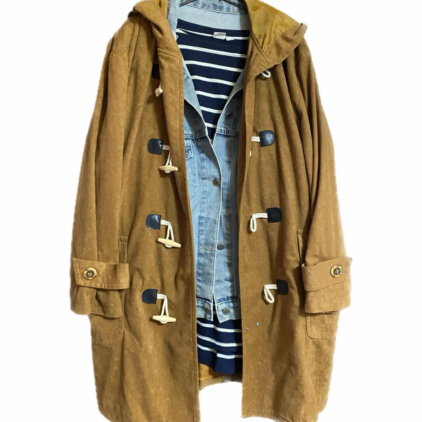 70-80s 超限定 Brandnew エコヌバックダッフルジャケット F ダッフルコートだが?ミドル丈が、お洒落過ぎる!! しかも、オーバーサイズだから、着画チェック!!インナーGジャンに、ボーダーTかさねチェックボトムで、EUコーデ!!勿論、 Tシャツでも、パーカーでもOK.エコヌバックだから真夏以外いけます^_^ •brand limitedvintage brandnewイベントの限定モデル、ビックタグ •data 70.80sの、イベントだったらしいから、vintage point エコヌバックだから、 重くない、洗える、お洒落かつ、希少価値高いし、大人っぽい、fudge風でよい、 ▷color◁ 美しいキャメルブラウン ※お使いのブラウザにより、色が異なって見える場合がございます ▷size◁ 平置き片面採寸【㎝表記】 表記size M表記ですが、XL80sのなんであります。実寸参考に、 着丈89 身幅64 肩幅60DS 袖丈64DSの為ハンガー掛け採寸 ※多少の誤差はご容赦下さい 【着用画像データ】 身長170㎝ 普通体型 Mサイズジャストくらいの体型 ▷material◁ ポリスゥェード表記 ヌバック処理、洗濯ダメ表記ナイーブタグありますが、これ、70-80の特徴、洗えるのに高額すぎるから、クレームを、回避の為のタグといわれてます、洗えました笑、 ▷condition◁ 良品 綺麗です、しかも、洗えます