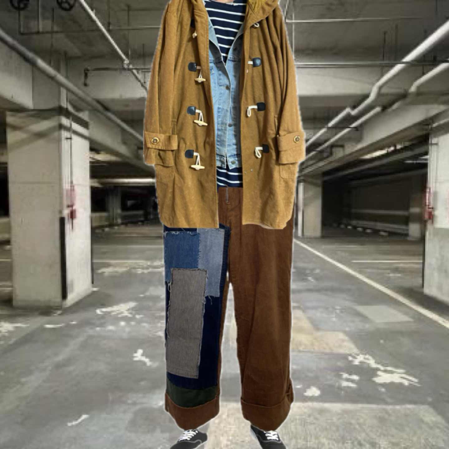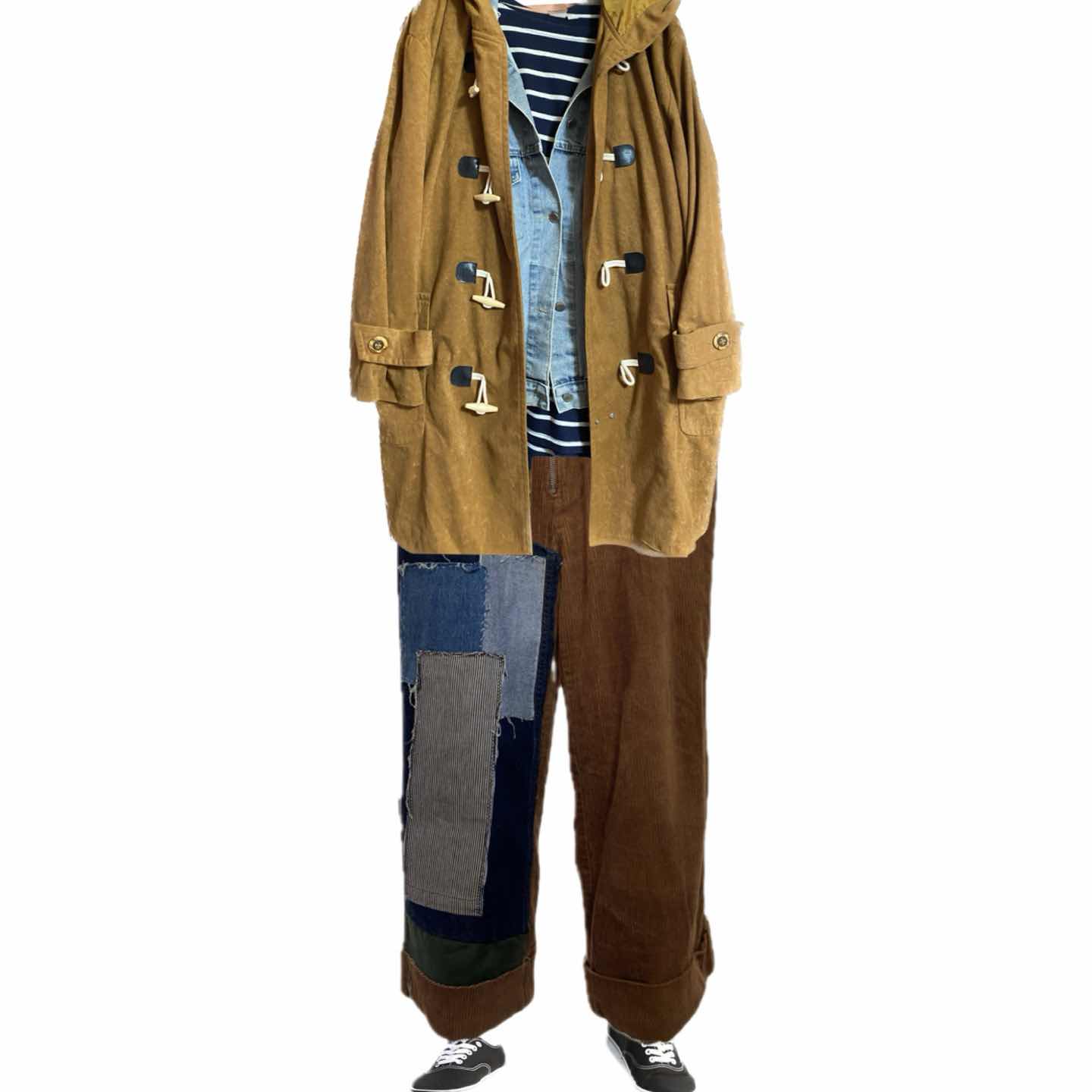 00s BAYFAR remake W81 セレブブランド デニムカスタム BAYFAR そのクオリティの高さと、アクティブ感と、デザイン感から、 海外セレブが、愛用するブランド、 圧倒的すぎる。丁寧な作りは、男女関係なく、愛されるブランドで 服を知り尽くした、海外セレブが、愛用するって言う事は、その作りは圧倒的となります。 それをもっとかっこよくしたくて、数本デニムをバラバラにしてパッチアートに仕上げました、 今回のコーディネーターダッフルコート合わせてアメカジトラッドにしました 【カラー】 ブラウン 【サイズ】M-L モデル170センチ普通体型 ボトム30インチがジャスト位の体型の私がタックインできます、 w81 股上30 股下60 腿渡28 裾渡28 程よいストレート 【condition】 新品同様使ったのと、手間かけたんで、最強 【material】 コーデュロイ