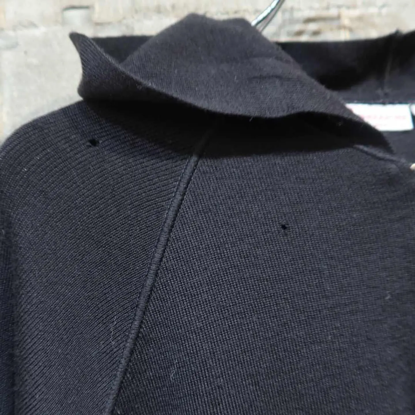 【サイズ】 着丈 : 71 裄丈 : 85 身幅 : 61 【素材】 記載無し 【コンディション】 小さな穴あきあり 写真をご参照ください #古着 #ニット #パーカー #黒 #イタリア製