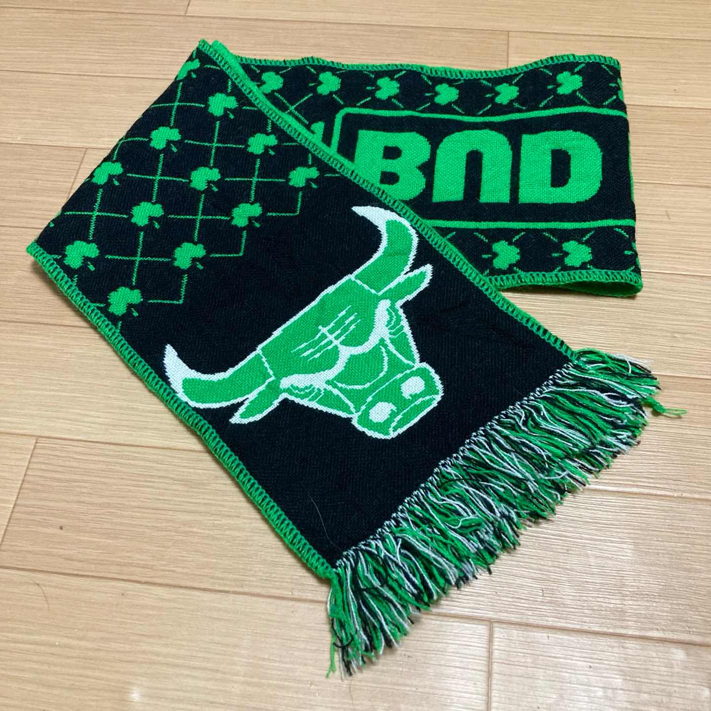 Bud Light × Chicago Bulls vintage football scarf in green with argyle-style pattern and Bulls logo. Nice crossover piece for NBA fans and beer lovers. • Team: Chicago Bulls • Brand/collab: Bud Light × Bulls • Colour: green × black × white (argyle-style pattern with logo) • Size (approx): length 78cm (half, incl. fringe) / width 20cm • Condition: good vintage condition – light wear from use, but no obvious big stains or holes. Carefully packed and shipped. Bundle discount available when you buy 2 or more items – just send a message. 【日本語説明】 Bud Light × Chicago Bulls コラボデザインのビンテージサッカーマフラーです。 グリーンをベースにしたアーガイル調パターン+Bullsロゴで、 NBAファンやビール好きの方にも刺さる1本です。 ・チーム:Chicago Bulls ・ブランド/コラボ:Bud Light × Bulls ・カラー:グリーン×ブラック×ホワイト(アーガイル調パターン+ロゴ) ・サイズ(約):半折78cm(フリンジ込み)/幅20cm ・状態:ヴィンテージとしての着用感はありますが、 大きな汚れや穴などのダメージは見当たりません。 古着にご理解のある方におすすめです。 丁寧に梱包して発送します。 2点以上のまとめ買いでは同梱割引も対応可能ですので、購入前にメッセージでご相談ください。 #vintage #vintagescarf #footballscarf #soccerscarf #ChicagoBulls #BudLight #NBA #ヴィンテージ #ビンテージ