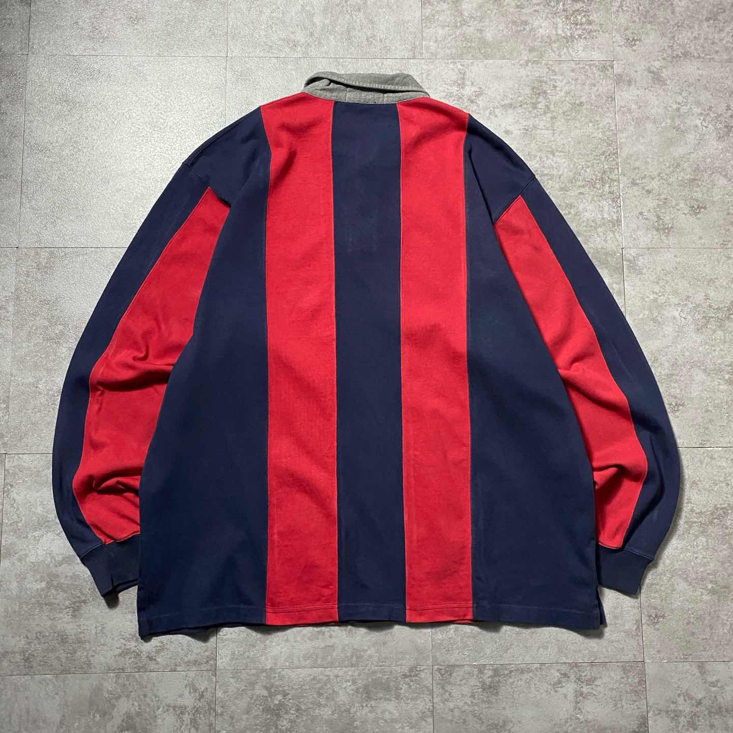 【XL】ポロバイラルフローレン 刺繍ロゴ ストライプ 襟フェルト ラガーシャツ