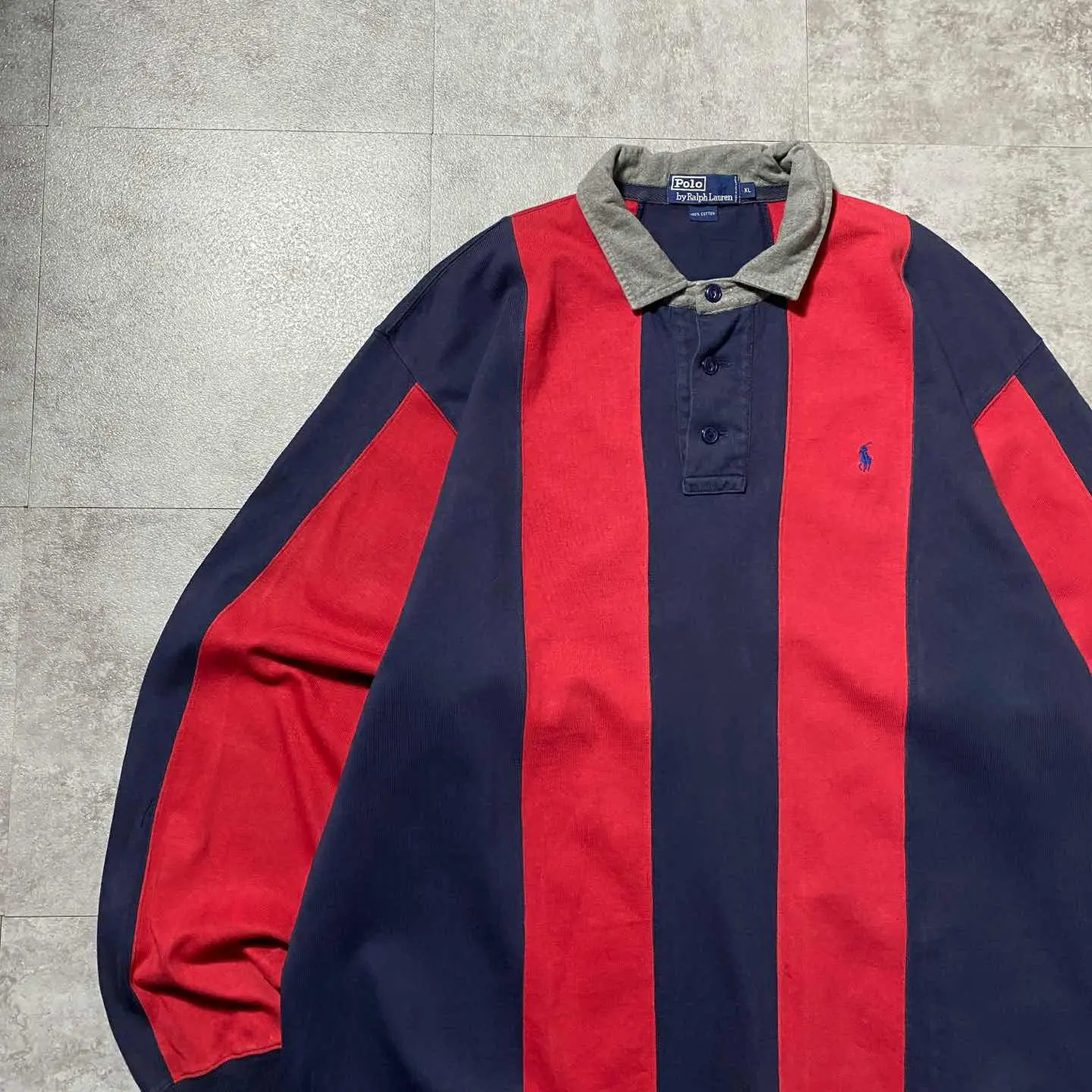 90s ポロバイラルフローレン 刺繍ワンポイント ネイビー ラガーシャツ