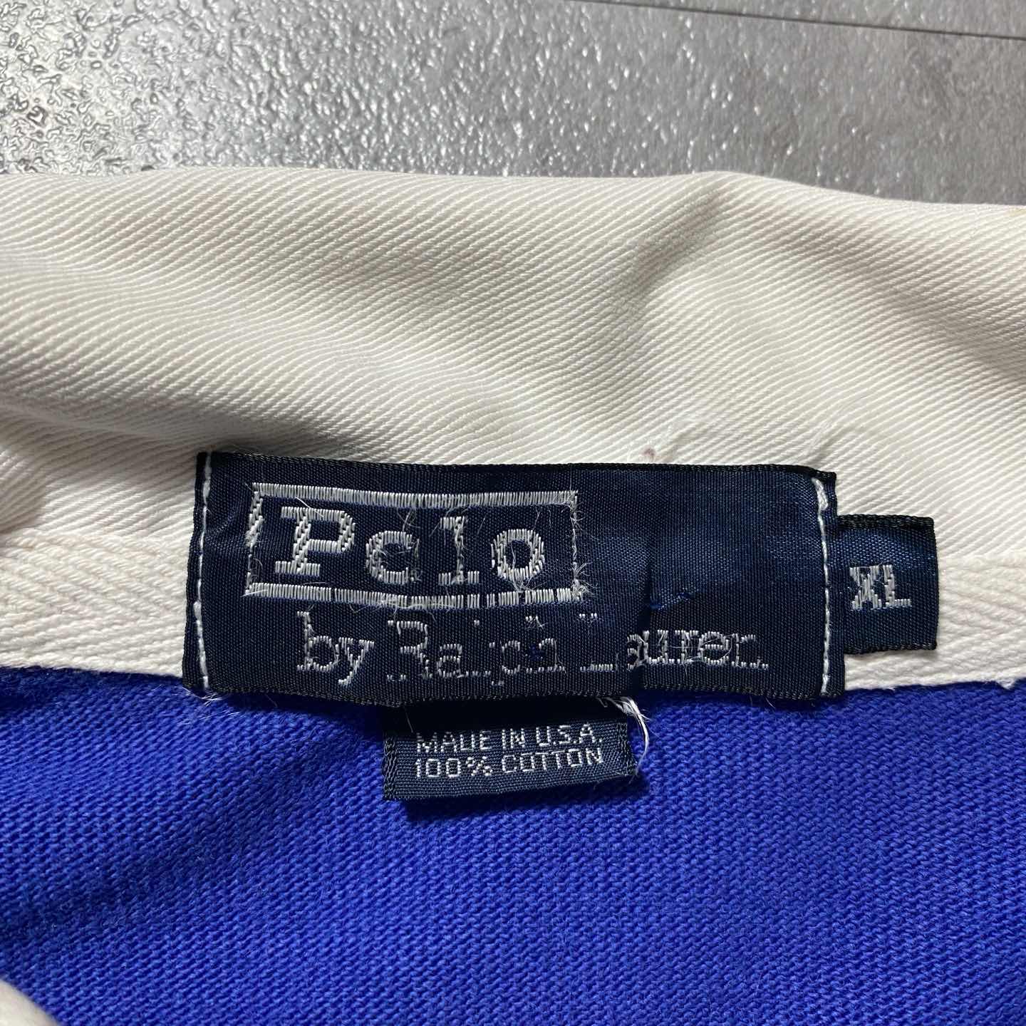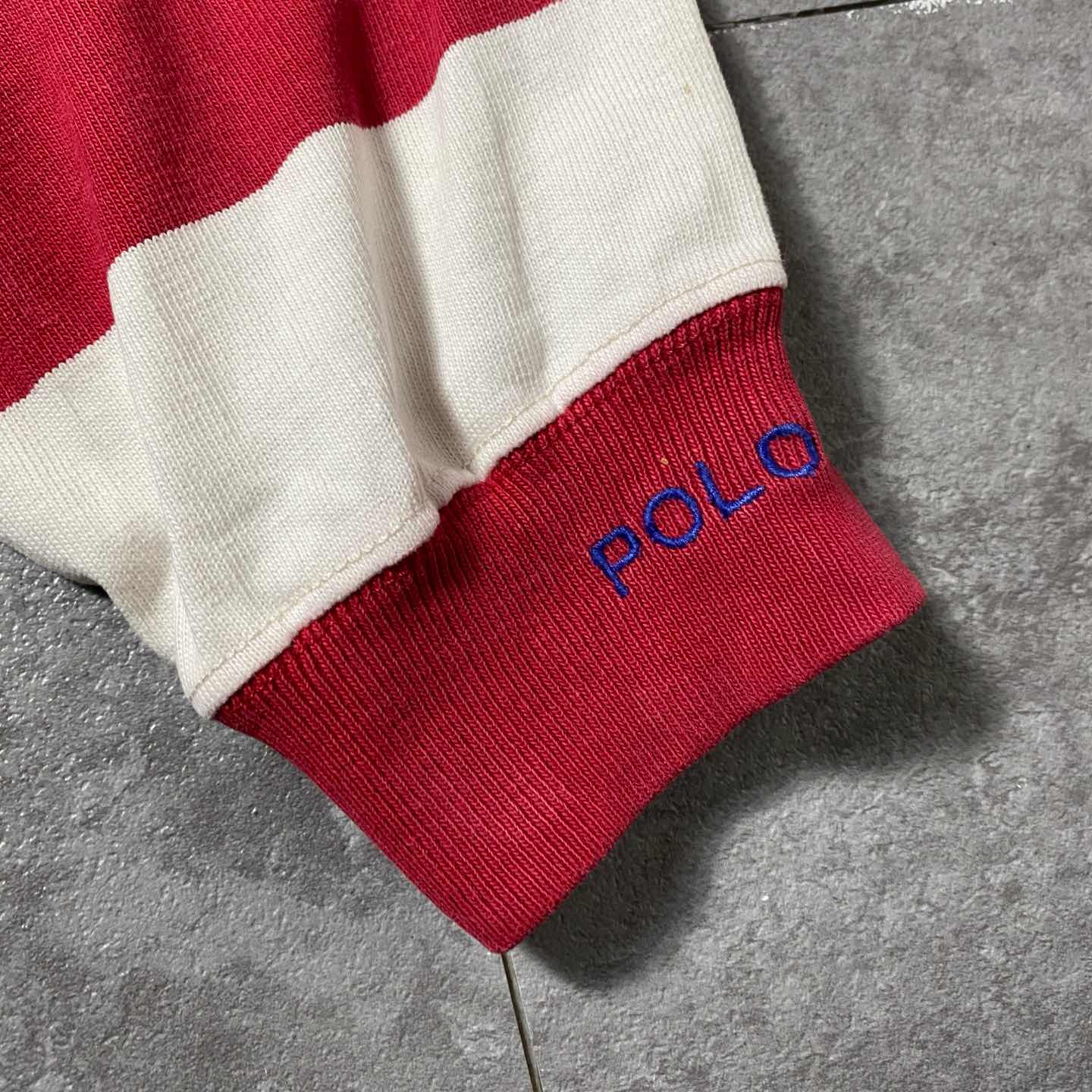 【XL】ポロバイラルフローレン 刺繍ロゴ ストライプ 襟フェルト ラガーシャツ