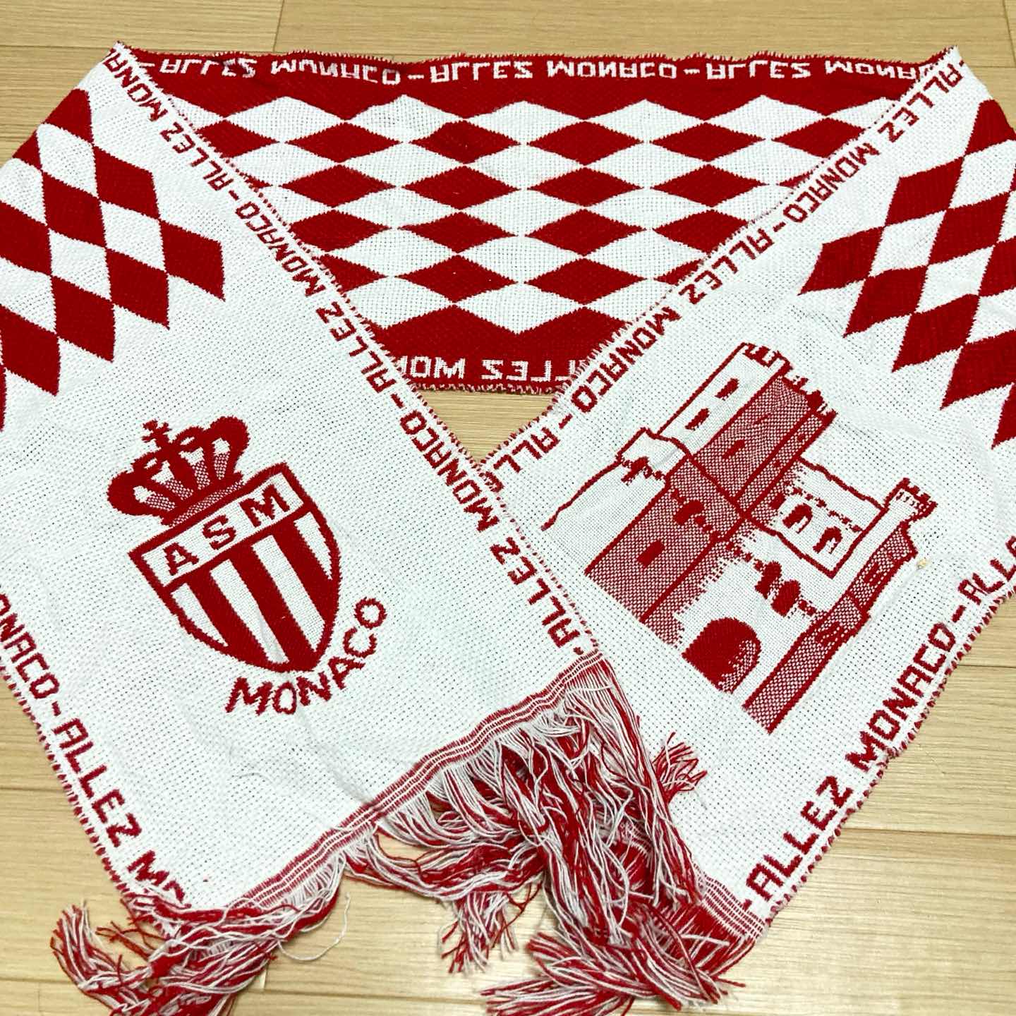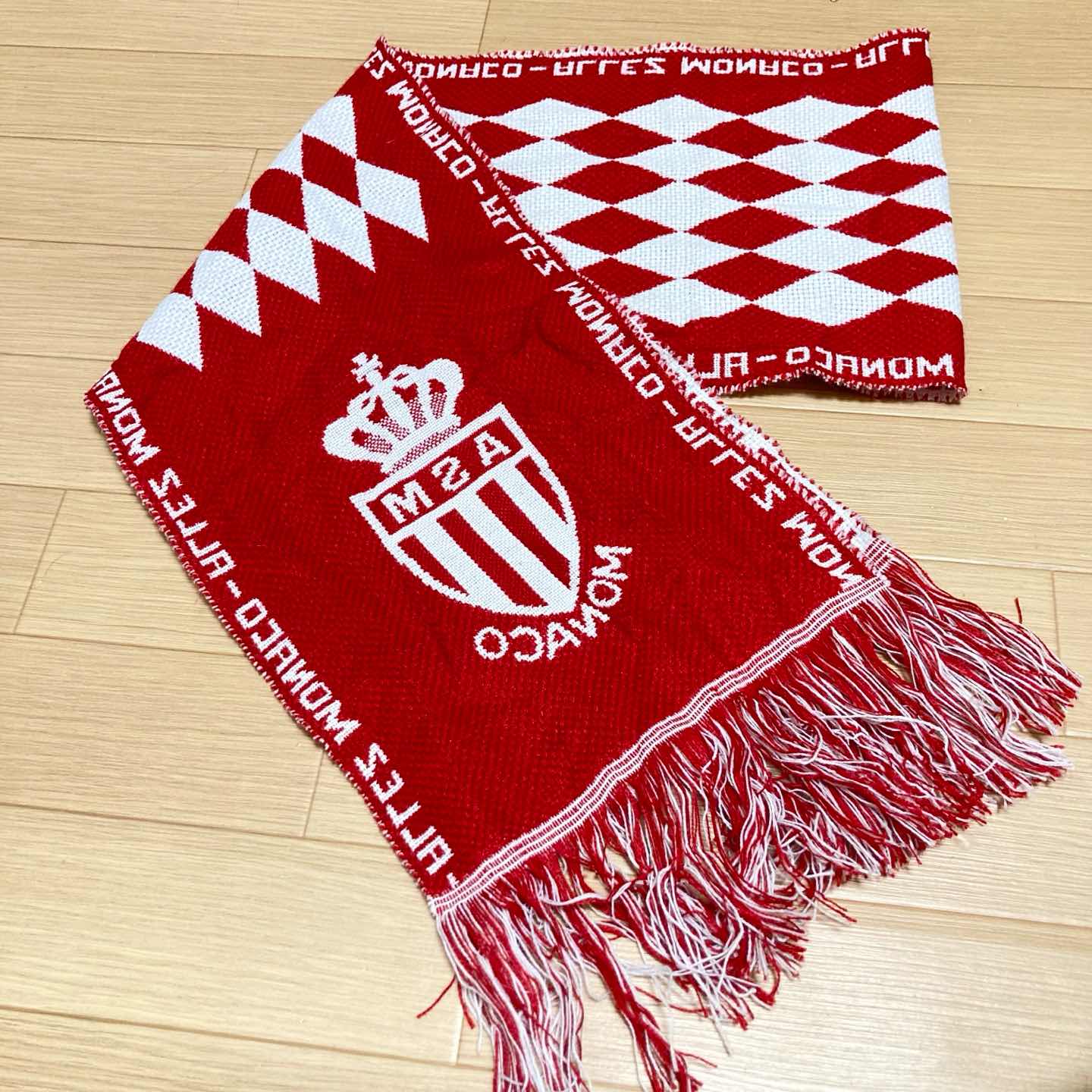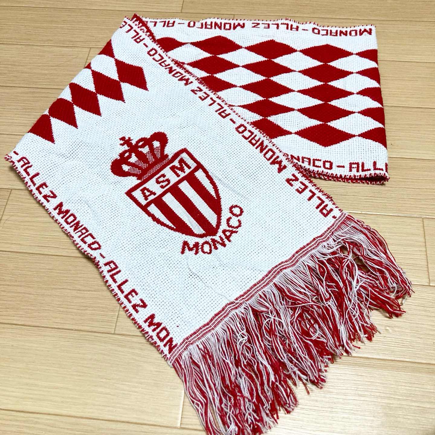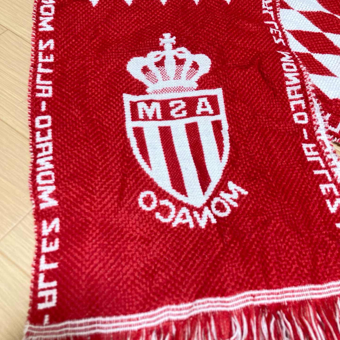 Vintage AS Monaco football supporter scarf in red and white with classic diamond pattern and club crest. Both sides have different designs, making it a very eye-catching piece for matches or everyday outfits. ✨ Details • Club: AS Monaco (Ligue 1, France) • Colour: red × white • Material: acrylic knit football scarf • Size (flat, excluding fringe): approx. 168 cm length × 24 cm width • Condition: very good vintage condition – minor fluff and a few loose fibres, but no noticeable stains or big holes. Great for Ligue 1 fans, football scarf collectors, or as a statement accessory in vintage streetwear outfits. Item will be packed carefully (waterproof + cushioning) for safe shipping. 【日本語説明】 フランス・リーグアン「AS MONACO(ASモナコ)」の 赤白ダイヤ柄サポーターマフラーです。両面でデザインが異なる映える一本です。 ・長さ 約168cm(フリンジ除く/平置き) ・幅 約24cm ・古着としては良好な状態で、大きな汚れや破れは見当たりません。 サッカー好きのコレクション用や、古着コーデのアクセントにおすすめです。 #asmonaco #footballscarf #soccerscarf #supporterscarf #ligue1 #ultras #terracewear #サッカーマフラー #ASモナコ #海外古着