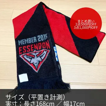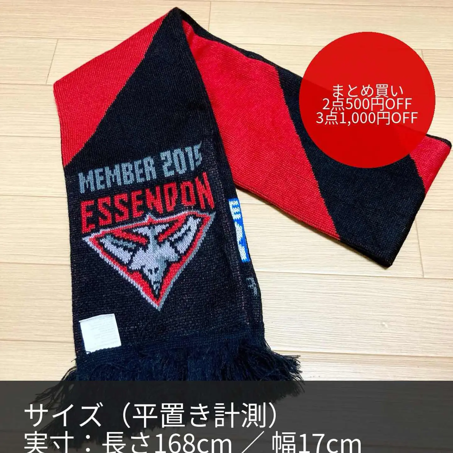 Essendon Bombers official AFL supporters scarf from around the 2015 membership season. Classic black and red team colours with logo. Great for stadium games or as a football casual outfit accent. ▪ Size (flat / folded) Length: 168 cm incl. fringes (84 cm folded) Width: 17 cm ▪ Material Acrylic knit (typical football scarf feel) ▪ Condition Good used condition. No major stains or holes. Some light fluff and signs of wear as expected from a vintage scarf, but still very wearable. Please note this is a used item – not new. ▪ Shipping Ships from Japan. Item will be folded, put in a plastic sleeve and sent in a protective mailer. Japanese note: オーストラリアAFL「エッセンドン」サポーターマフラーです。古着慣れしている方向けの商品です。 #vintage #footballscarf #AFL #EssendonBombers #supporterscarf #soccer #football #sportsfans #streetwear #madeinjapan #ヴィンテージ #ビンテージ
