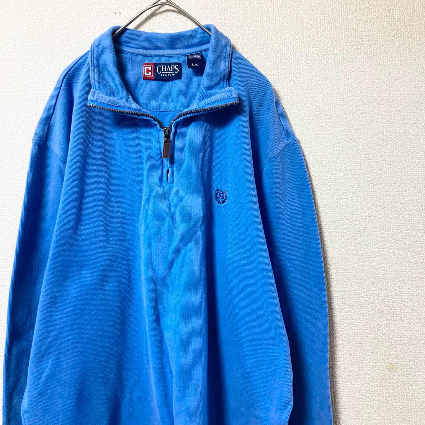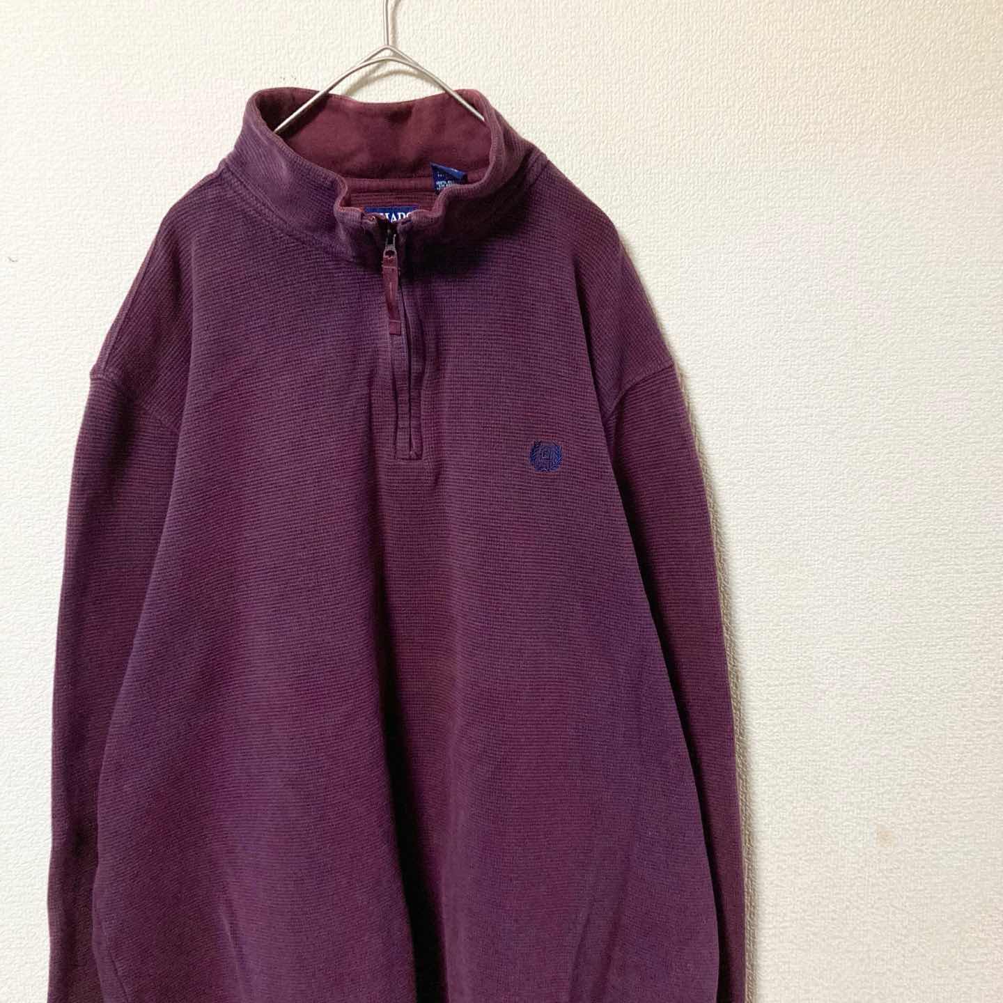 CHAPS half zip cotton knit sweater navy grey stripe L
