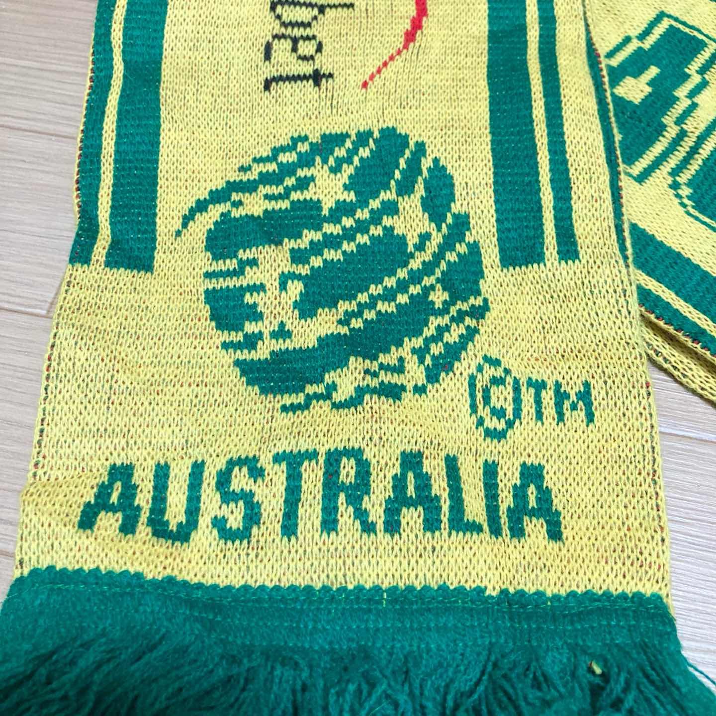 Australia national team style supporters scarf in classic green and gold colours. “Australia” wording and football motif – perfect for World Cup, qualifiers or any Aussie sports event. ▪ Size (flat / folded) Length: 142 cm incl. fringes (71 cm folded) Width: 18 cm ▪ Material Acrylic knit ▪ Condition Good used condition. No obvious large stains or holes. Some light fluff and signs of wear from use, but nothing serious. Please keep in mind this is a used / vintage-style item. ▪ Shipping Ships from Japan. Scarf will be folded carefully, placed in a plastic sleeve and shipped in a protective mailer. Japanese note: オーストラリア代表カラーの応援マフラーです。W杯観戦などに使われるタイプの古着マフラーになります。 #vintage #footballscarf #Australia #Socceroos #supporterscarf #soccer #football #worldcup #sportsfans #ヴィンテージ #ビンテージ