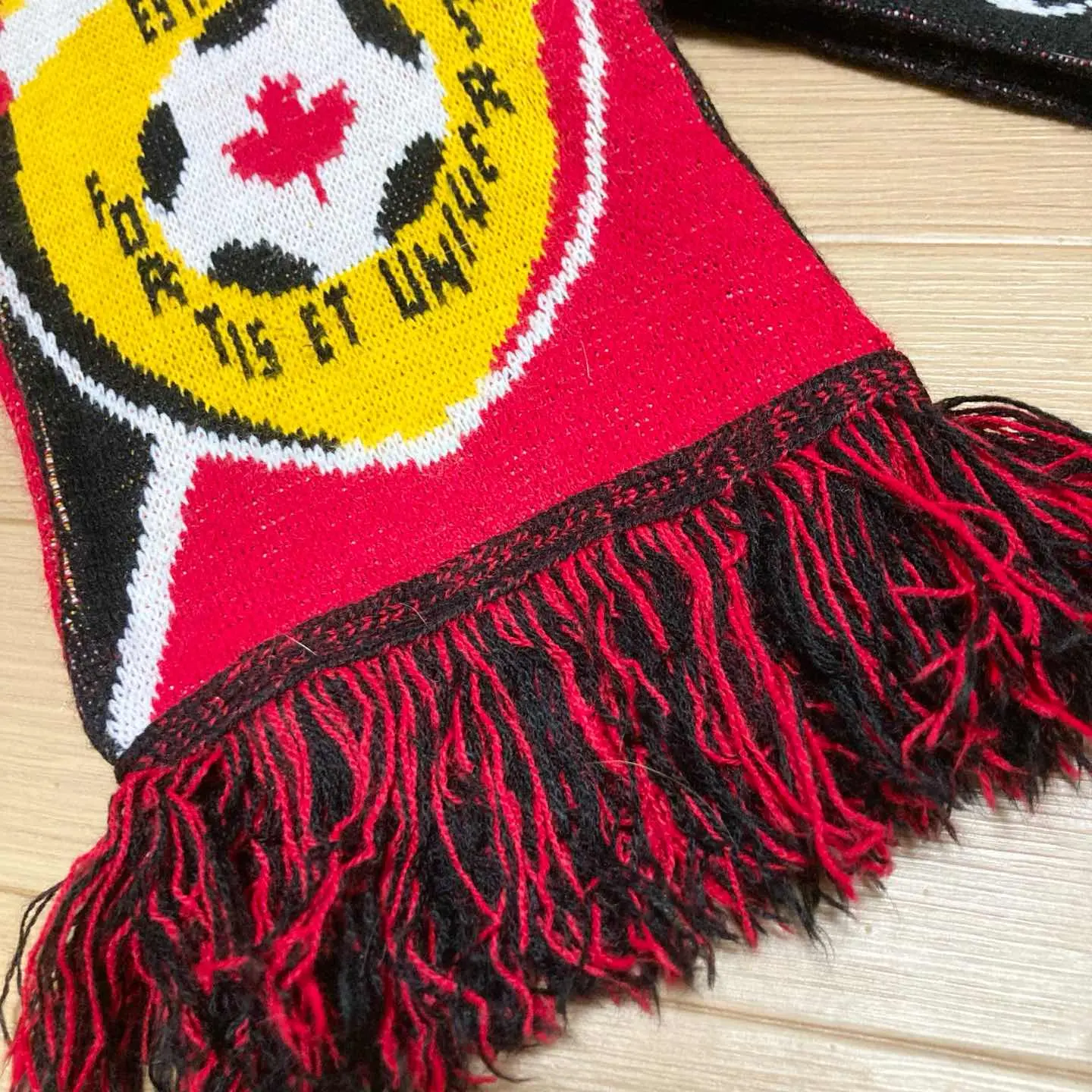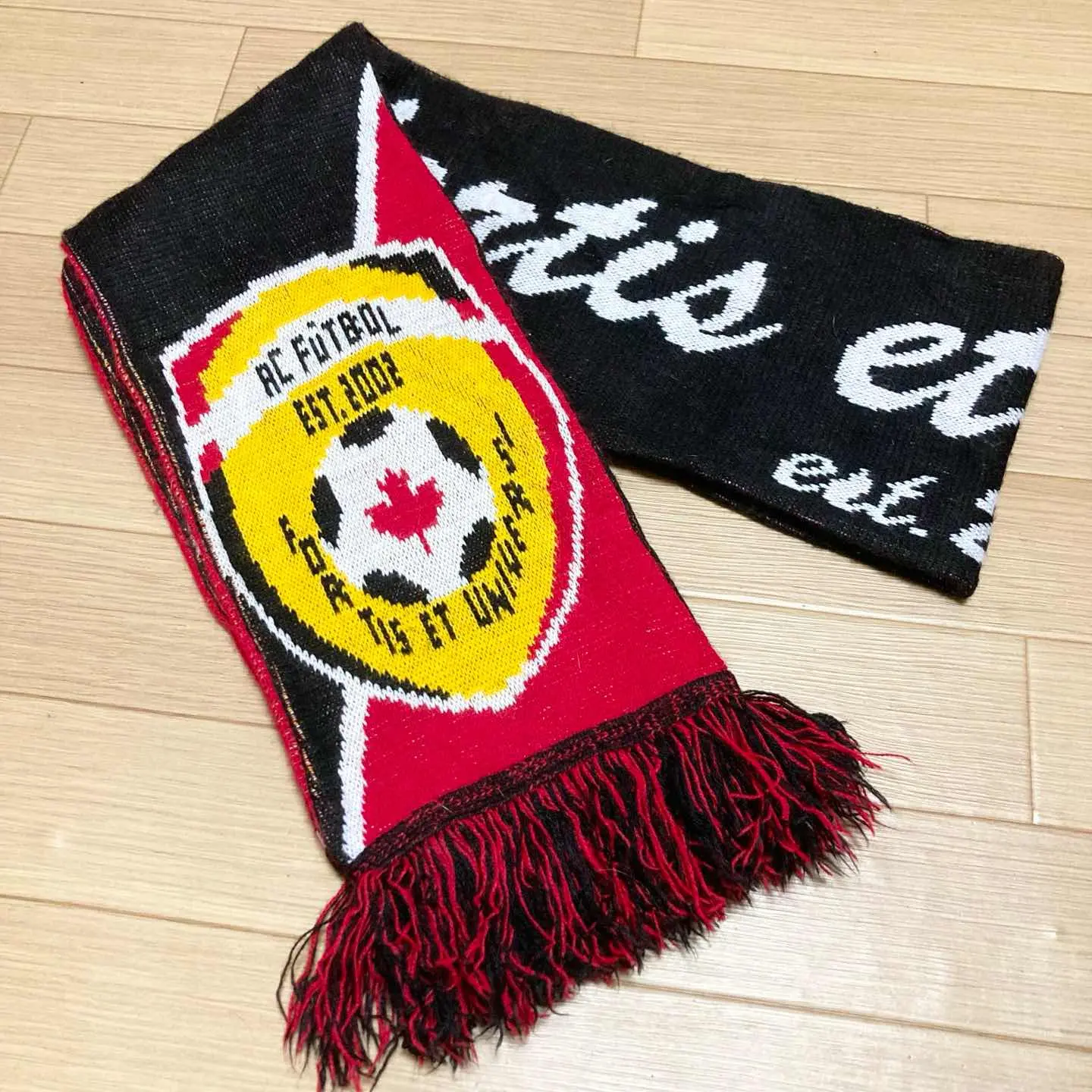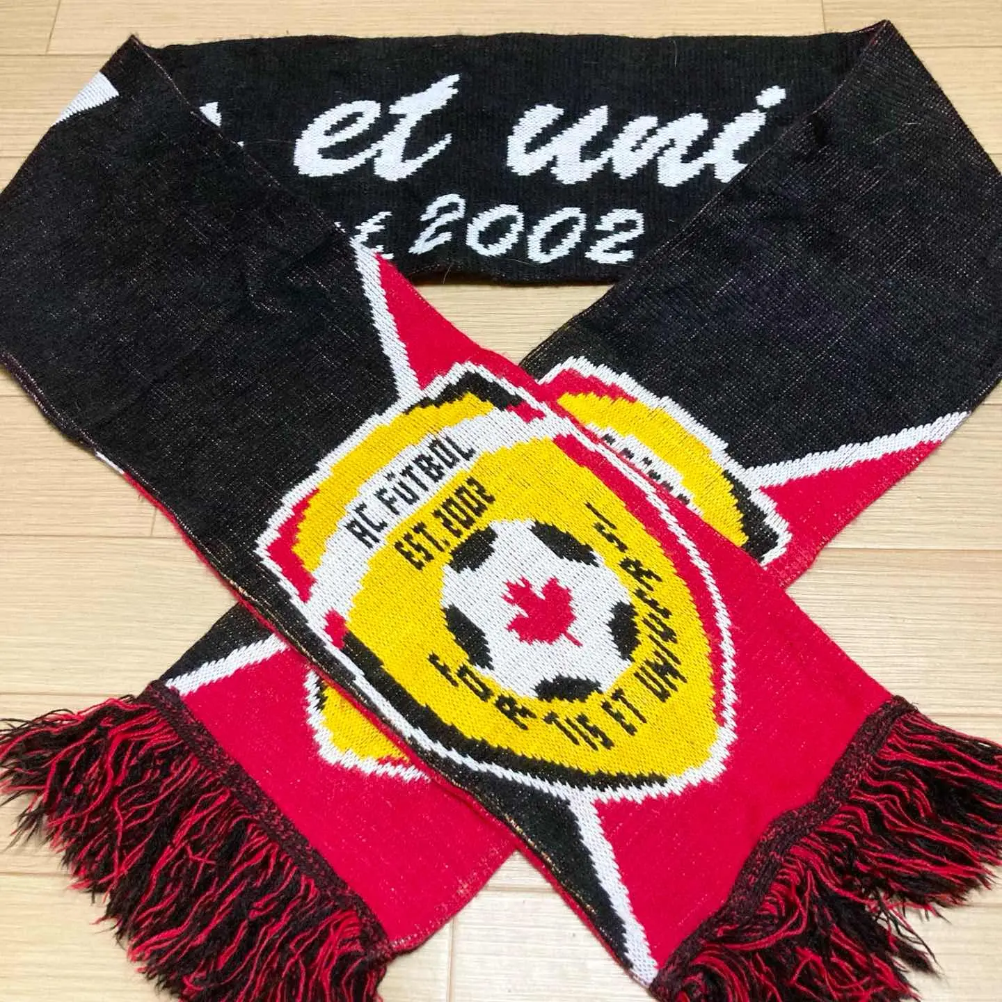 Vintage Canada AC Futbol supporter scarf by Soccerx. Red, yellow and black colours with crest and Canada flag detail – great for football fans and vintage streetwear outfits. ✨ Details • Origin: Canada (Soccerx.ca tag) • Design: AC Futbol crest, Canada flag motif • Colour: black × red × yellow × white • Material: acrylic knit (typical football scarf) • Size (flat, excluding fringe): approx. 168 cm length × 17 cm width • Condition: good vintage condition – some fluff and minor signs of wear, but no major holes or big stains. Perfect for football scarf collectors, terracewear styling and as a pop of colour in your outfit. Will be shipped carefully packed (waterproof + cushioning). 【日本語補足】 カナダのサッカーショップ「SOCCERX.CA」タグ付き、 AC FUTBOL エンブレム入りのニットサッカーマフラーです。 赤×黄×黒の配色とカナダ国旗モチーフが映える一本です。 ・長さ 約168cm(フリンジ除く/平置き) ・幅 約17cm ・古着なりの毛羽立ちや使用感はありますが、目立つダメージはありません。 #vintage #scarf #footballscarf #soccerx #canada #acfutbol #supporterscarf #streetwear #terracewear #海外古着 #サッカーマフラー
