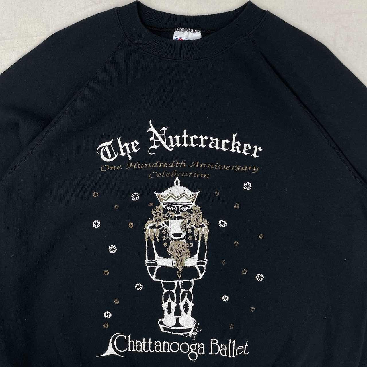 90s sweat shirt くるみ割り人形100周年記念スウェット トレーナー 黒 USA ラグラン