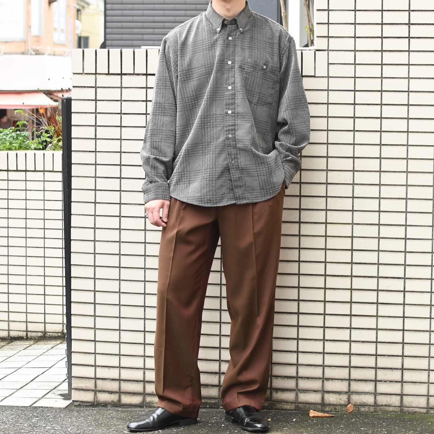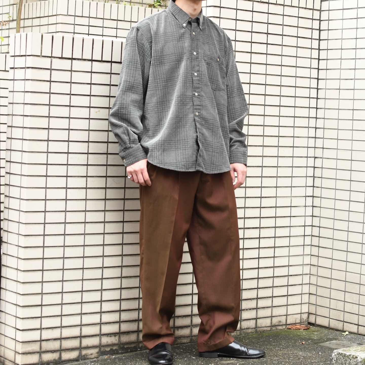 SIZE:42 着丈72cm(前)79cm(後) 肩幅52cm 身幅64cm 袖丈62cm fabric/質感よりpoly 着用画像 177cm/64kg コーデュロイのような畝のある生地に、 チェック柄が織りで施された贅沢な1着。 元々コーデュロイは縦畝が多く、横畝の個体は 滅多に見掛けませんが、こちらはその横畝で 仕立てられ、一般的なコーデュロイシャツと 差別化出来るのも◎ 少し変わり種な個体でありながら、コーデや 街に馴染む、使い勝手の良いアイテムです。 個人的推しなシャツ。 ※撮影状況により、実物と多少色が異なる場合が ございます。 ※古着を取り扱っているため、気づかない汚れや ほつれ等がある場合がございます。 予めご了承ください。 ※サイズは着用感で選んでおり、 表記サイズではございません。 表記サイズは説明欄の最初に記載しております。 古着 オーバーサイズ old vintage ヴィンテージ used 80's 90's アメリカ古着 ユーロ古着 POLO RALPH LAUREN Eddie Bauer OLD GAP LANDS' END ランズエンド LLBean エルエルビーン オールドギャップ エディーバウアー ラルフローレン ブルックスブラザーズ Brooks Brothers 灰色 グレー 長袖シャツ シャツ BDシャツ コーデュロイシャツ などがお好きな方 #vintage #オーバーサイズ #old #used #90s #80s #古着 #ヴィンテージ #アメリカ古着 #ユーロ古着 #LLBean #エルエルビーン #EddieBauer #エディーバウアー #oldgap #オールドギャップ #LANDSEND #ランズエンド #NAUTICA #ノーティカ #ラルフローレン #POLORALPHLAUREN #ブルックスブラザーズ #BrooksBrothers #チェックシャツ #BDシャツ #長袖シャツ #デザインシャツ #コーデュロイシャツ #ボタンダウンシャツ