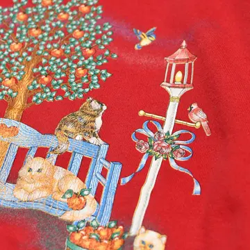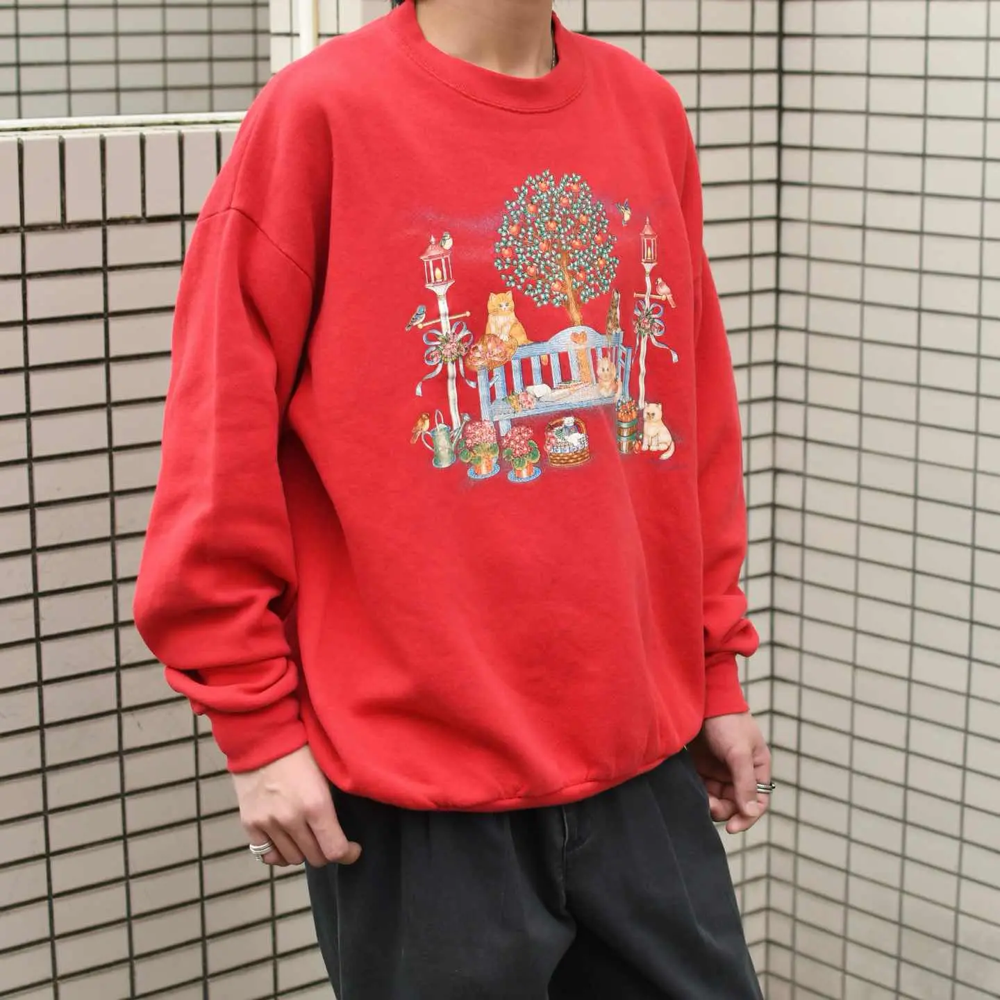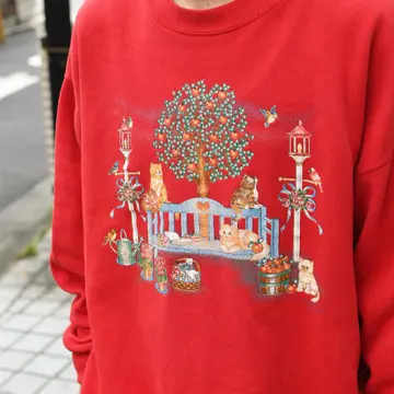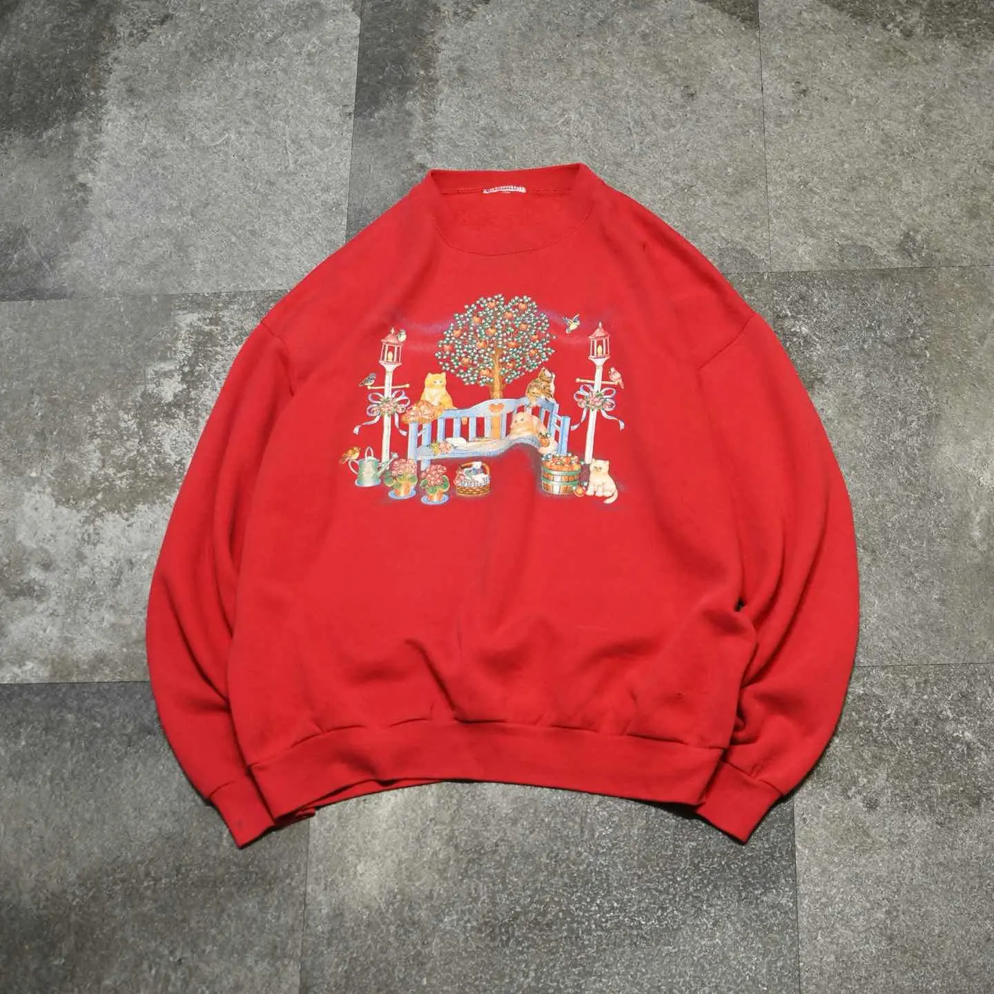 SIZE:- 着丈68cm 肩幅67cm 身幅66cm 袖丈64cm fabric/質感よりcotton・poly 着用画像 173cm/56kg キュートなネコスウェット。 お気に入りは右側中央にいる、鳥を狙うミケ。 よく見るとネズミのぬいぐるみや、 りんごの木にもなんだか惹かれました。 映えるカラーと可愛いプリント◎ ※裾付近にピンホール、右袖とフロントに 汚れあり。 ※撮影状況により、実物と多少色が異なる場合が ございます。 ※古着を取り扱っているため、気づかない汚れや ほつれ等がある場合がございます。 予めご了承ください。 ※サイズは着用感で選んでおり、 表記サイズではございません。 表記サイズは説明欄の最初に記載しております。 古着 オーバーサイズ old vintage ヴィンテージ used 80's 90's アメリカ古着 ユーロ古着 POLO RALPH LAUREN Eddie Bauer OLD GAP LANDS' END ランズエンド LLBean エルエルビーン オールドギャップ エディーバウアー ラルフローレン ブルックスブラザーズ Brooks Brothers 赤 レッド などがお好きな方 #vintage #オーバーサイズ #old #used #90s #80s #古着 #ヴィンテージ #アメリカ古着 #ユーロ古着 #LLBean #エルエルビーン #EddieBauer #エディーバウアー #oldgap #オールドギャップ #LANDSEND #ランズエンド #NAUTICA #ノーティカ #ラルフローレン #POLORALPHLAUREN #ブルックスブラザーズ #BrooksBrothers #アニマルスウェット #プリントスウェット #スウェット #トレーナー #猫 #ネコ