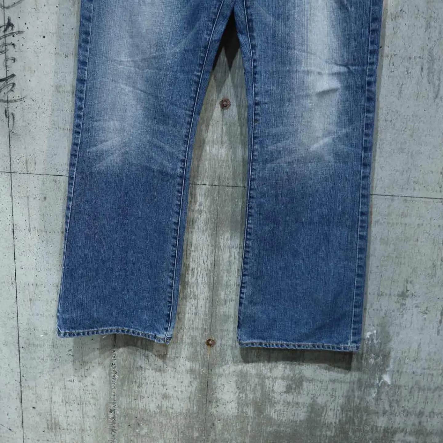 【サイズ】 股上 : 27 股下 : 80 ウエスト幅 : 44 わたり幅 : 29 裾幅 : 26 総丈 : 107 【素材】 【コンディション】 裾の破れ ダメージあり #古着 #デニム #フレアパンツ #メキシコ製