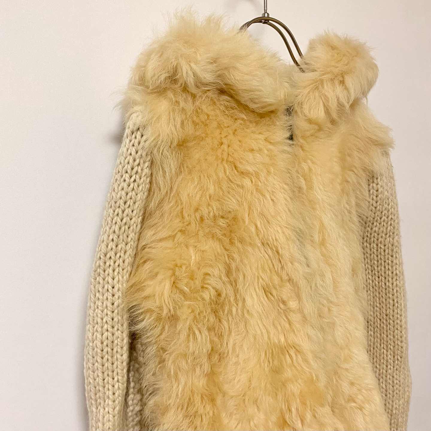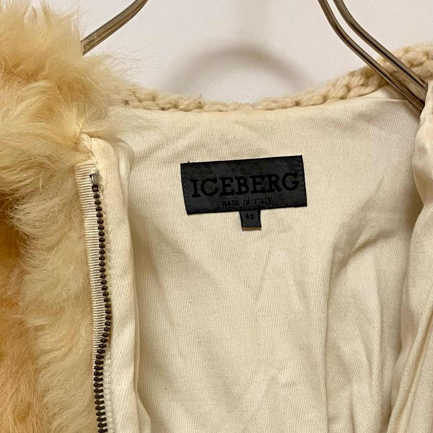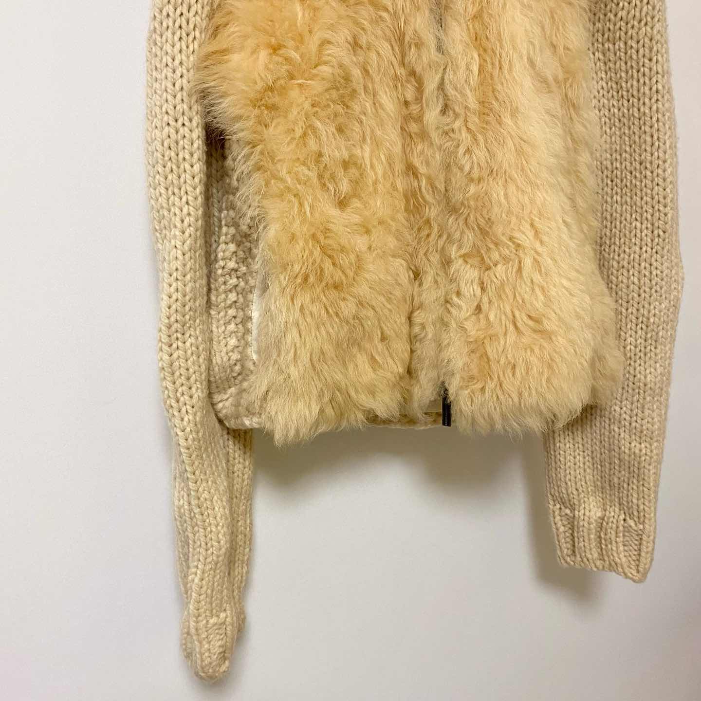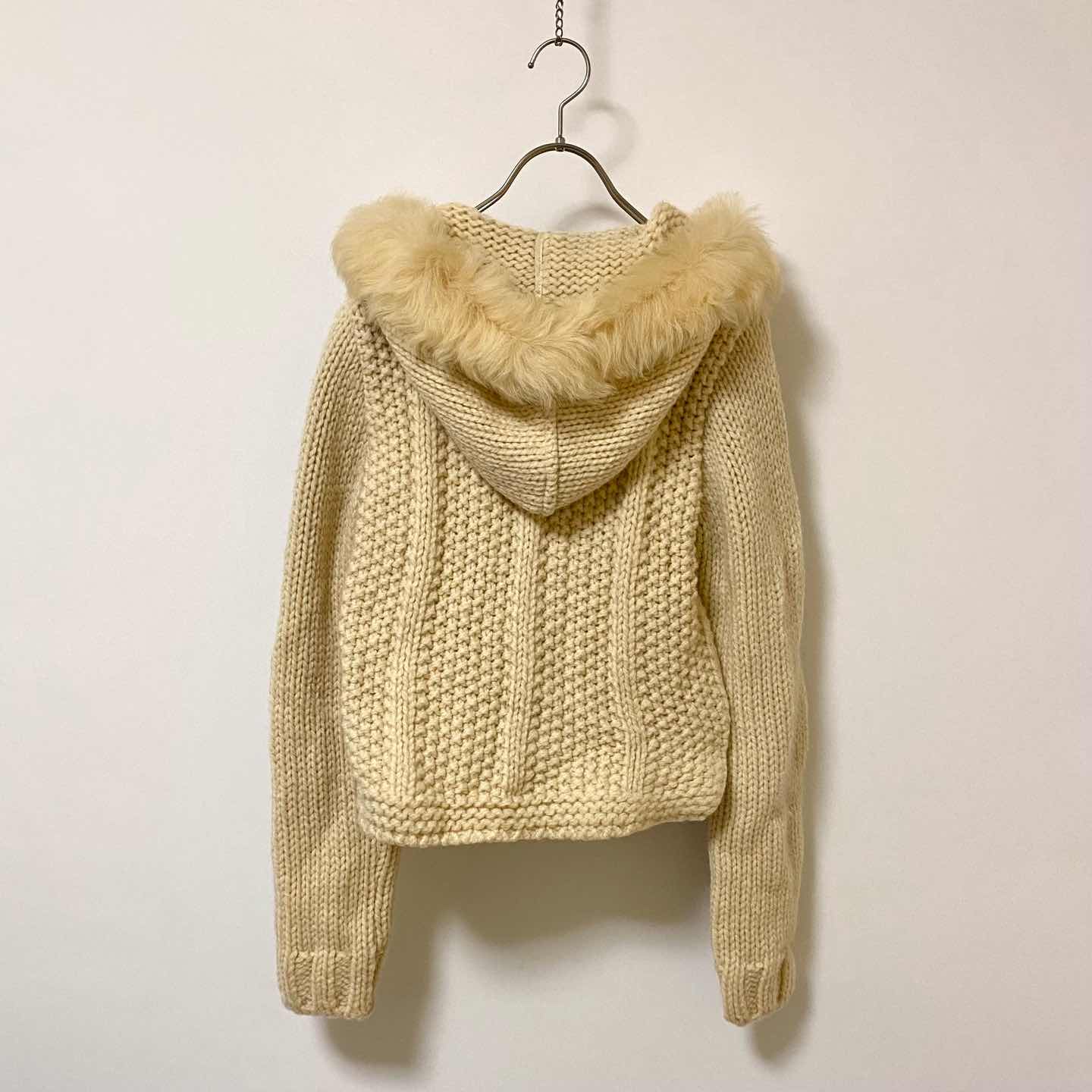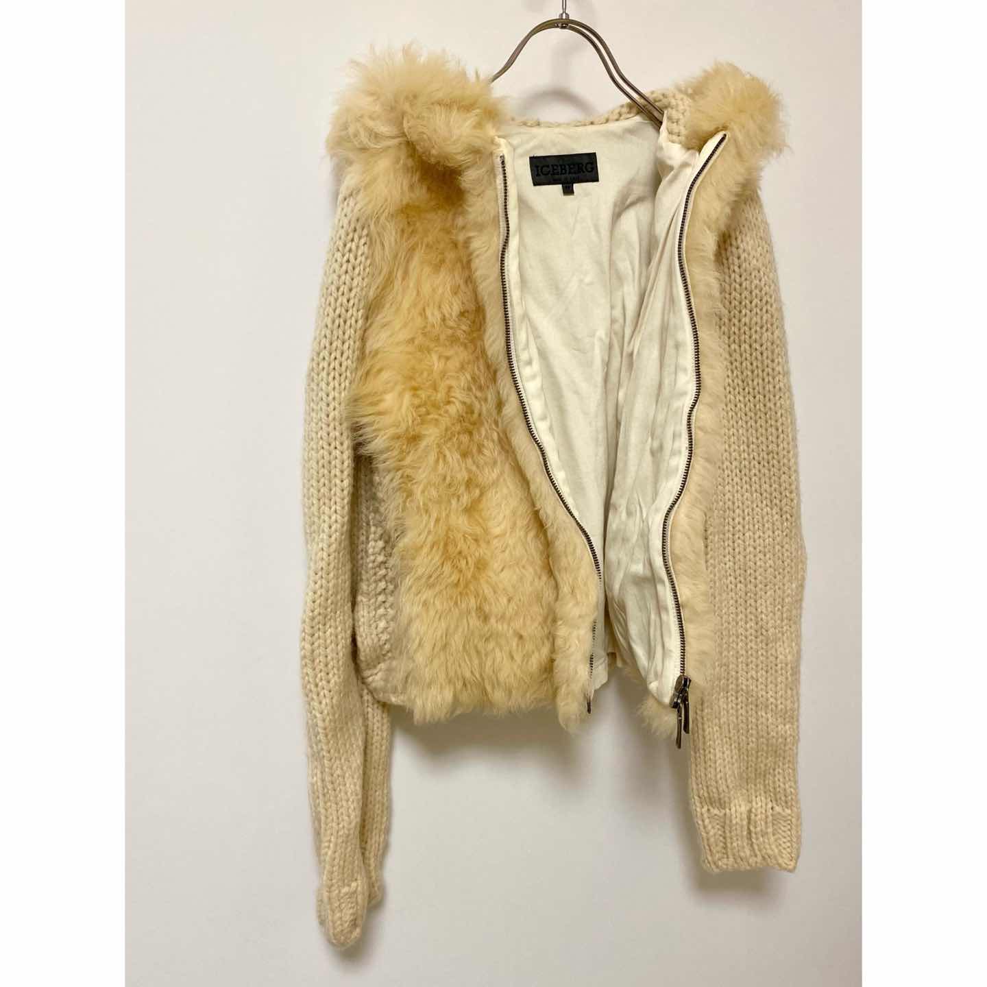 Used Euro ICEBERG Made in ITALY fur×knit off white wool hoodie jacket