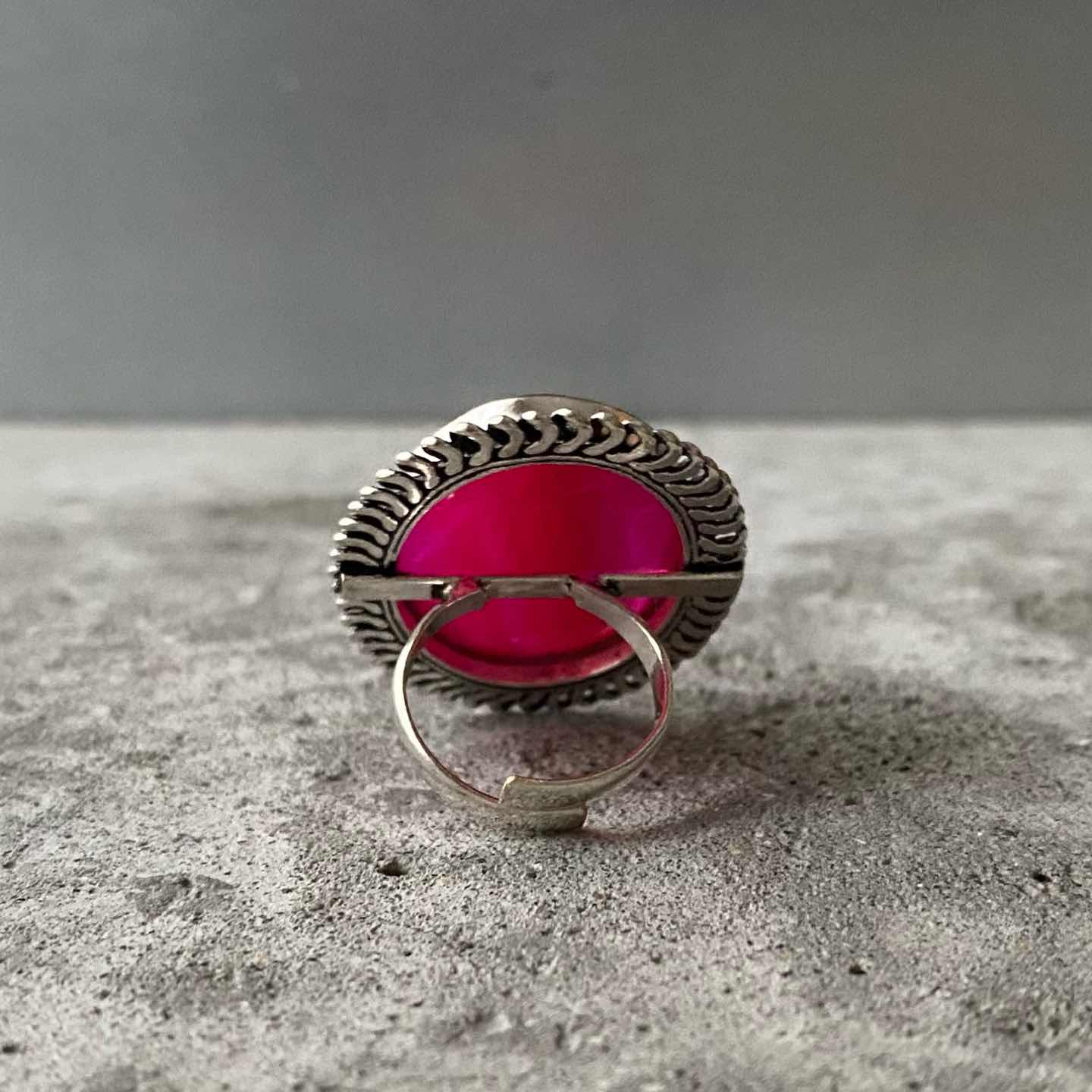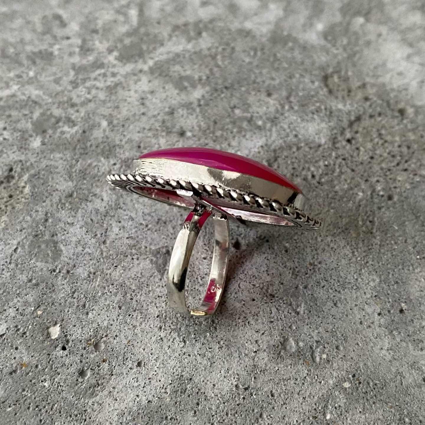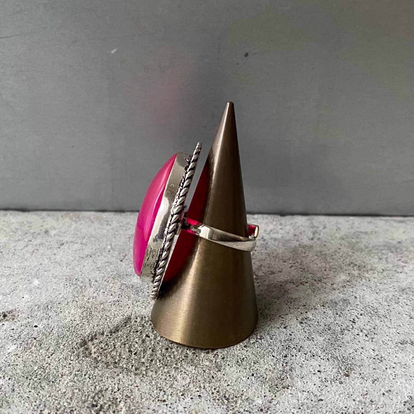 Vintage 80s-90s USA retro coral pink stone bijou ring