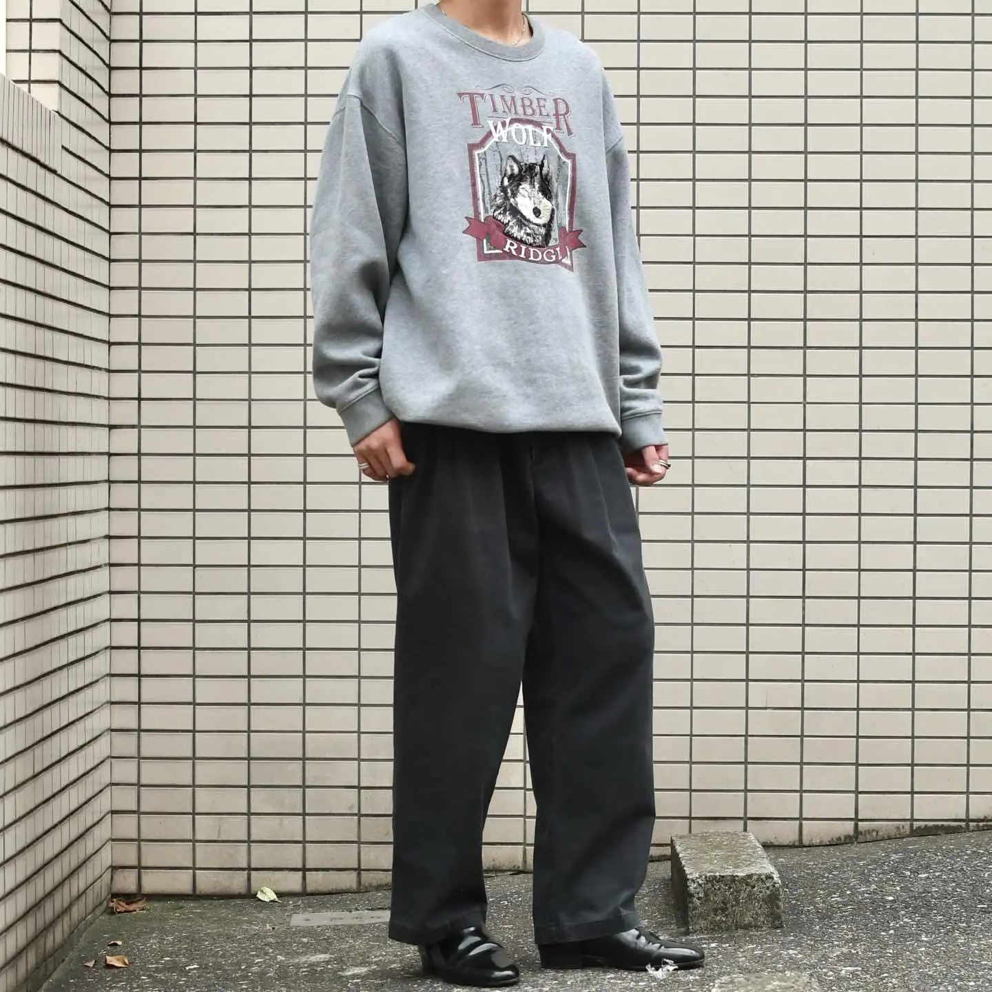 SIZE:L 着丈71cm 肩幅63cm 身幅68cm 袖丈60cm fabric/cotton・poly 着用画像 173cm/56kg これでもかと目の細かい繊細な刺繍で デザインされたオオカミ。 アニマルスウェットを数多く見てきましたが、 中でもクオリティの高いデザインから、 ただインパクトのあるスウェットというよりか、 グレーカラーのボディも相まって、 品すら感じた逸品です。 野暮ったくもカジュアルにも、 フロントに動物を飼ってみてはどうでしょう。 ※左アームに脱色箇所あり。 ※撮影状況により、実物と多少色が異なる場合が ございます。 ※古着を取り扱っているため、気づかない汚れや ほつれ等がある場合がございます。 予めご了承ください。 ※サイズは着用感で選んでおり、 表記サイズではございません。 表記サイズは説明欄の最初に記載しております。 古着 オーバーサイズ old vintage ヴィンテージ used 80's 90's アメリカ古着 ユーロ古着 POLO RALPH LAUREN Eddie Bauer OLD GAP LANDS' END ランズエンド LLBean エルエルビーン オールドギャップ エディーバウアー ラルフローレン ブルックスブラザーズ Brooks Brothers グレー 灰色 狼 などがお好きな方 #vintage #オーバーサイズ #old #used #90s #80s #古着 #ヴィンテージ #アメリカ古着 #ユーロ古着 #LLBean #エルエルビーン #EddieBauer #エディーバウアー #oldgap #オールドギャップ #LANDSEND #ランズエンド #NAUTICA #ノーティカ #ラルフローレン #POLORALPHLAUREN #ブルックスブラザーズ #BrooksBrothers #スウェット #トレーナー #アニマルスウェット #デザインスウェット
