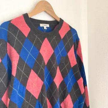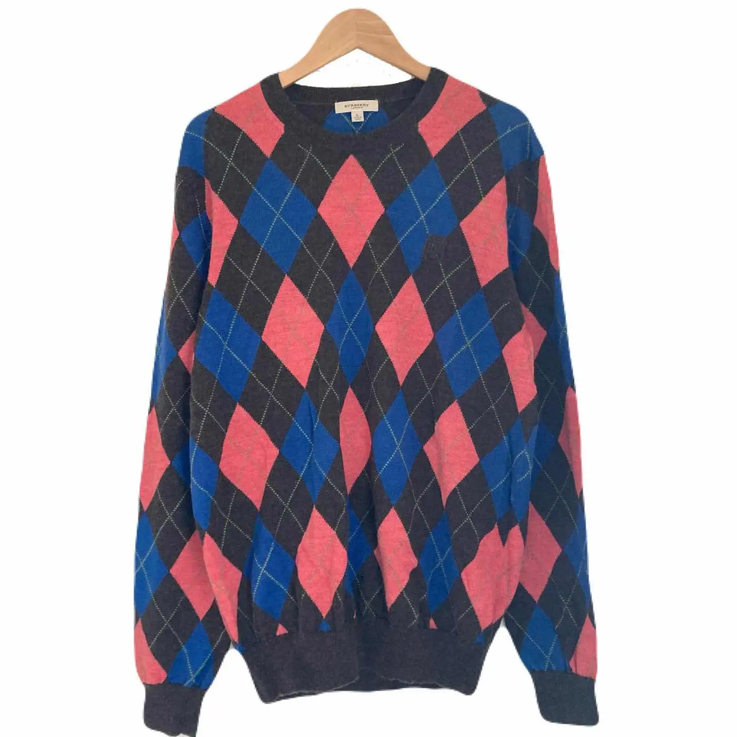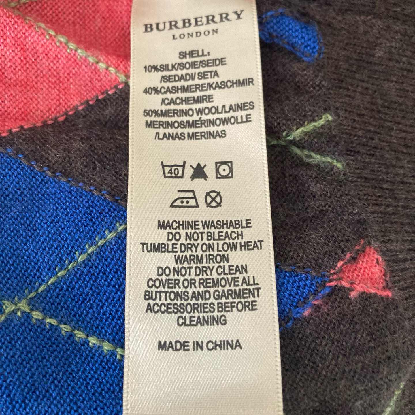 バーバリーロンドン カシミヤ シルク チェック ロゴ ニット 長袖 ウール L