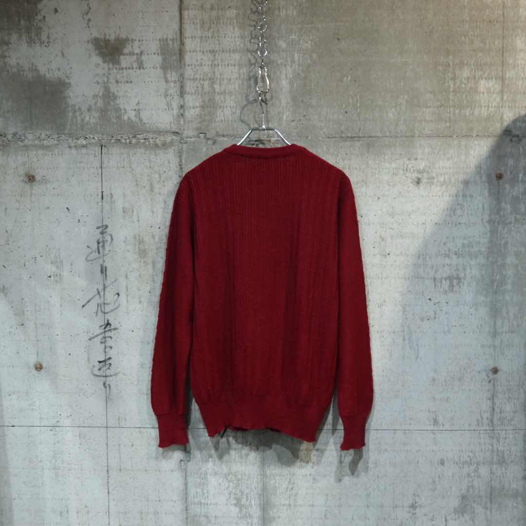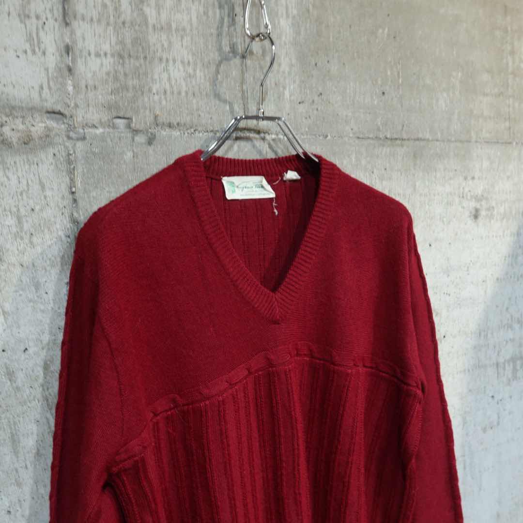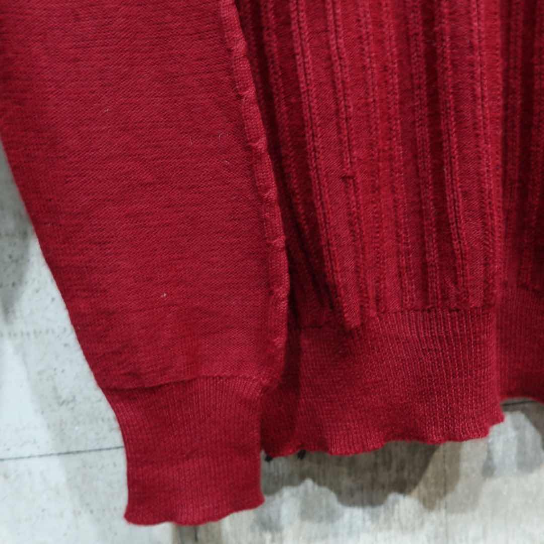 【サイズ】 肩幅 : 53 着丈 : 67 袖丈 : 65 身幅 : 61 【素材】 アクリル 70 ウール 30 【コンディション】 古着の使用感あり #古着 #赤 #ニット #Vネック #イタリア製