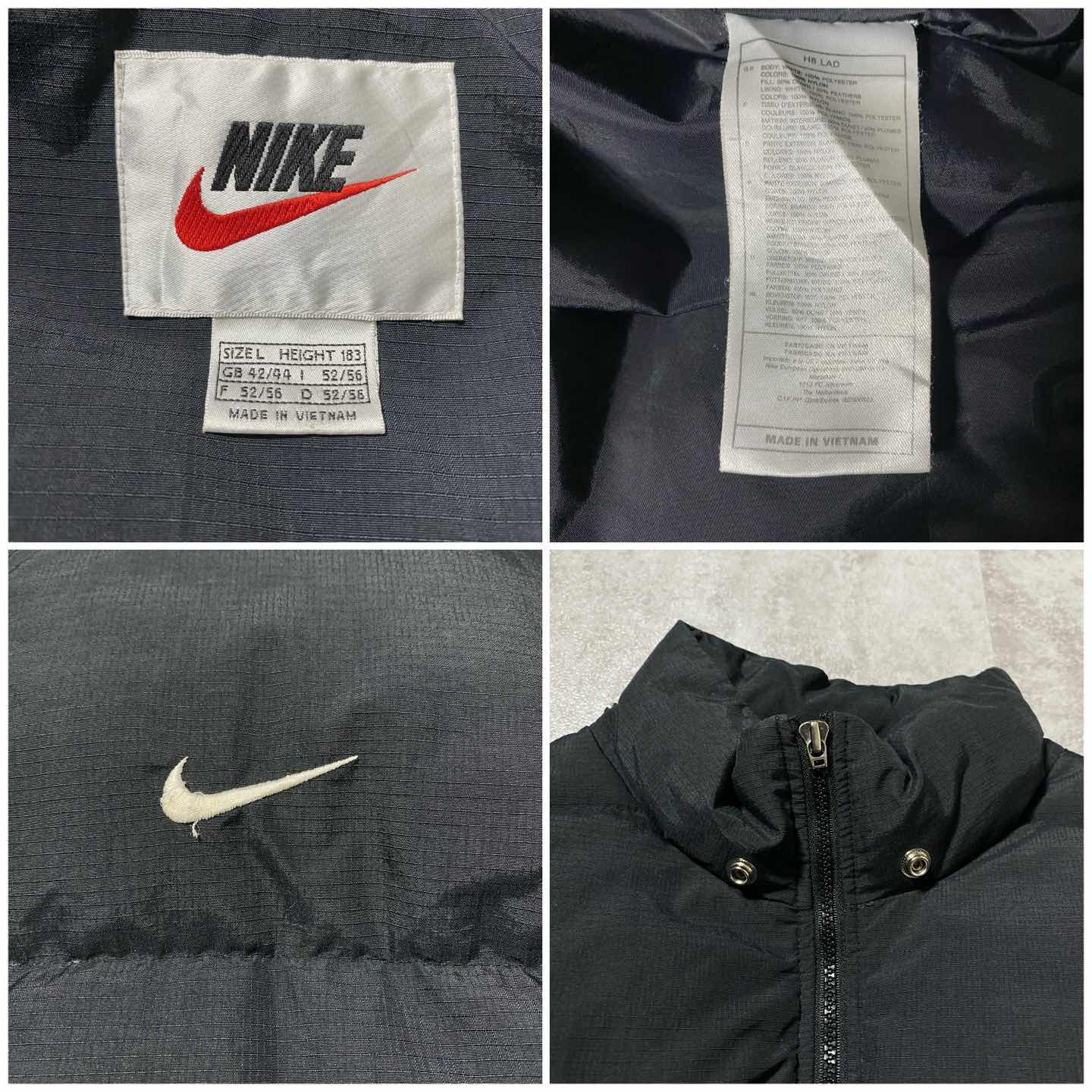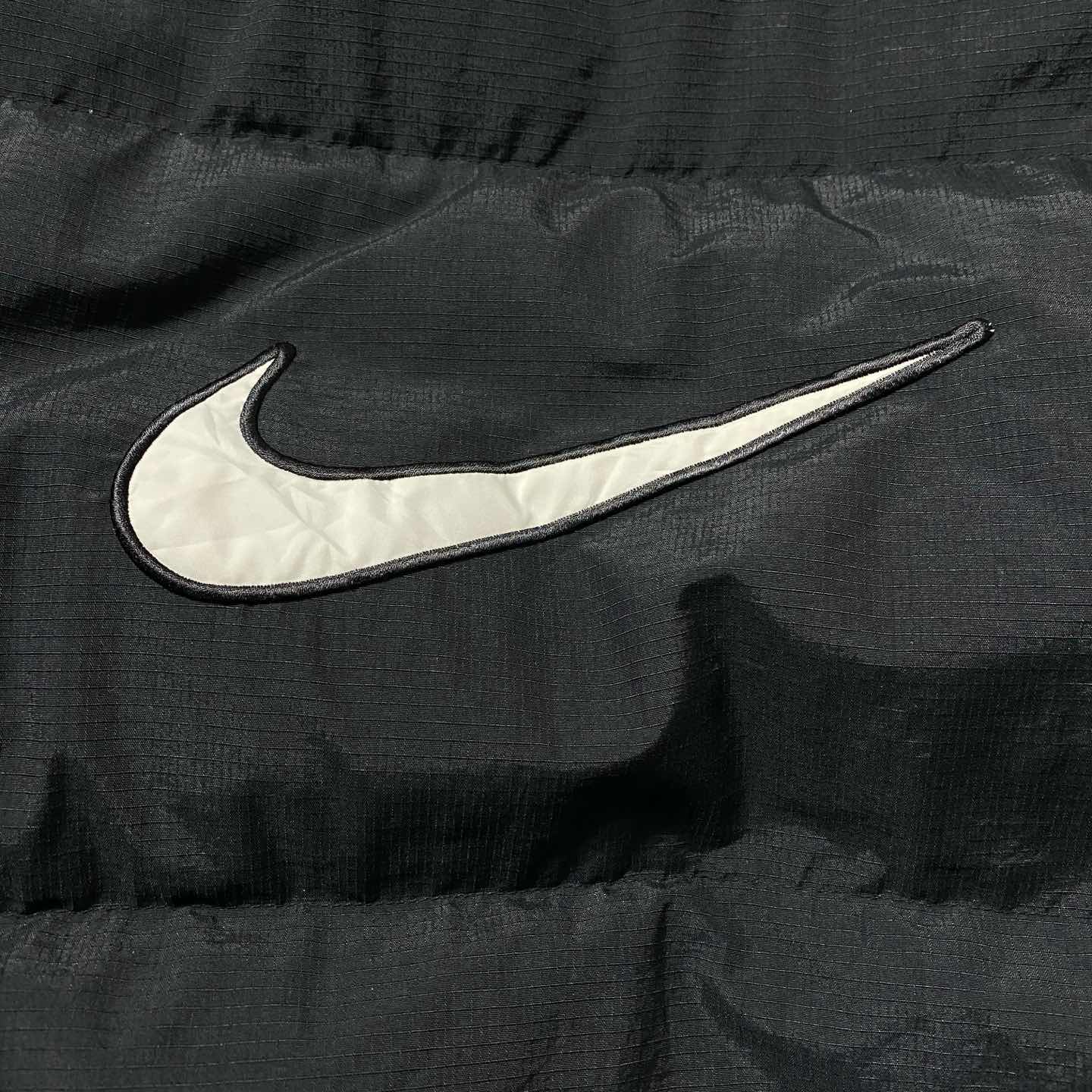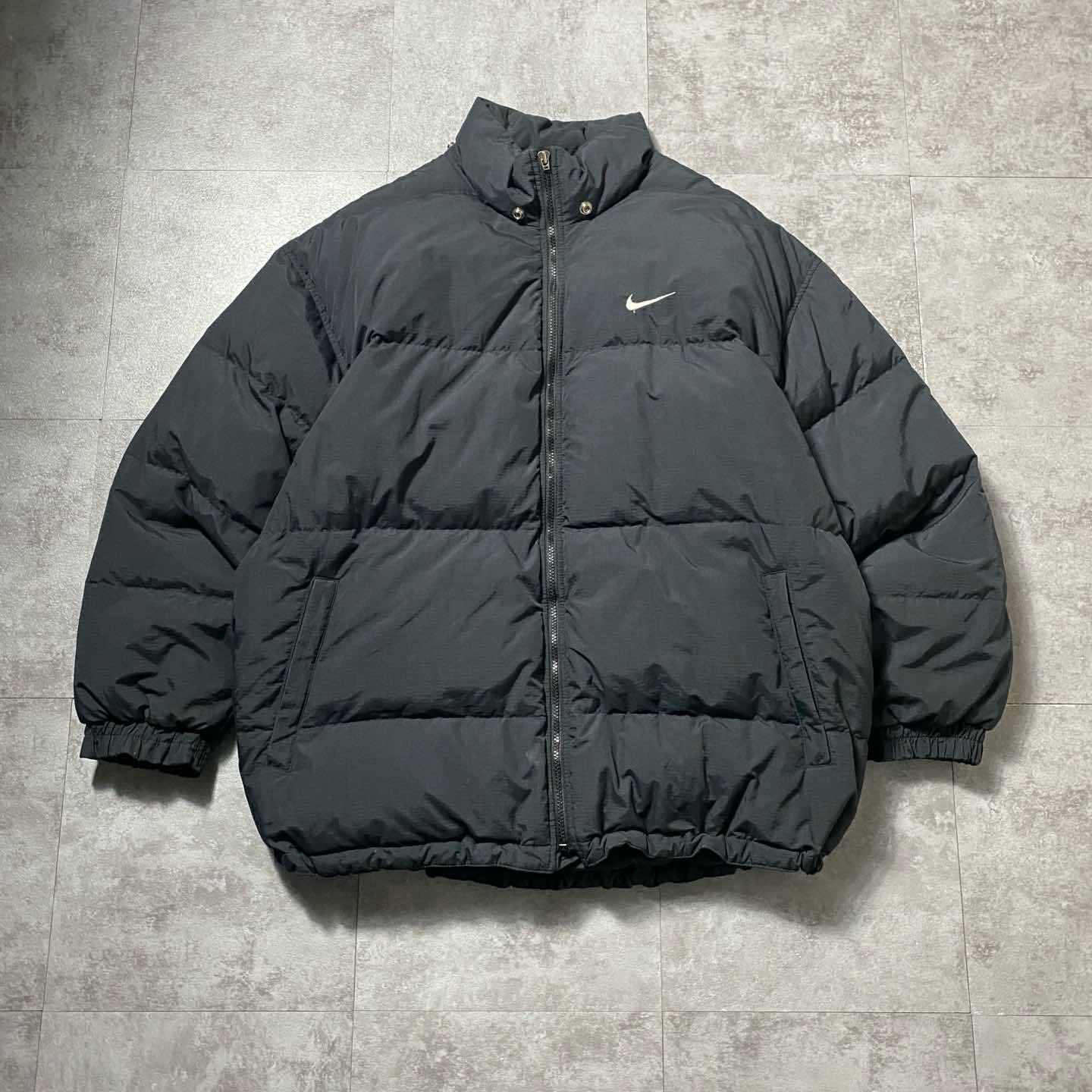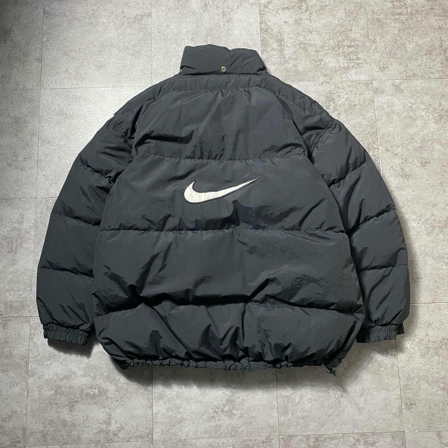 90's NIKE スウォッシュ 刺繍ワンポイント バックロゴ ブラック ダウンジャケット